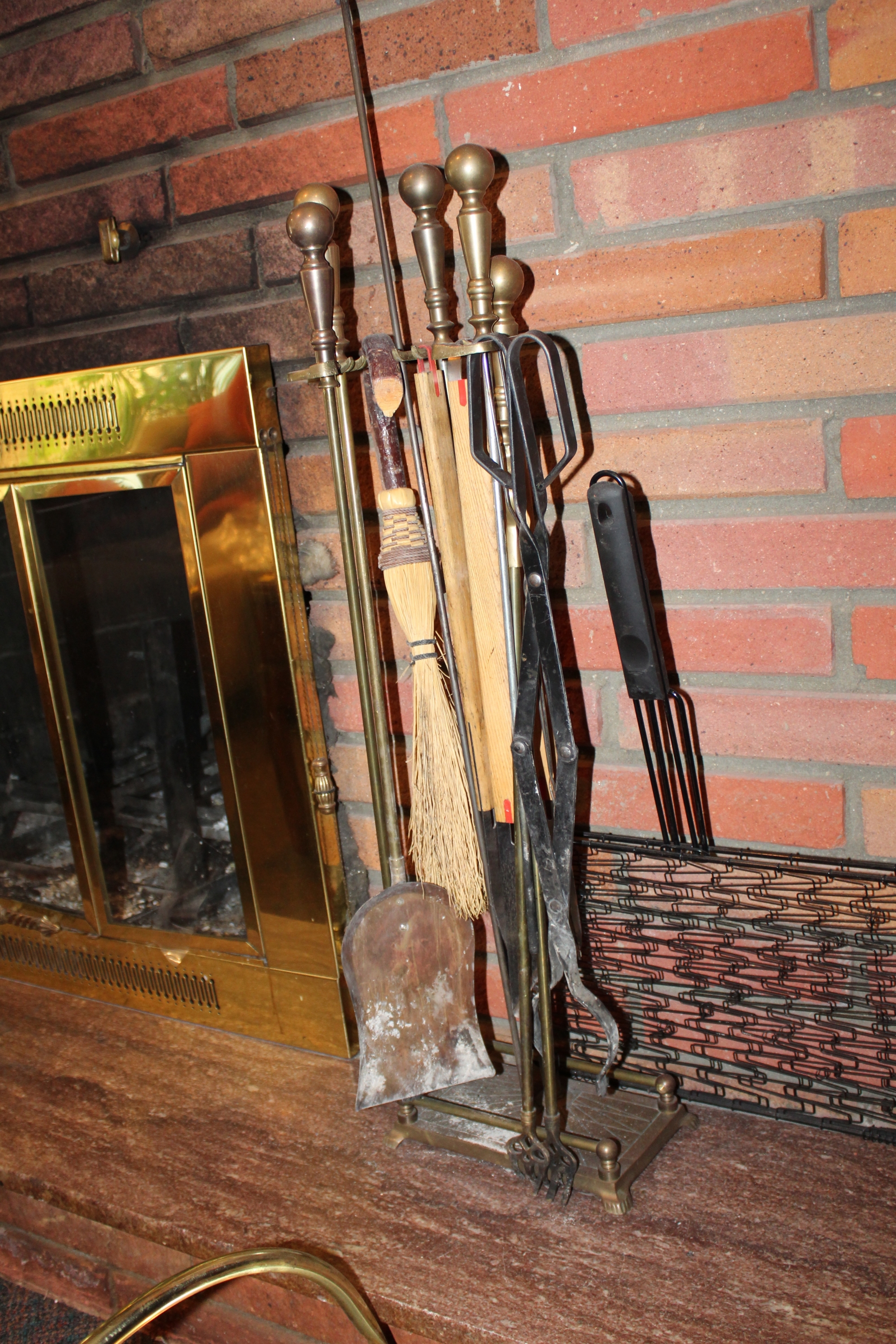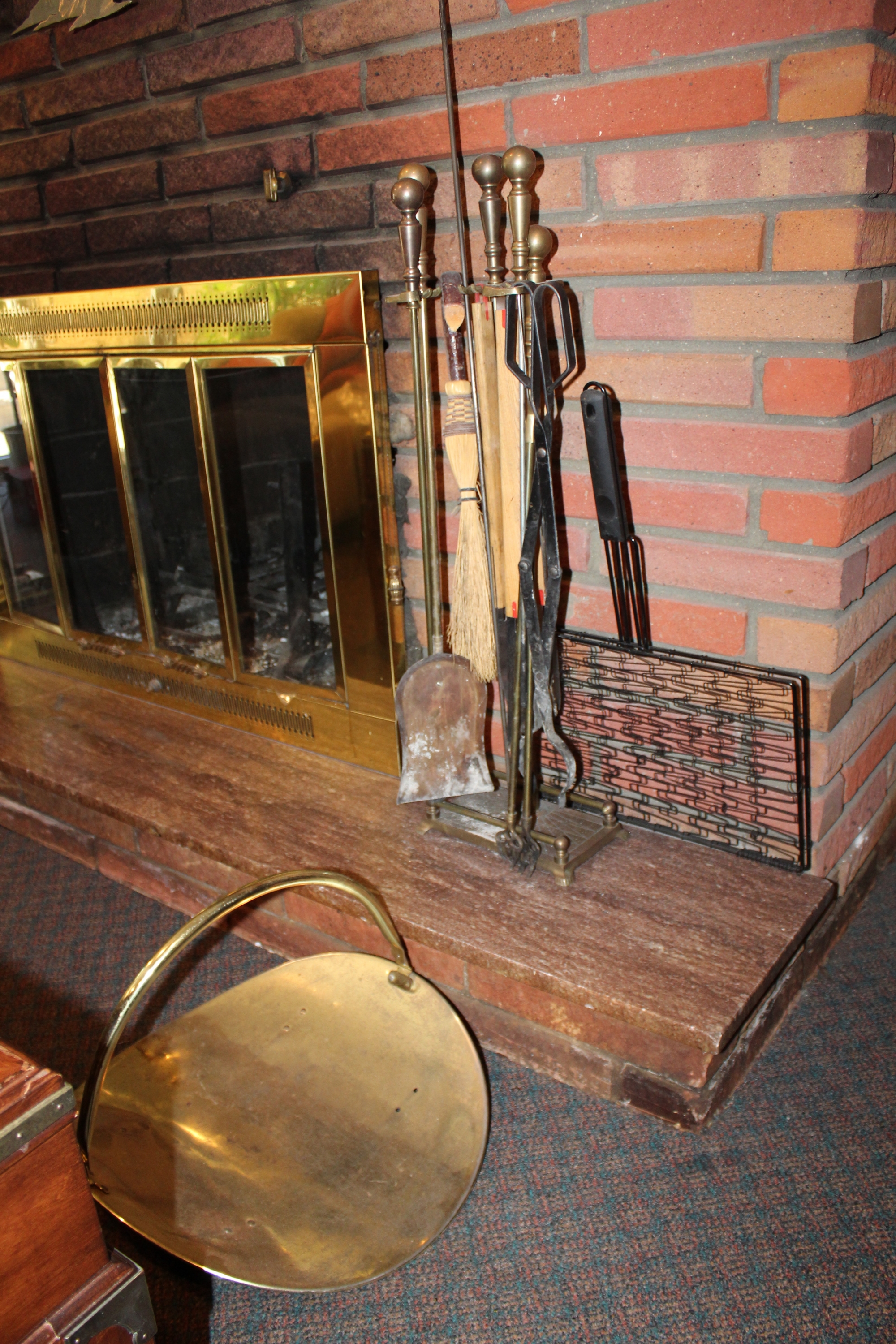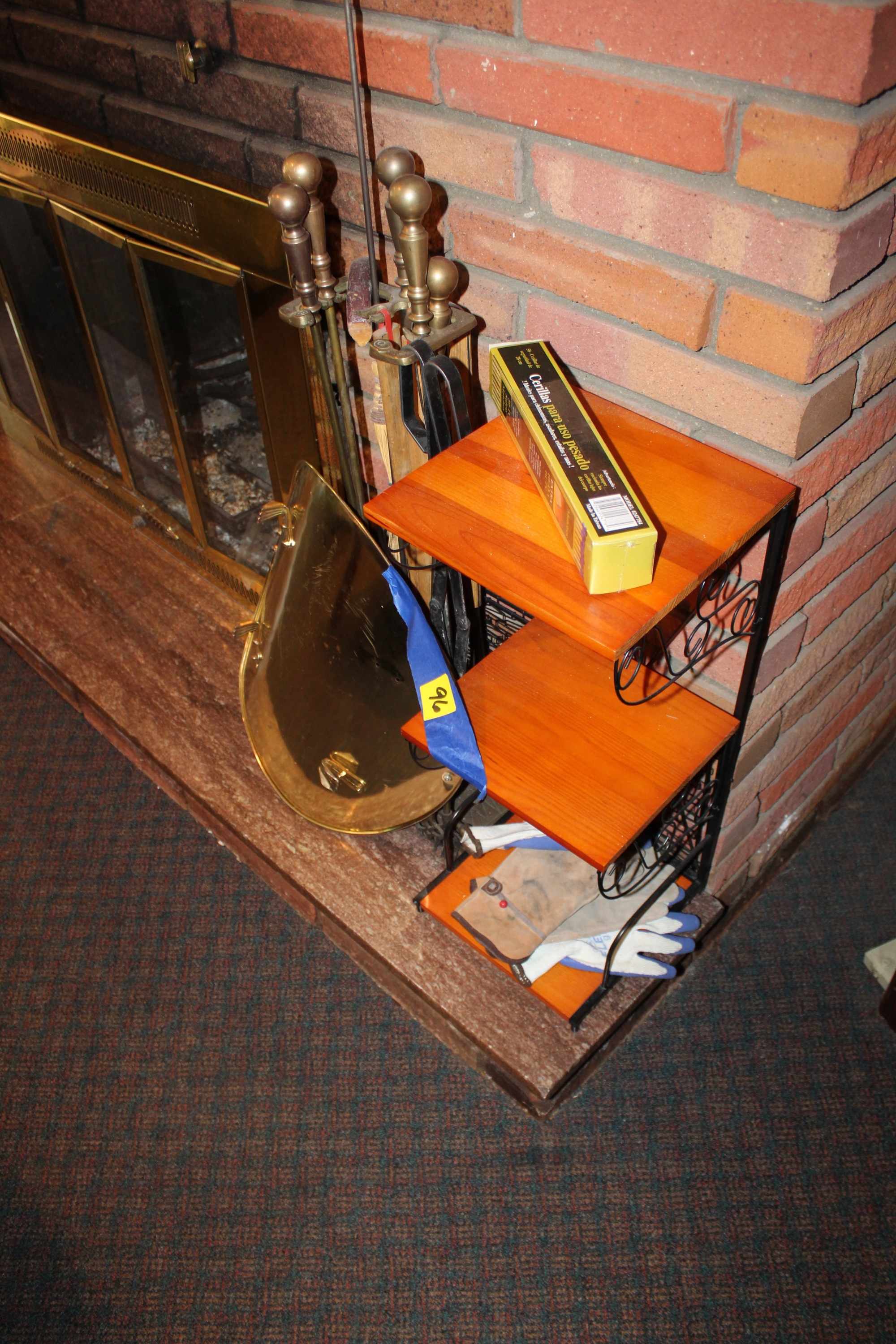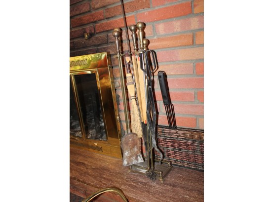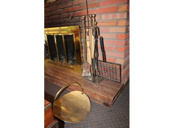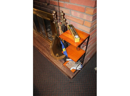 Lot Of Vintage Fire Place Tools, Wood Basquet, Wood Stand Shelf & Matches!!