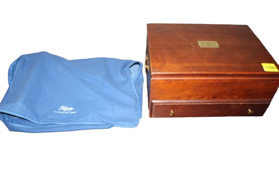 LUNT STERLING MONOGRAMMED STORAGE BOX CHEST & HAGERTY SILVER FLATWARE STORAGE TRAY - STORAGE - ITEM #488