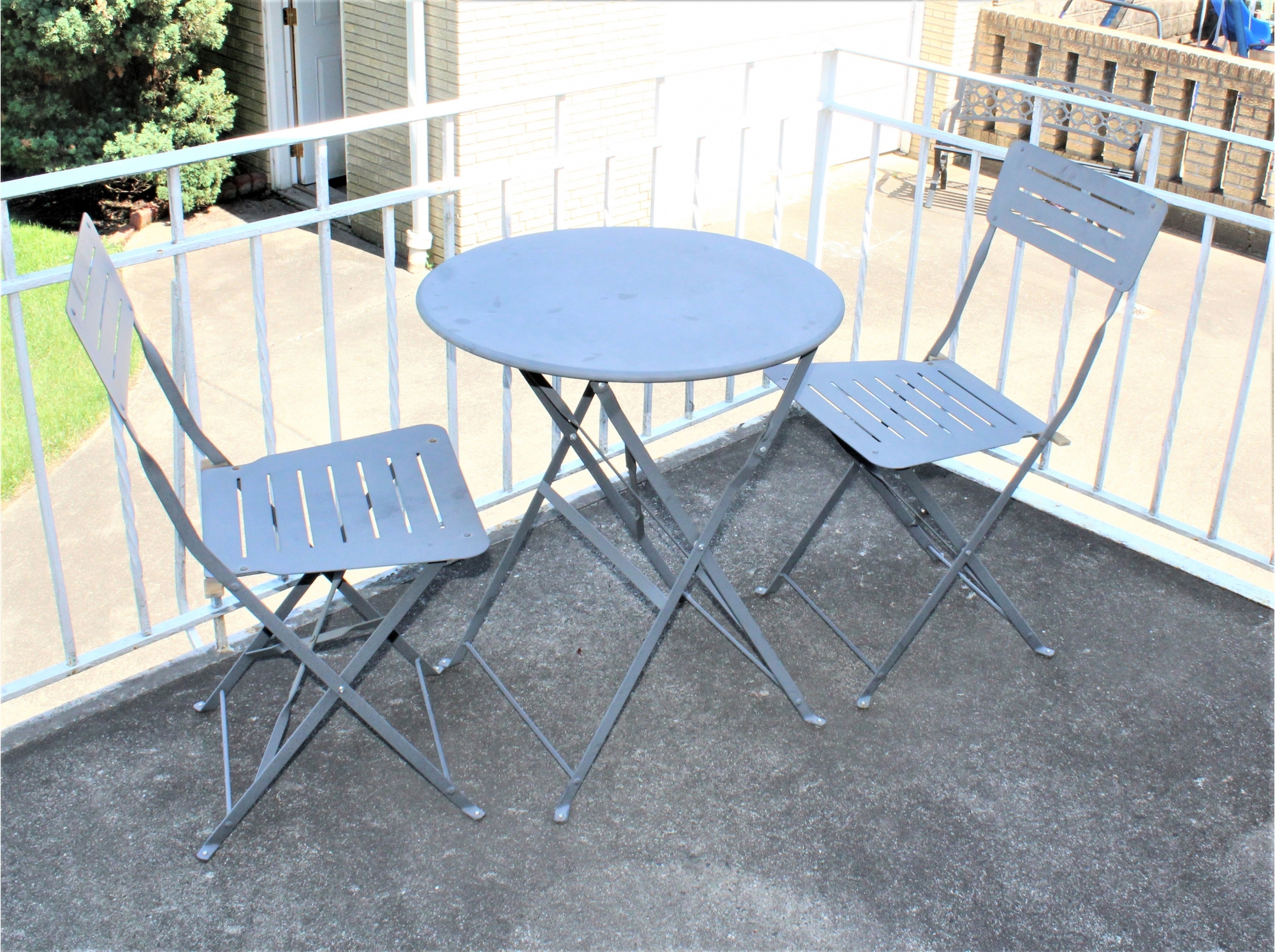 Metal Folding Cafe Table W/ 2 Chairs - Lot Of 3