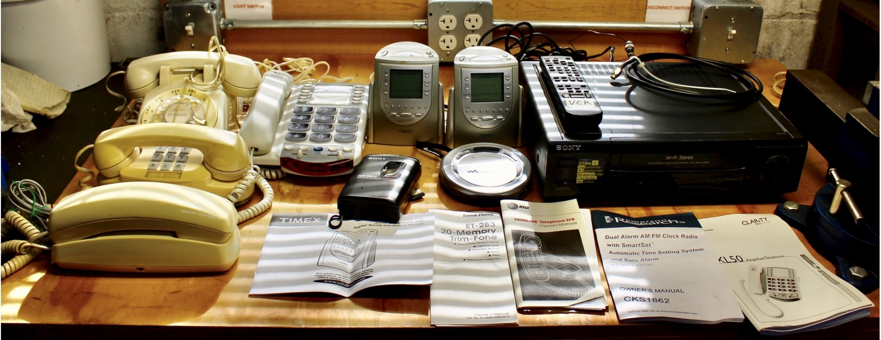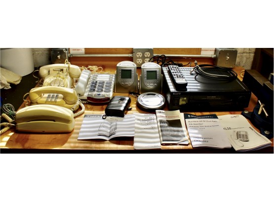 MIXED ELECTRONICS LOT - Timex Alarm Clock Digital Studio, Rotary Phones, Sony Walkman & MORE!! Please note items are untested except for the VCR, it powers on, but unsure if it works.