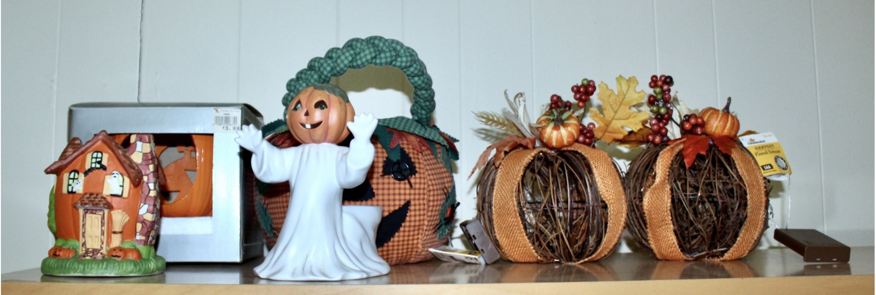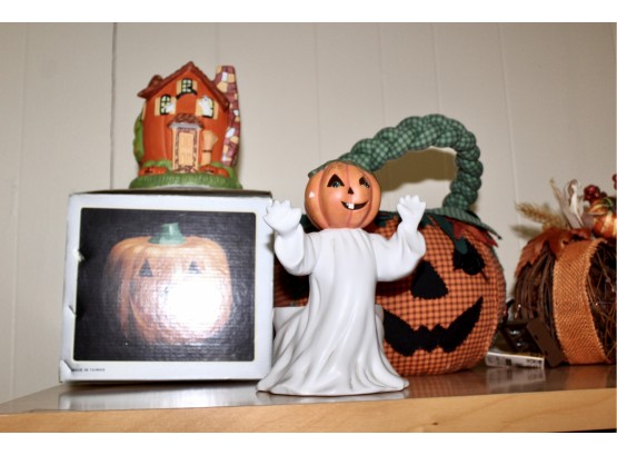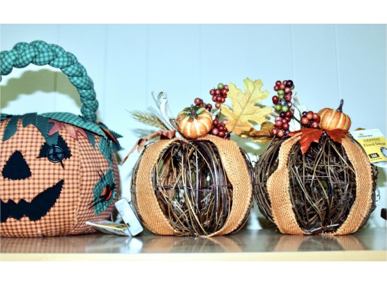 MIXED HALLOWEEN LOT - Musical Enchanted Broom, Harvest Floral Decor, Pumpkin Basket & MORE! Enchanted broom has been tested and WORKS!