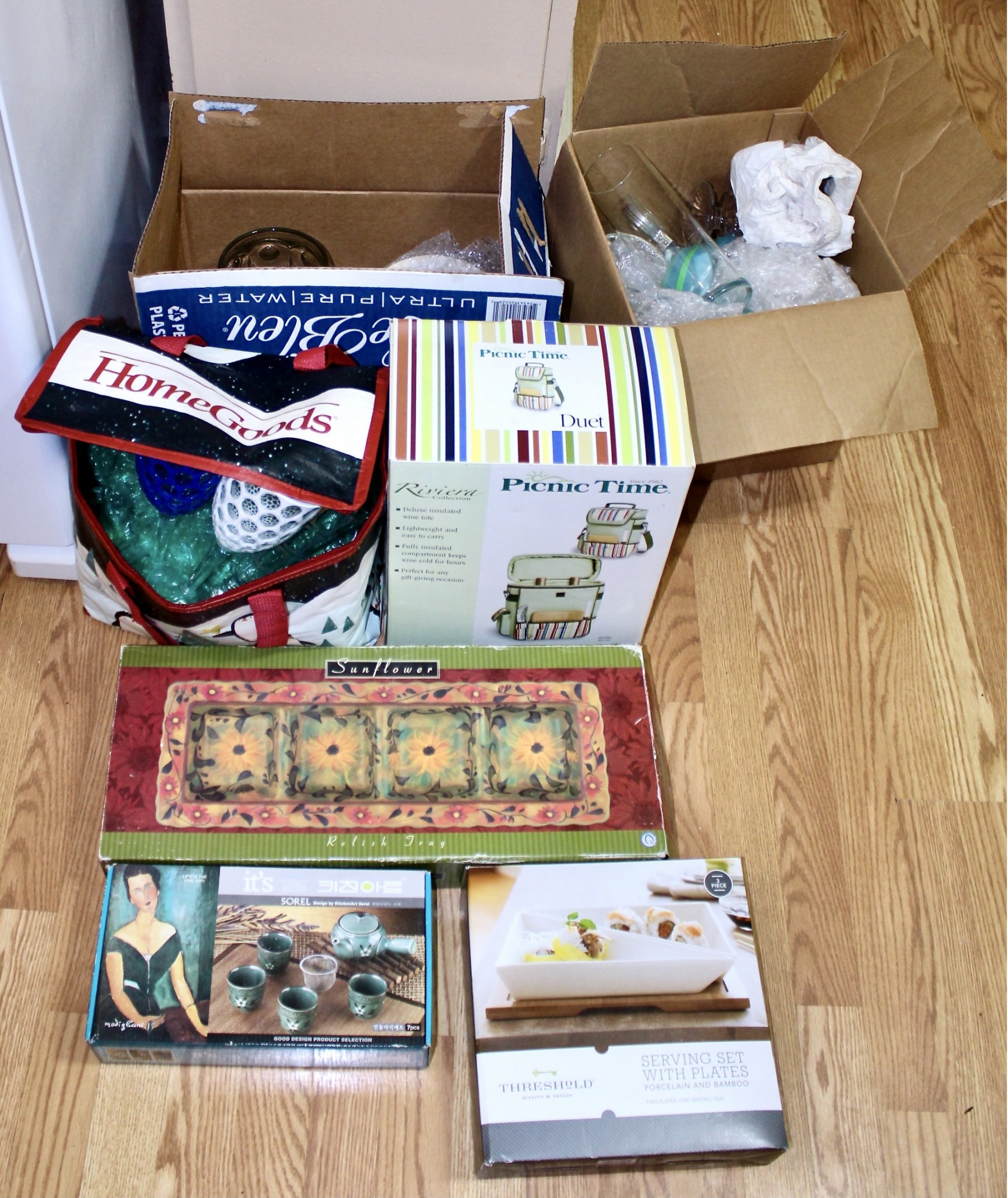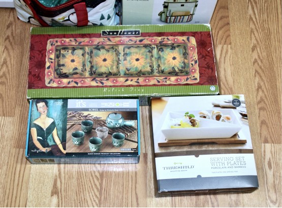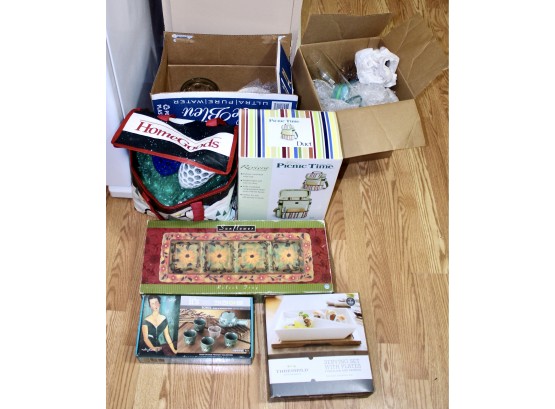 MIXED KITCHEN LOT - Sorel 7PC Set, Threshold 3PC Plate Serving Set, PicnicTime Wine Tote & MORE!