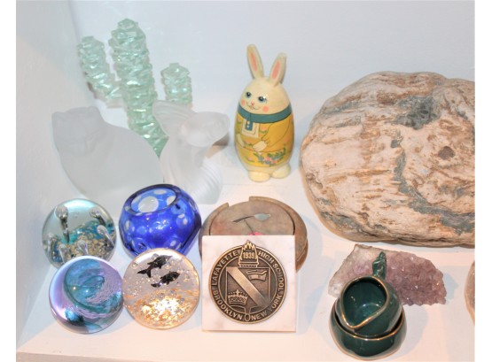 Mixed Lot Of Decorative Items - Crystal Ash Trays, Paper Weights, Bowls & MORE!!