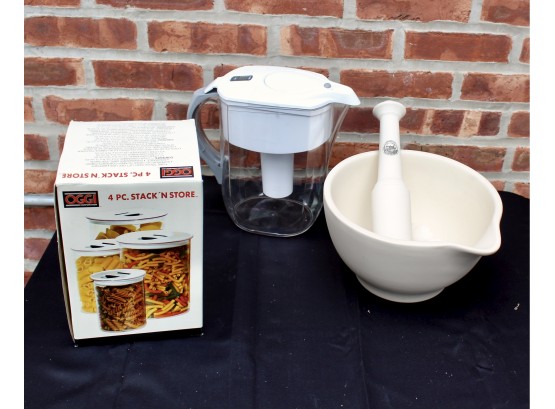 Mixed Lot Of MASON CASH Mortar & Pestle Set, OGGI Plastic Containers & BRITA Filtered Pitcher!