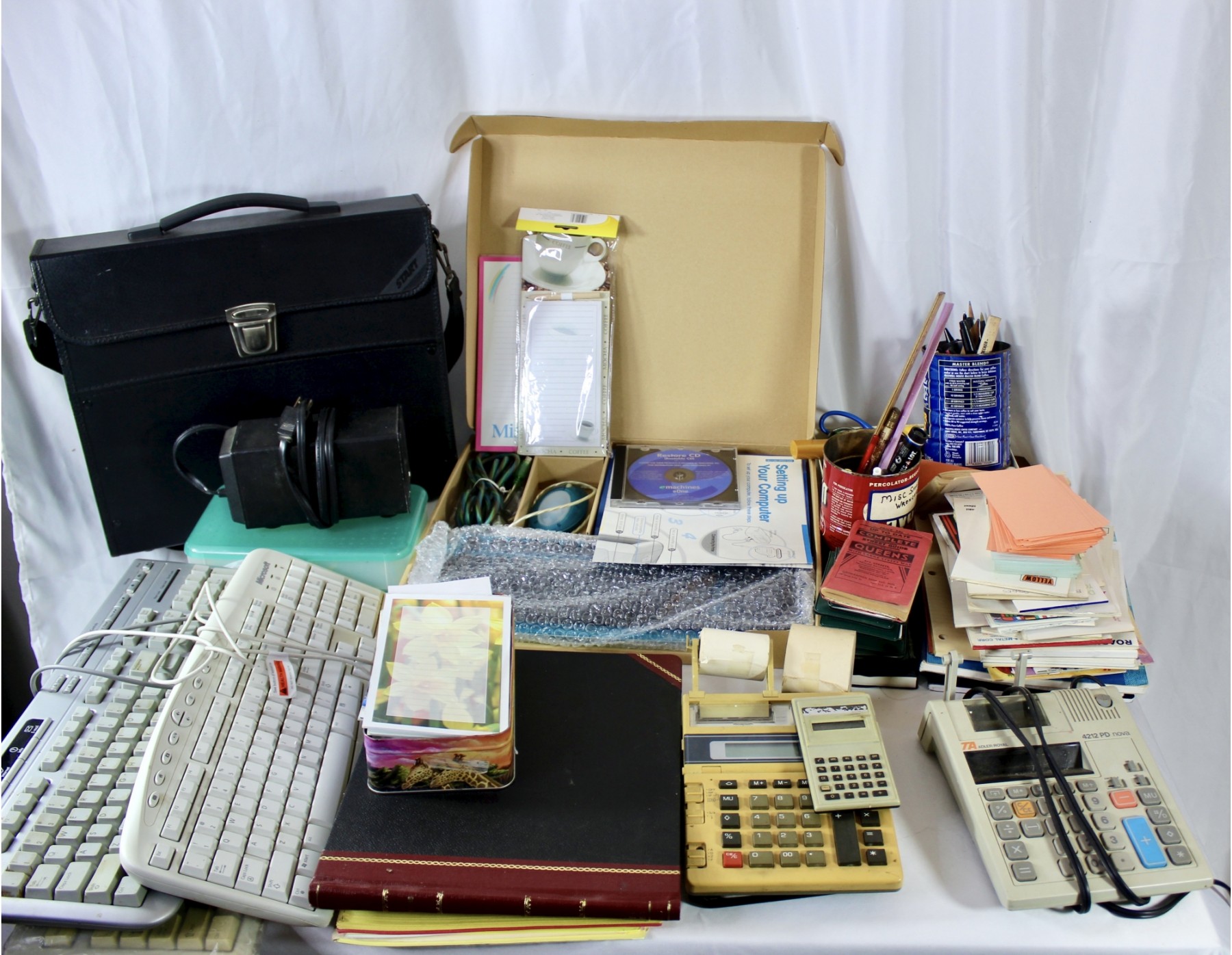 MIXED LOT OF OFFICE GOODS - CALCULATORS - MS KEYBOARDS - ELECTRIC SHARPENER AND MORE!!
