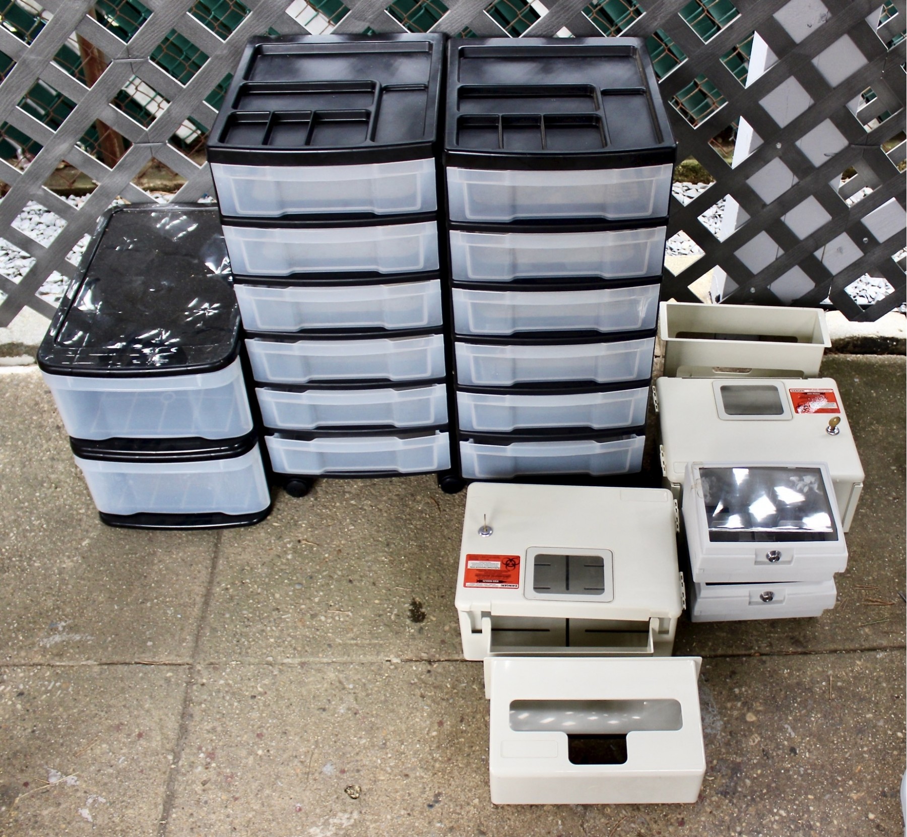 MIXED LOT Of Plastic Rolling Storage Bins & Sharps Containers W/ Keys - LOT OF 8!!