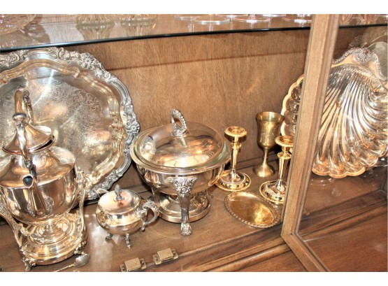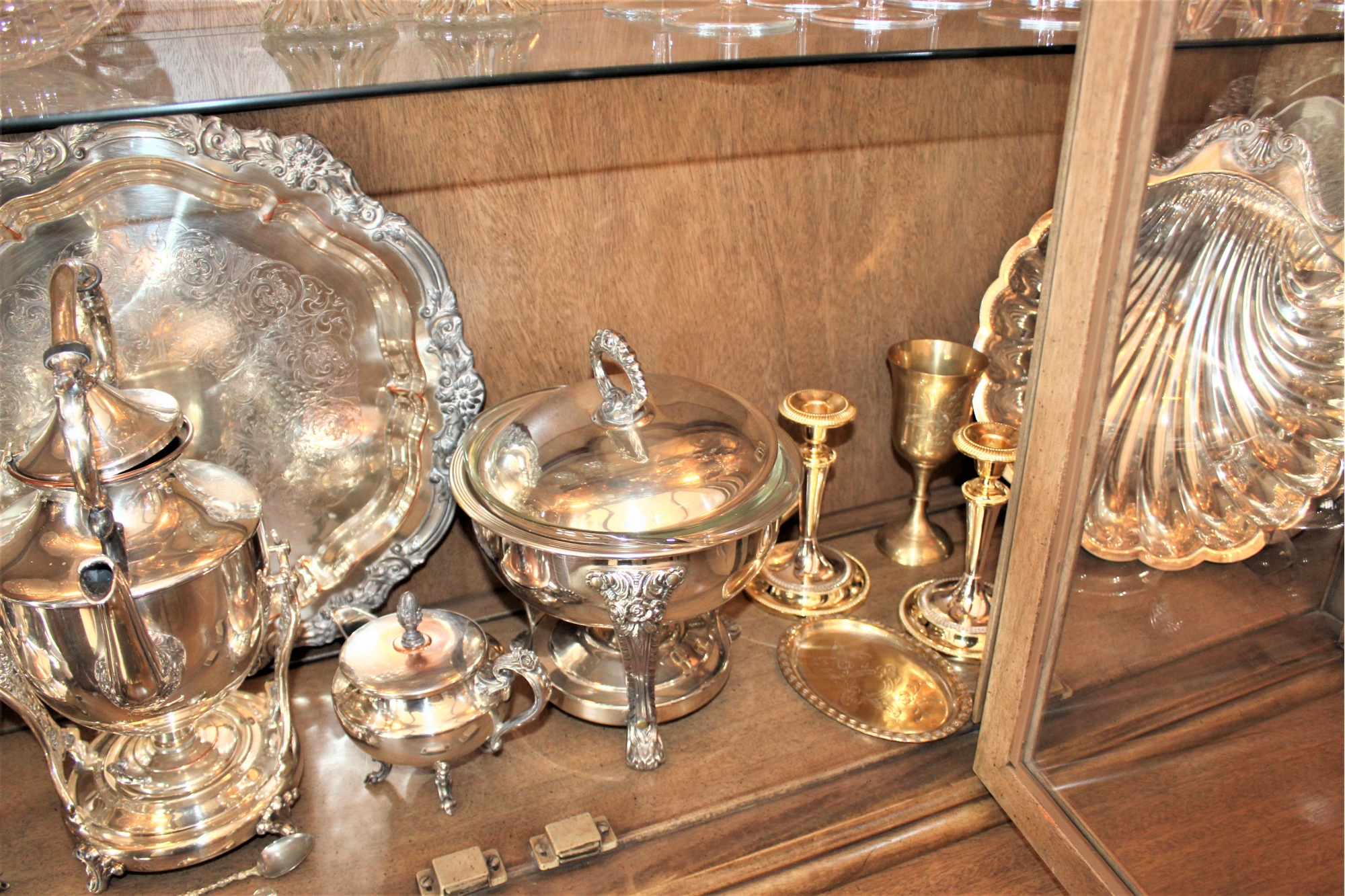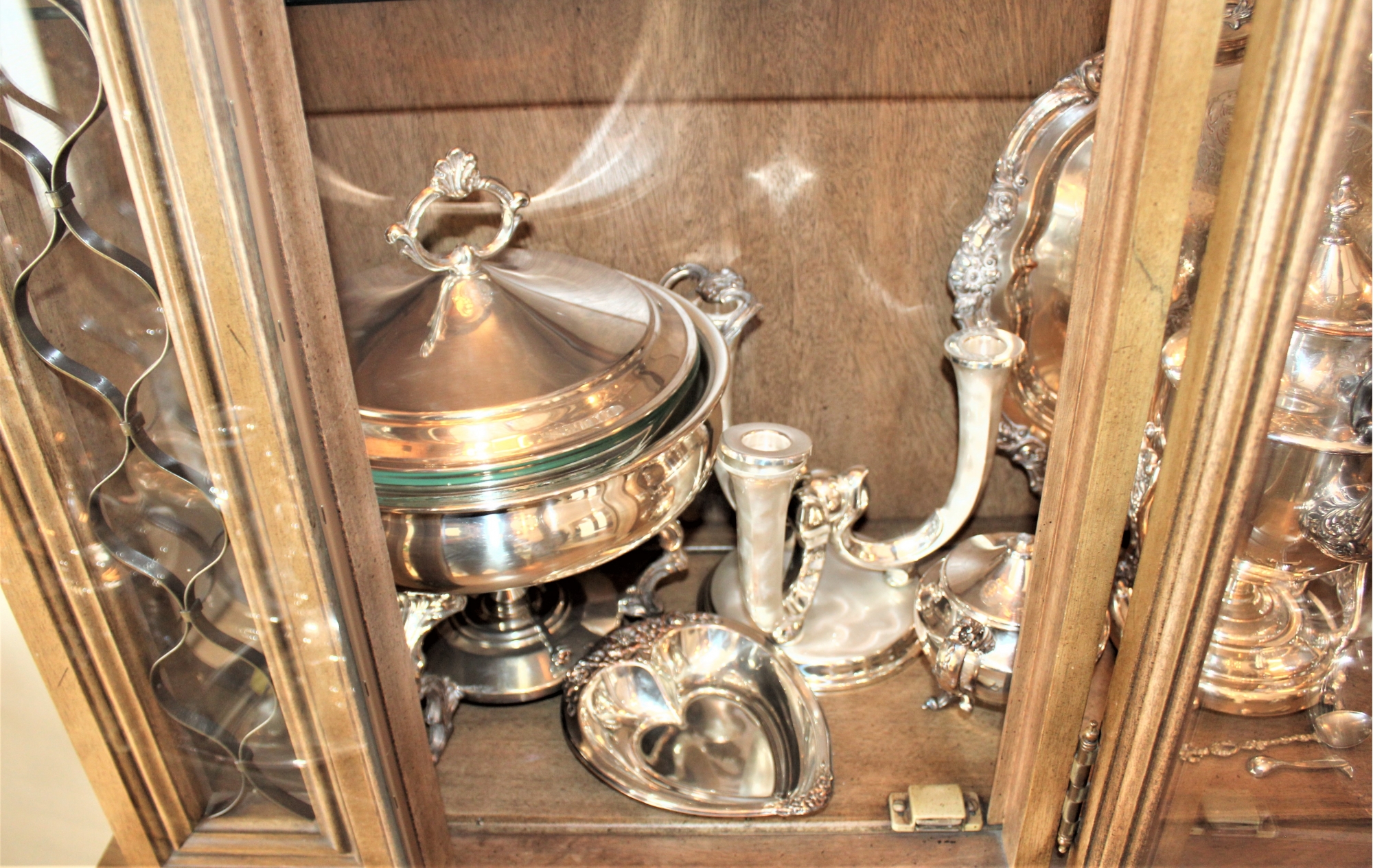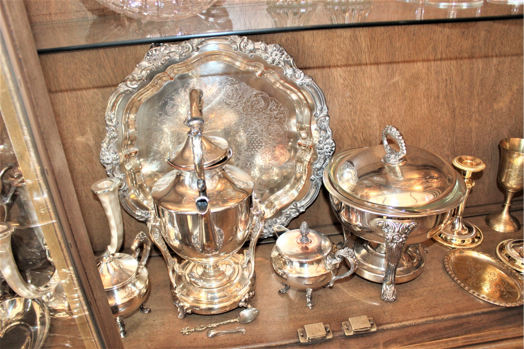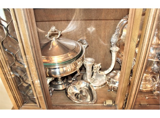 Mixed Lot Of Silver Plated Items - GREAT COLLECTION!! Please note that ONLY the Bottom Shelf of Breakfront is included in this lot