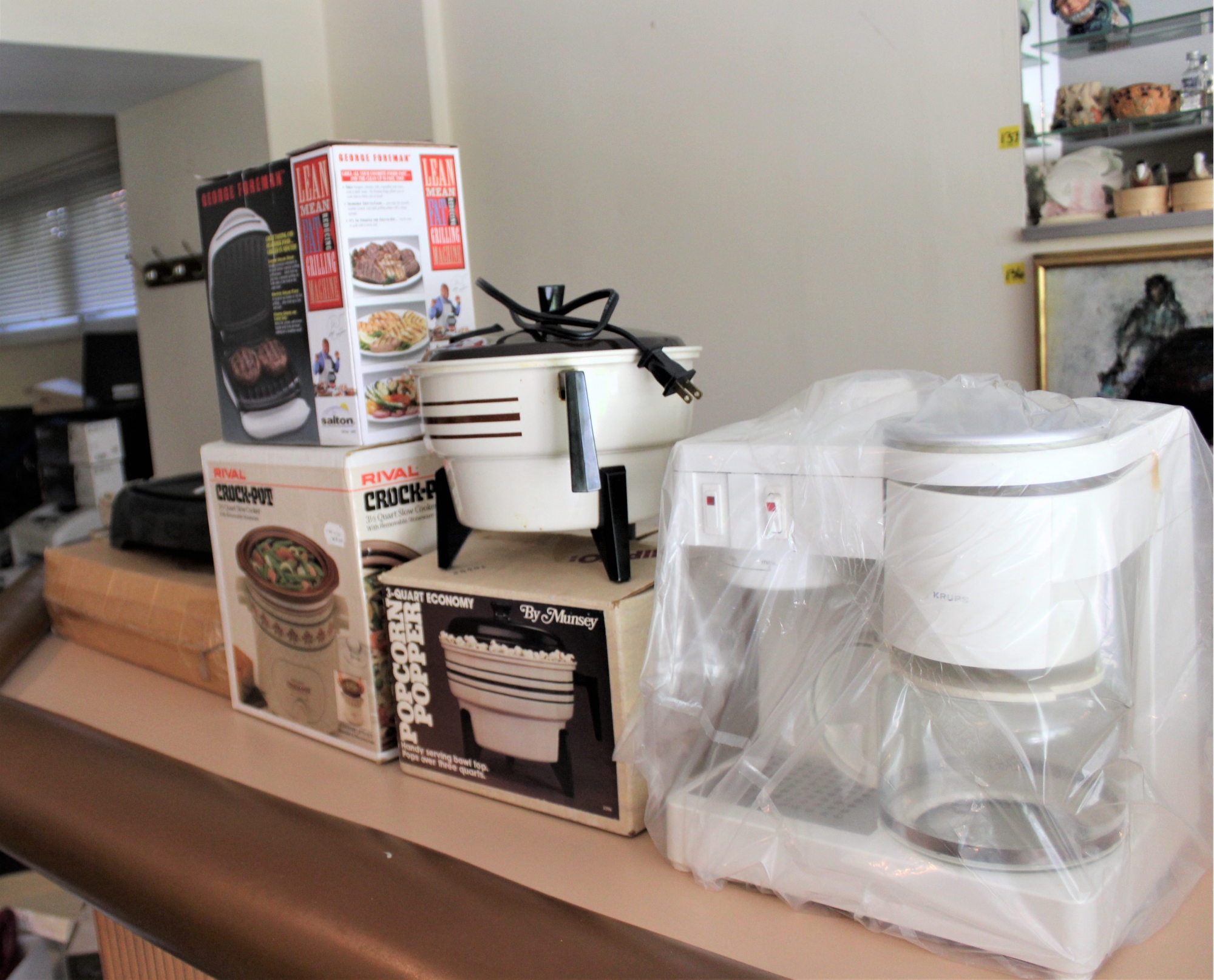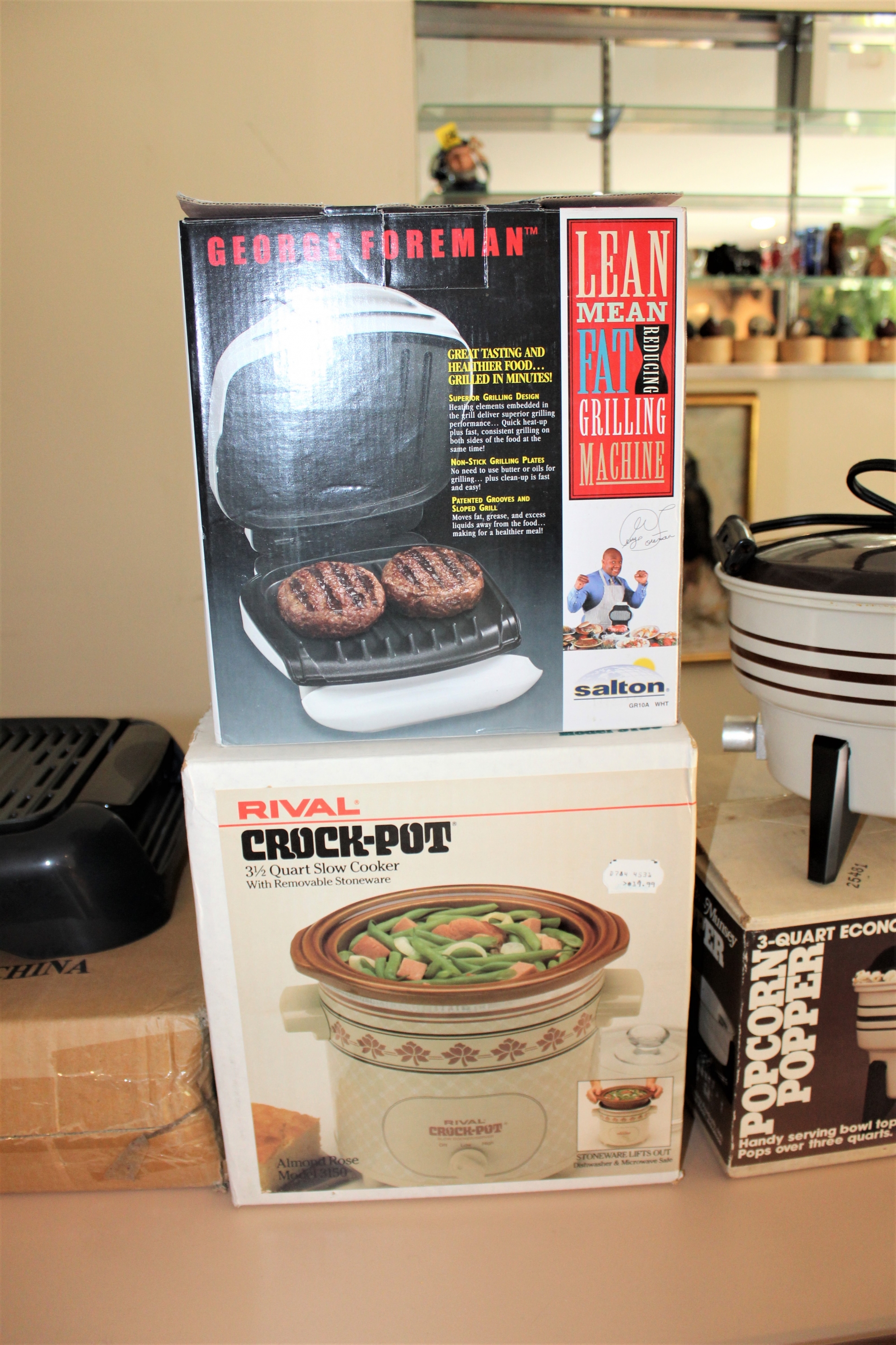 Mixed Lot Of Small Appliances - Krups Expresso Cappuccino Machine, George Foreman Grill & Rival Crock Pot, Munsey Popcorn Popper, Mirro-Matic Coffee Machine & Aroma Rectangular Health Grill! Mixed lot of New & Used items.