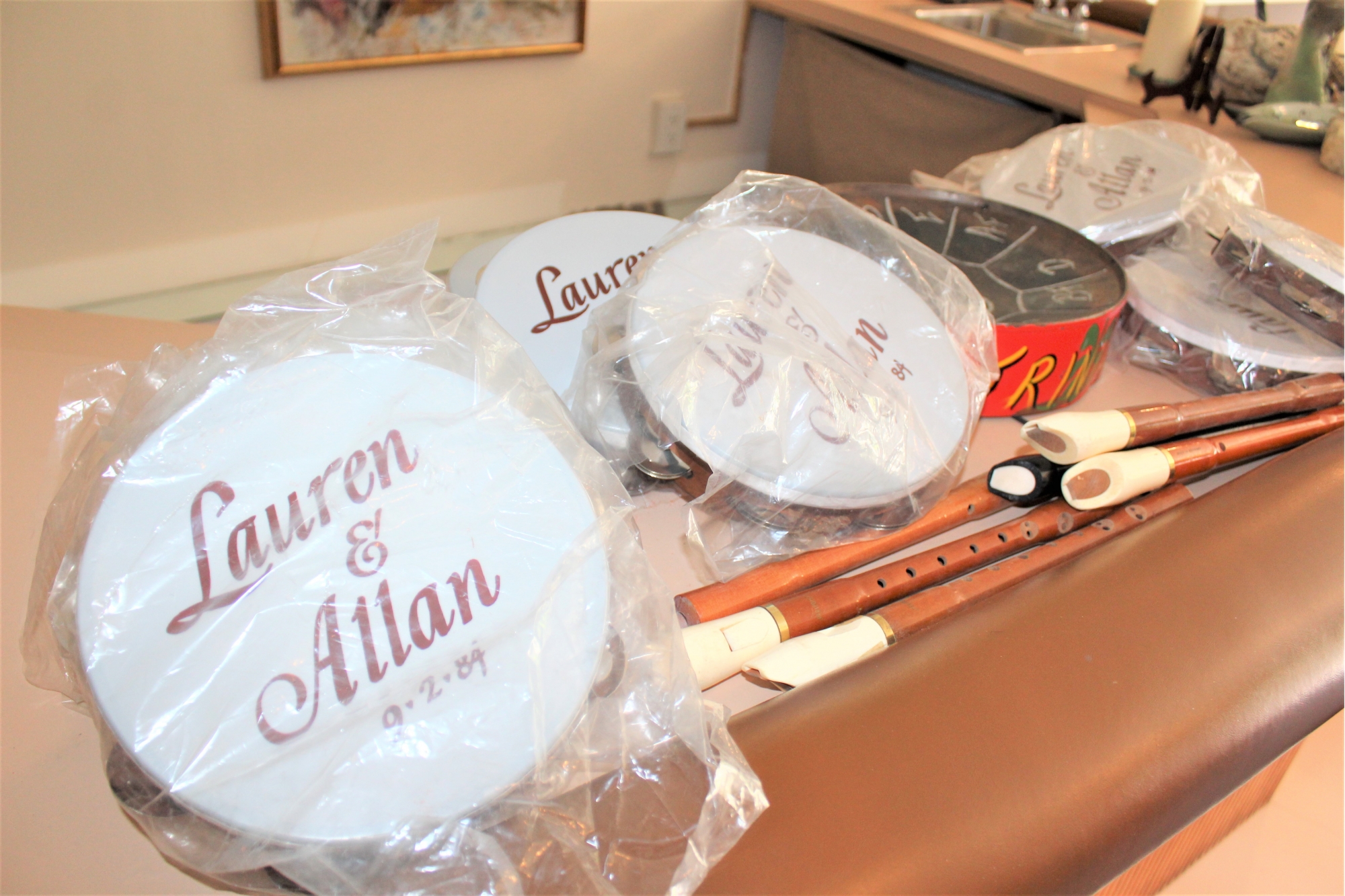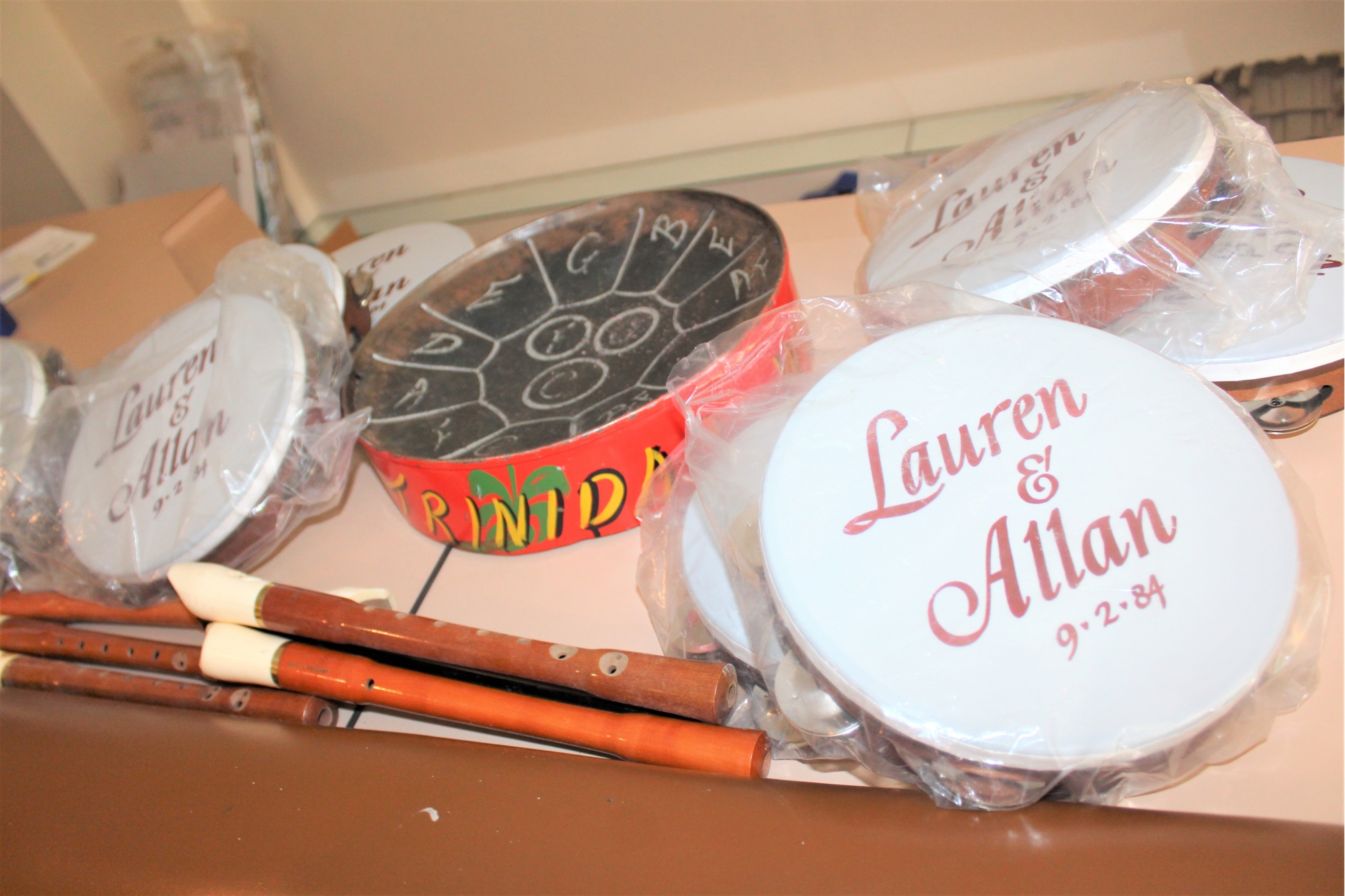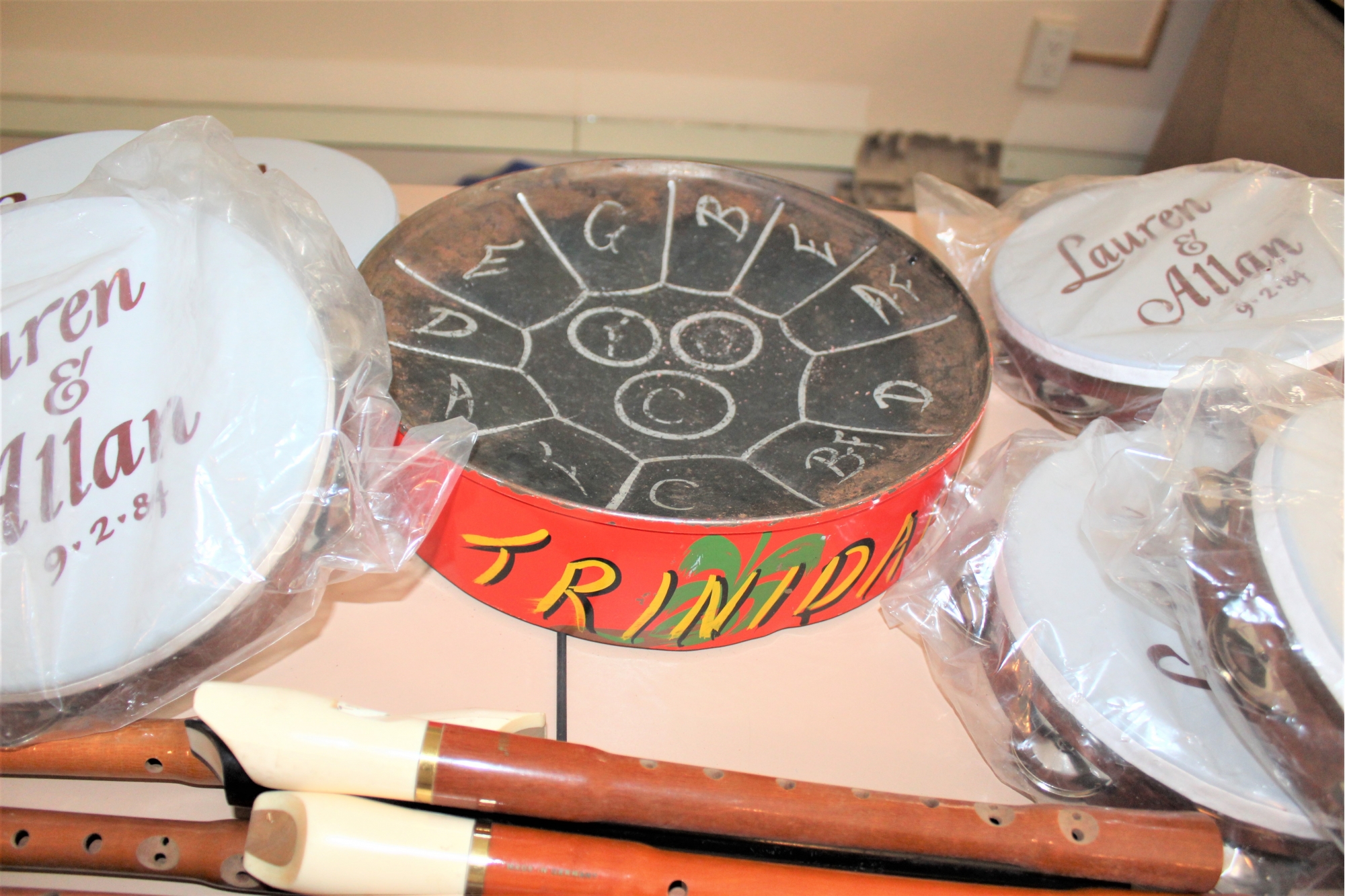 Mixed Music Lot - Tambourines, Flutes & Trinidadian Steel Drum!! Some of the tambourines are monogrammed