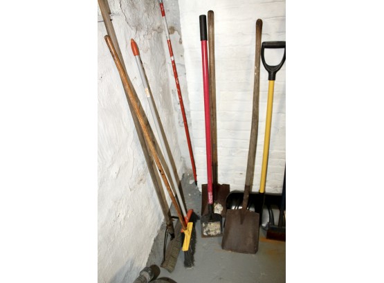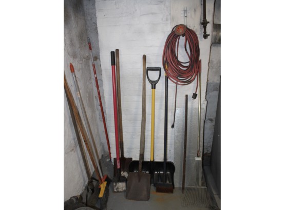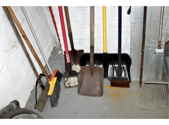MIXED TOOLS LOT - Brooms, Shovels, Electrical Cord, Ice Scrapper, Steel Pole, Aluminum & MORE!