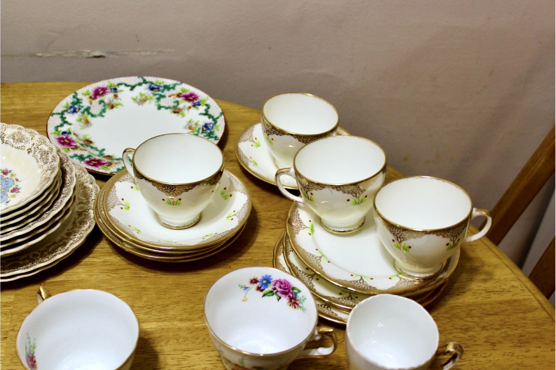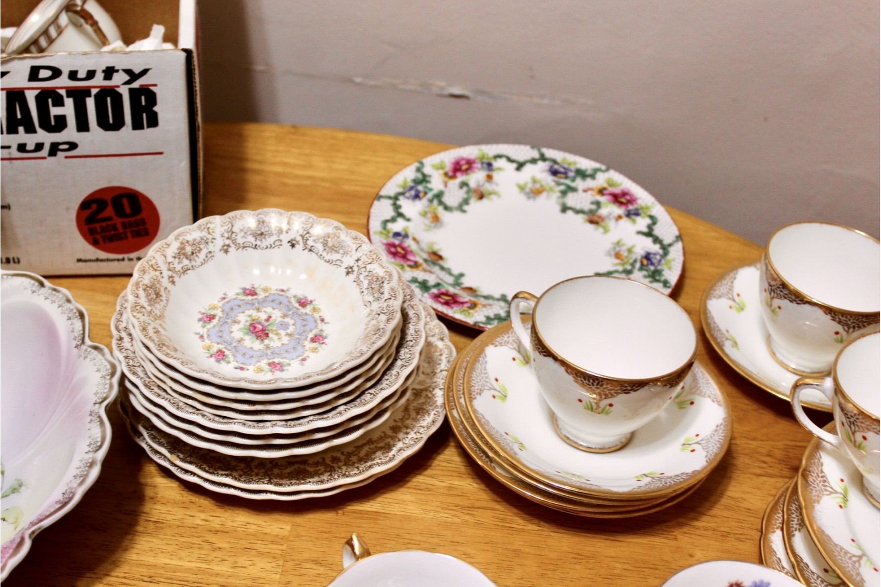 MIXED VINTAGE TEA CUPS & PLATE LOT - Bavaria, Old Royal, Regency Bone China, Plates & MORE! Please note cups & plates may have chips or scratches due to years of use.