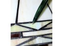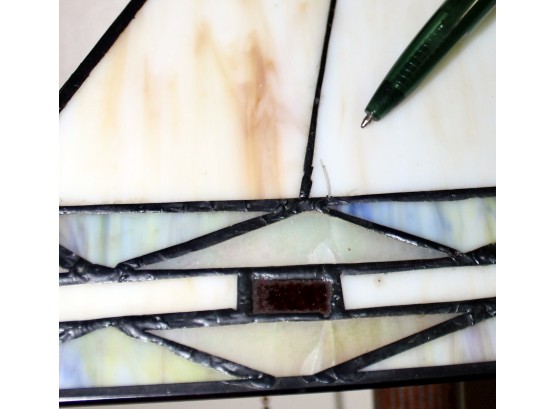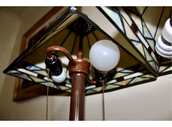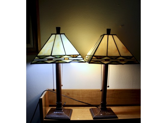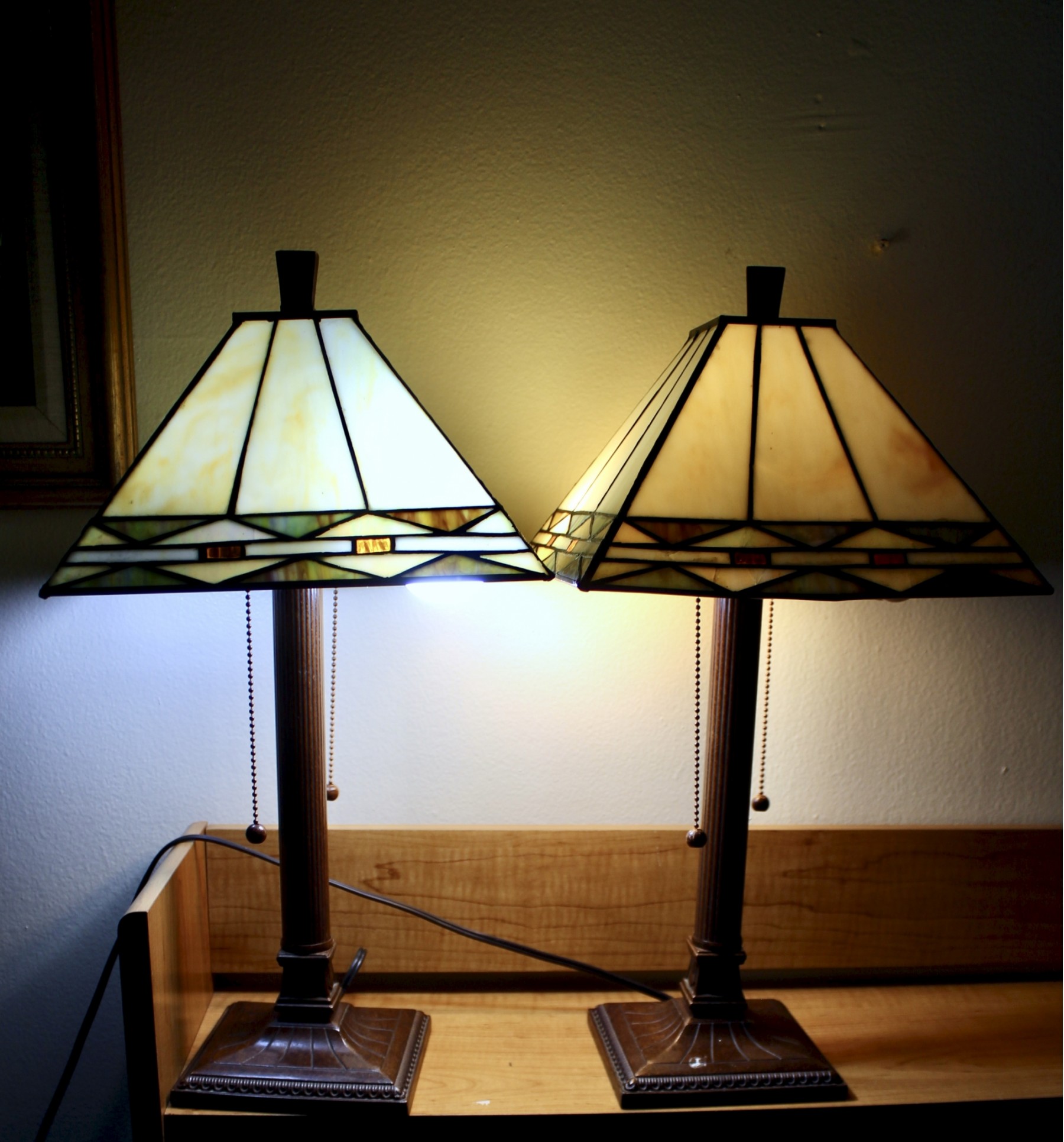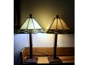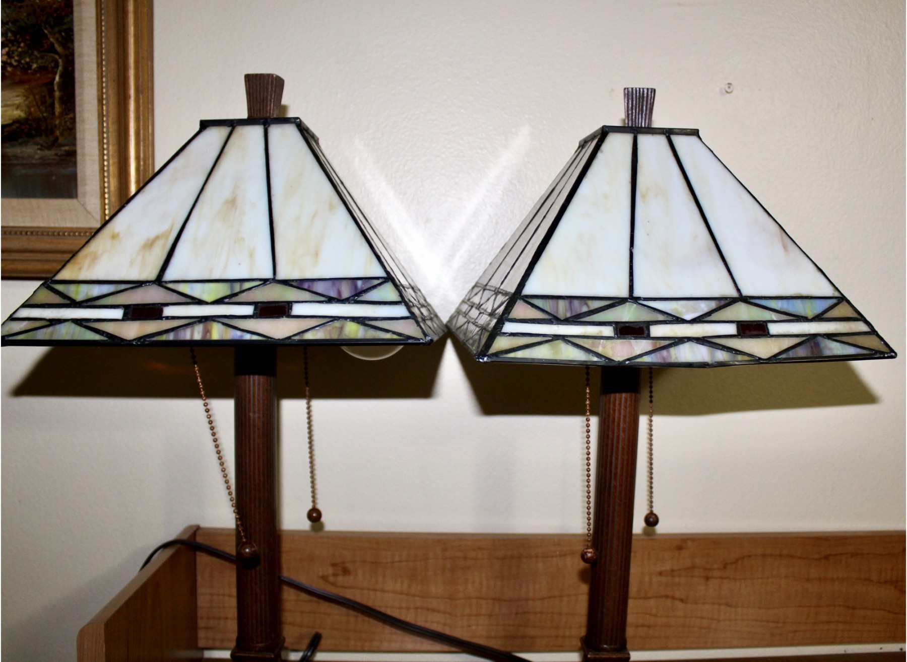 MODERN TABLE LAMPS - LOT OF 2 - WORKS! Please note there are some light cracks throughout shades, please see pictures.