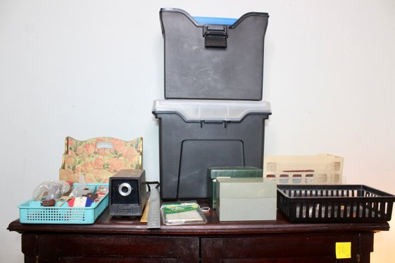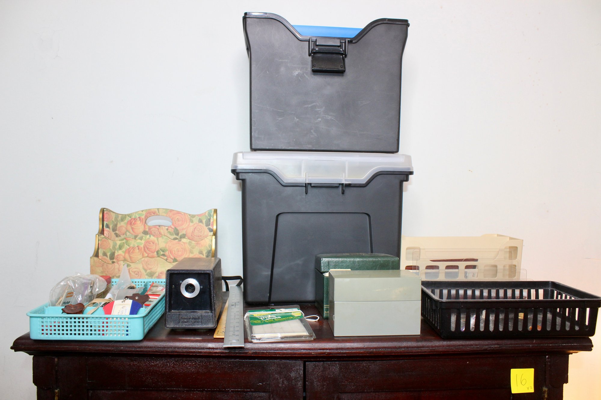 OFFICE LOT - FILE BINS - PAPER SHREDDER - ELECTRIC PENCIL SHARPENER - METAL INDEX CARD HOLDER - ITEM#22 RM3