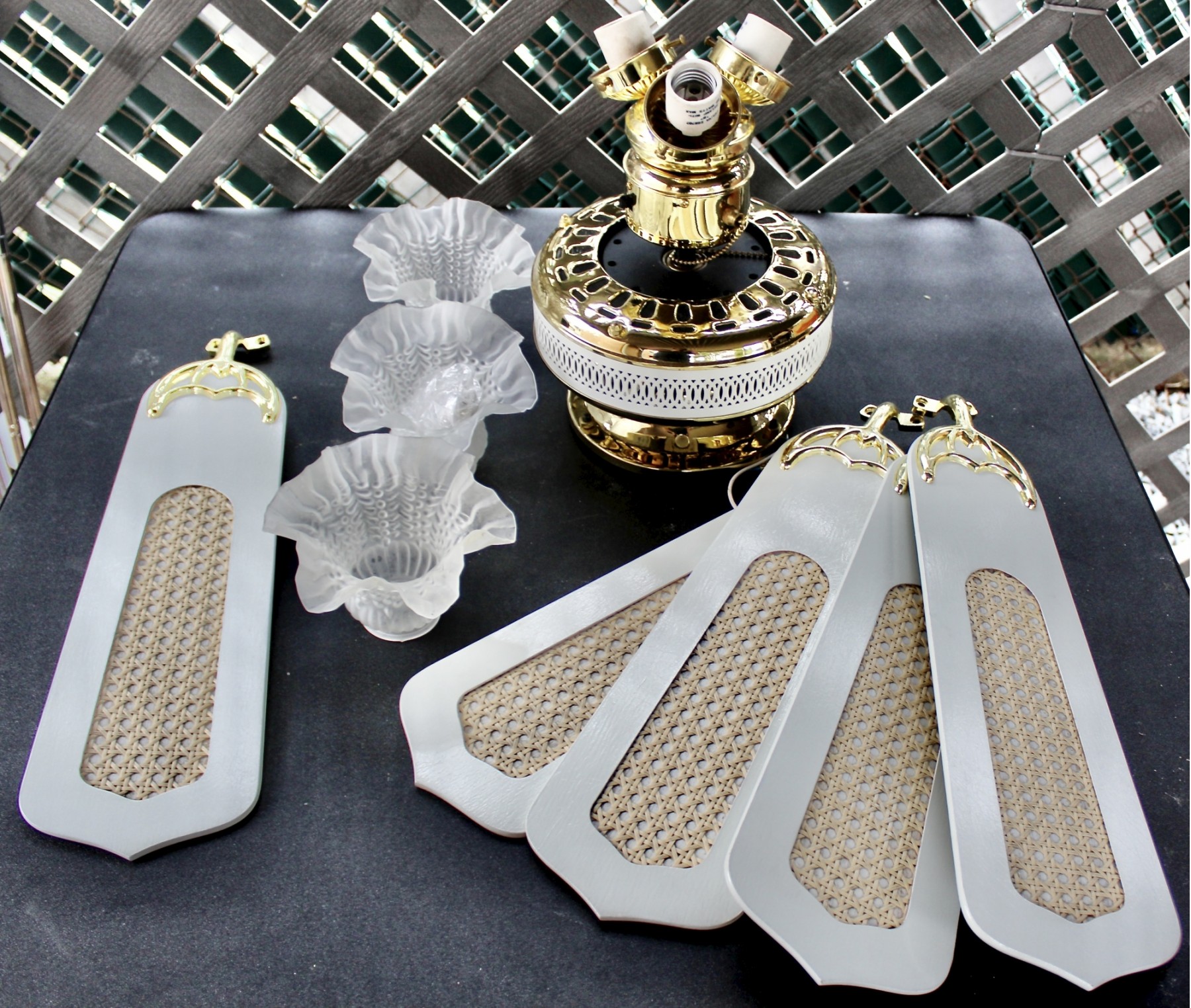 SELENA White Ceiling Fan - Accented W/ Rattan - Extra Light Globe Included - GREAT LOT!!