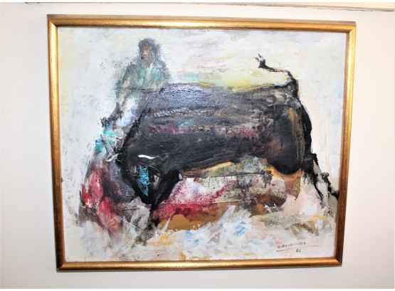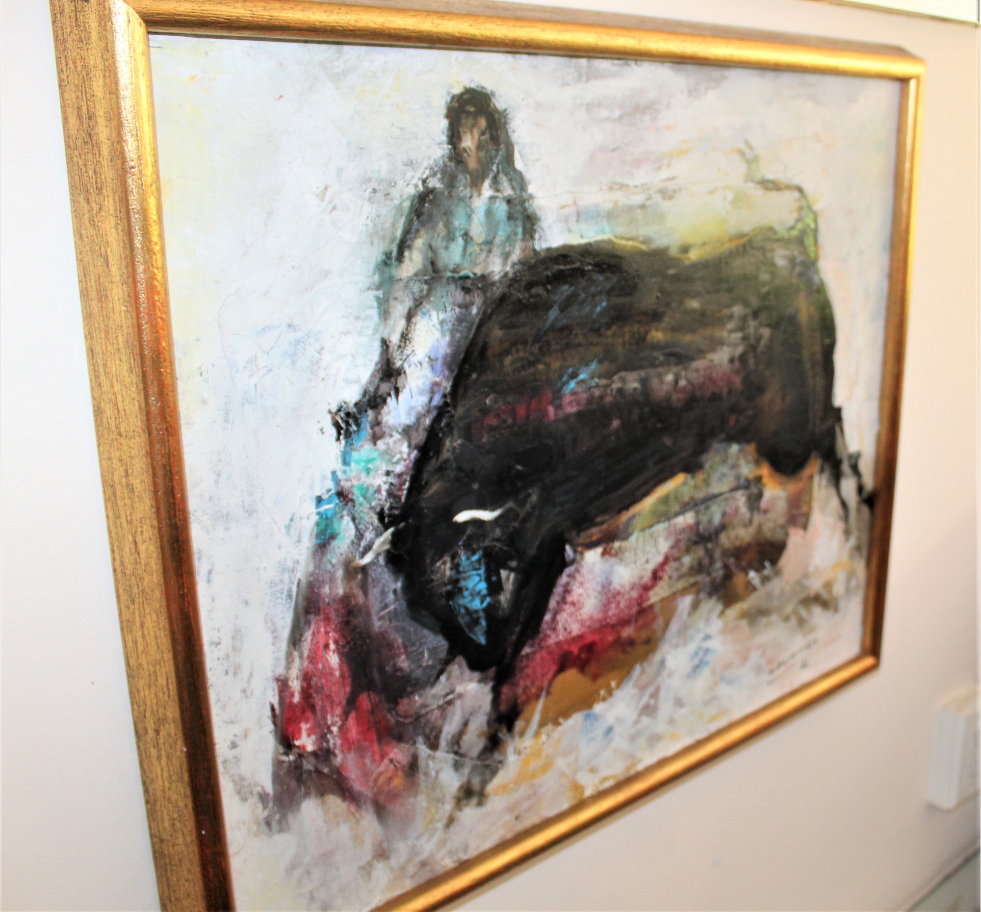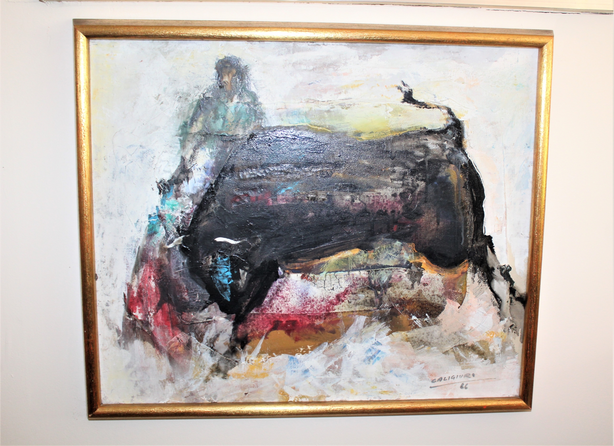 Signed CALIGIURI "Bullfighter" 1966 Framed Art - Oil on Canvas! Beautiful gold frame to match amazing artwork.