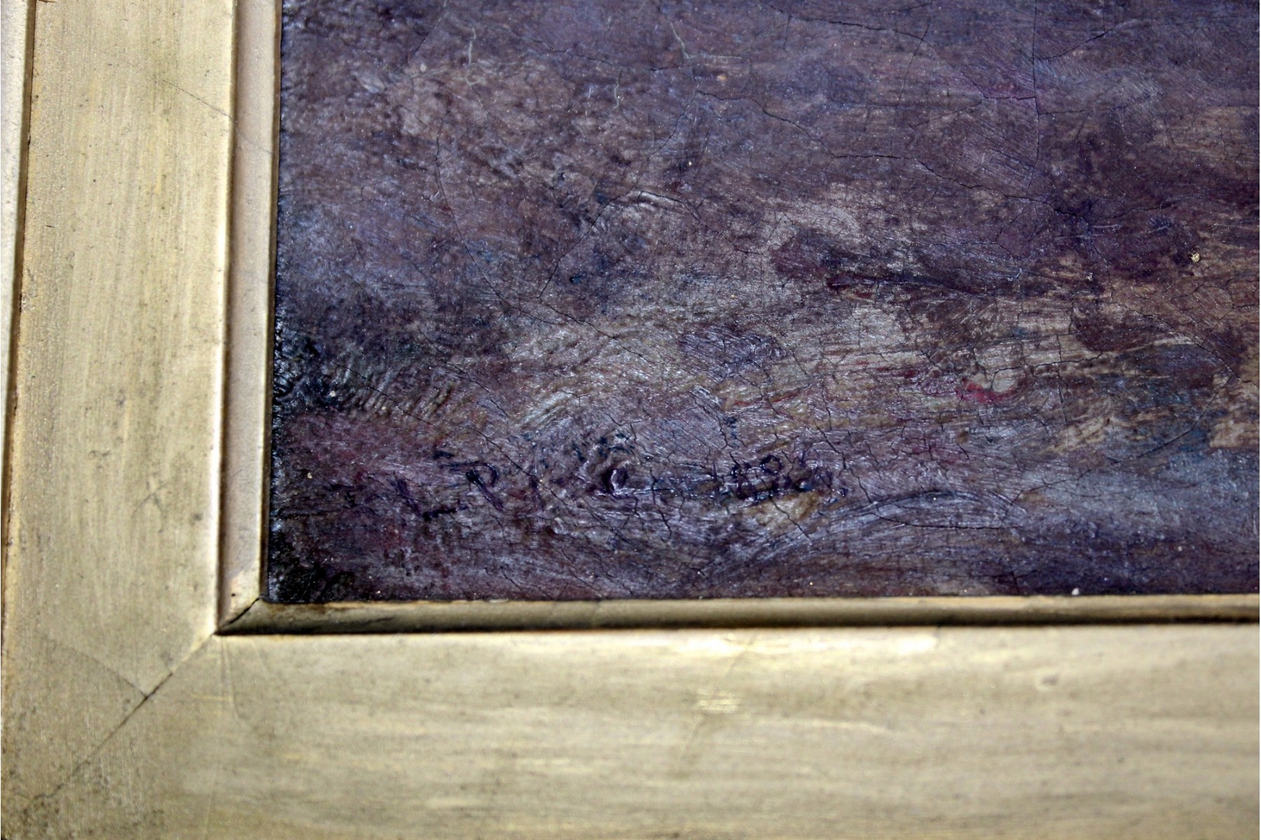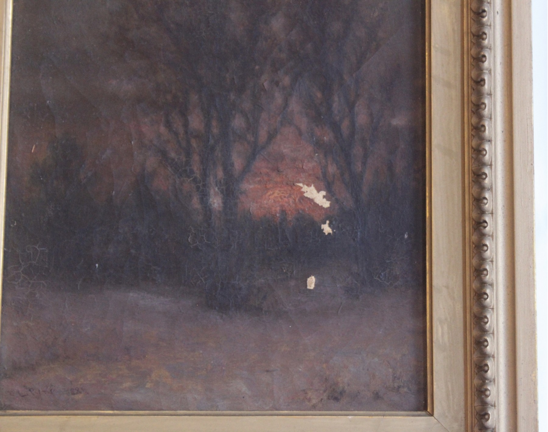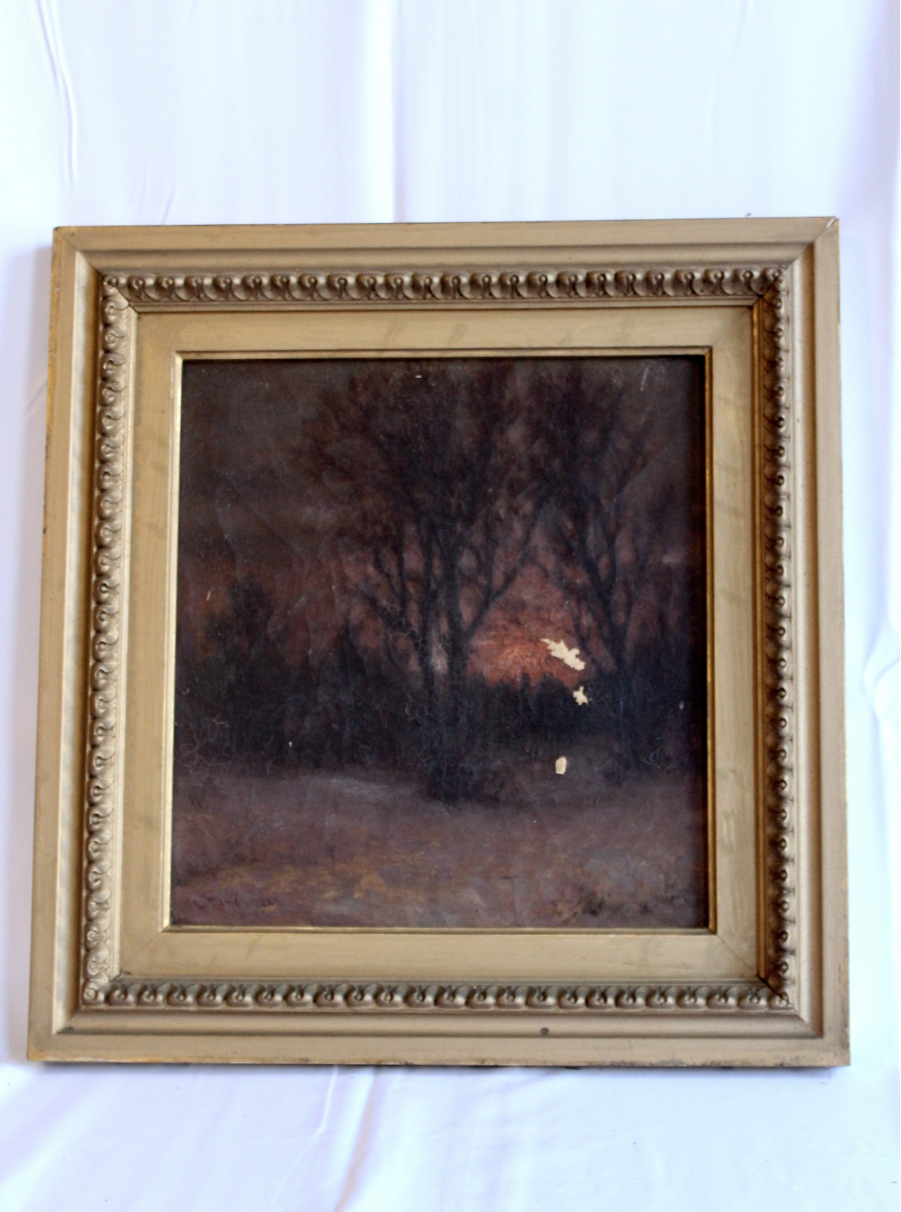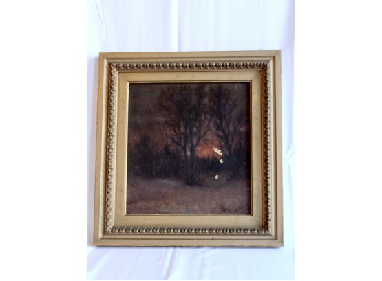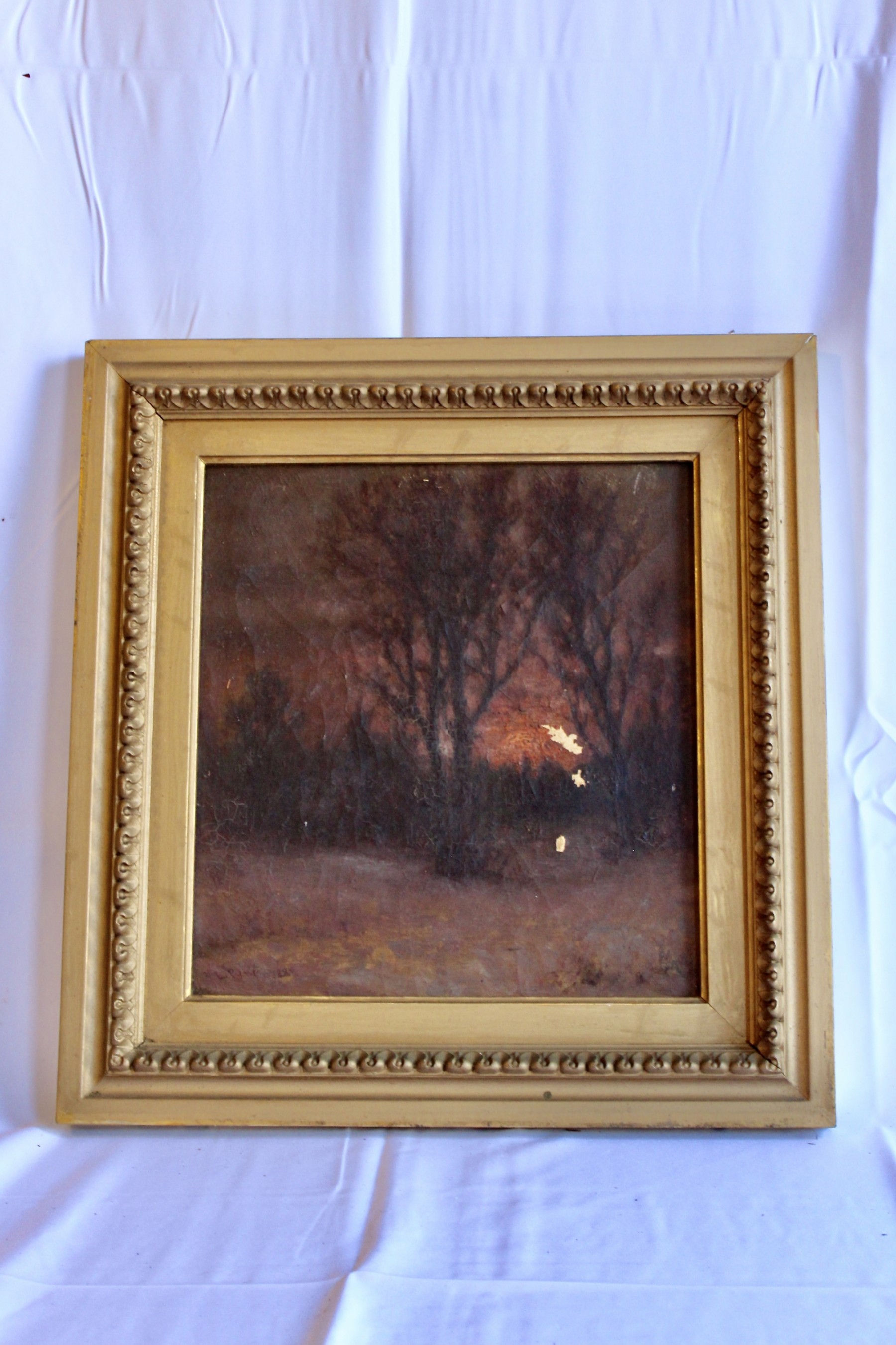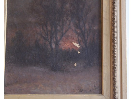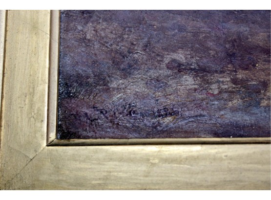 SIGNED L. PINE Oil On Canvas Small Framed Art - RARE DETAIL! Please note there are some condition issues on painting due to age & natural scratching on frame, please see pictures.