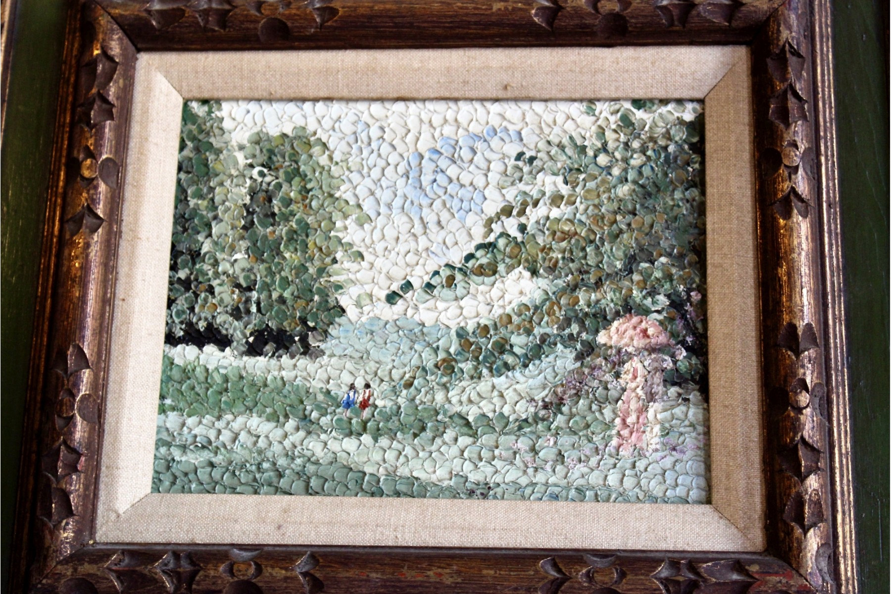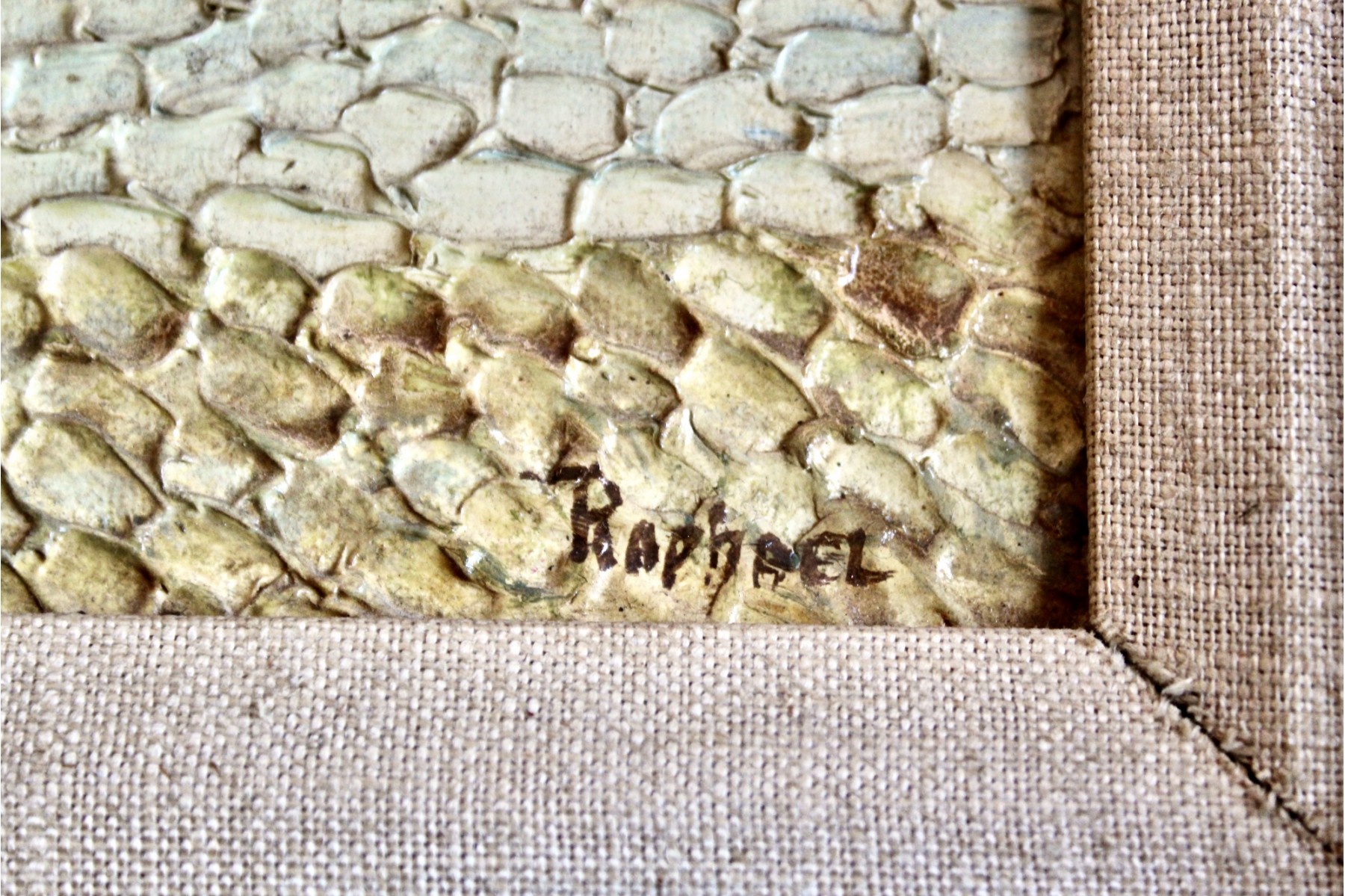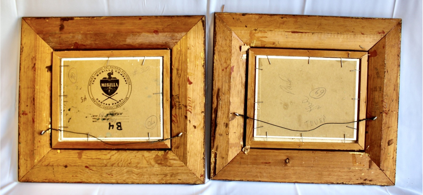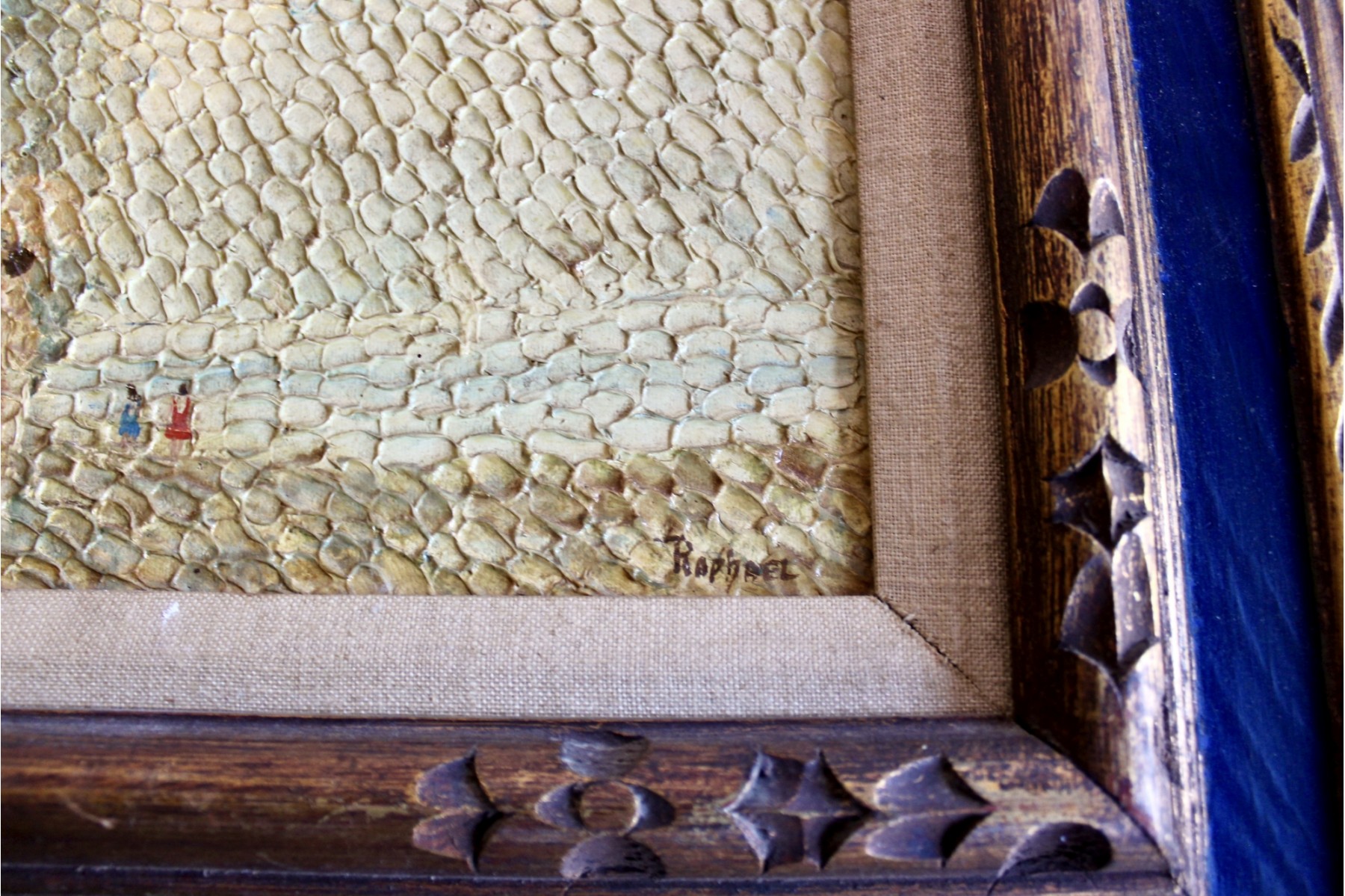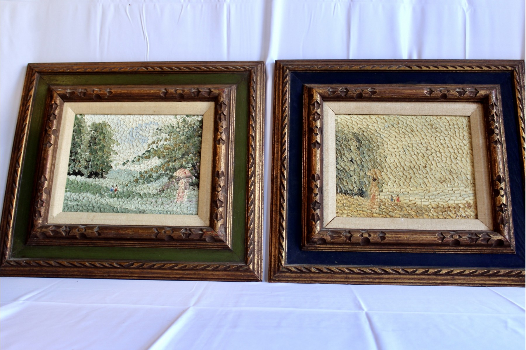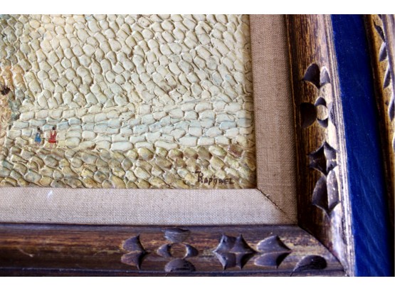 SIGNED RAPHAEL Oil On Board Framed Art - Lot Of 2 - Unique Brush Technique - RARE DETAIL! Please note there are some condition issues on painting due to age & natural scratching on frame, please see pictures.