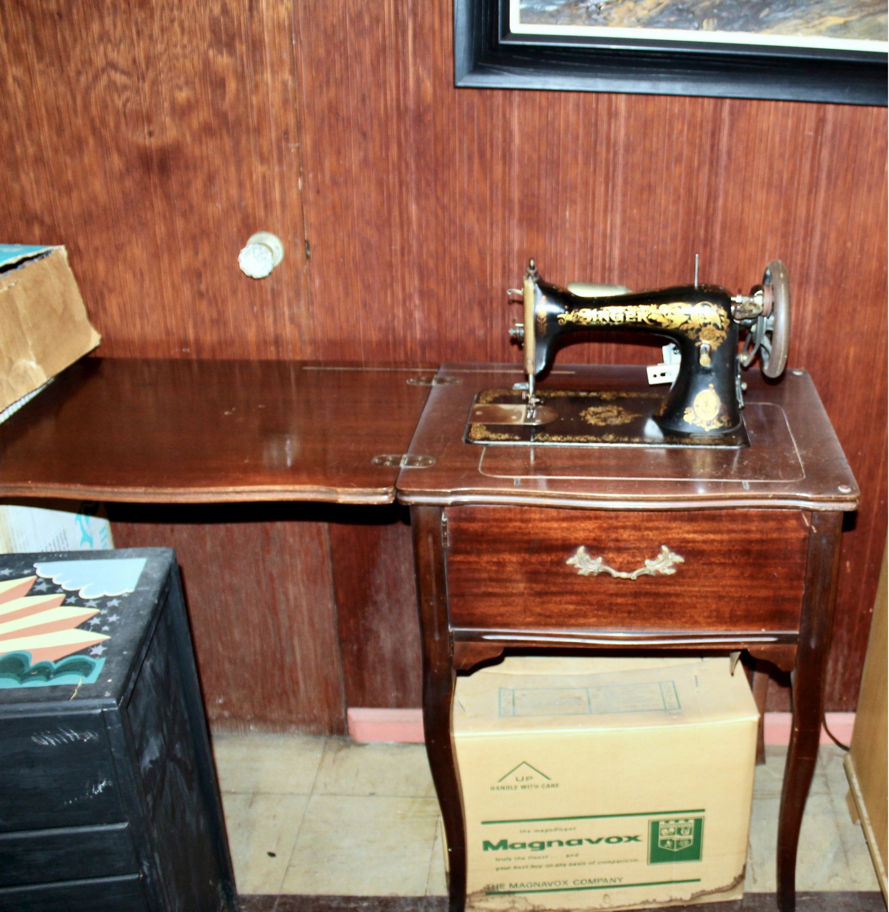 SINGER SEWING MACHINE WITH ORIGINAL SEWING TABLE - SERIAL # D680926 - VINTAGE!!