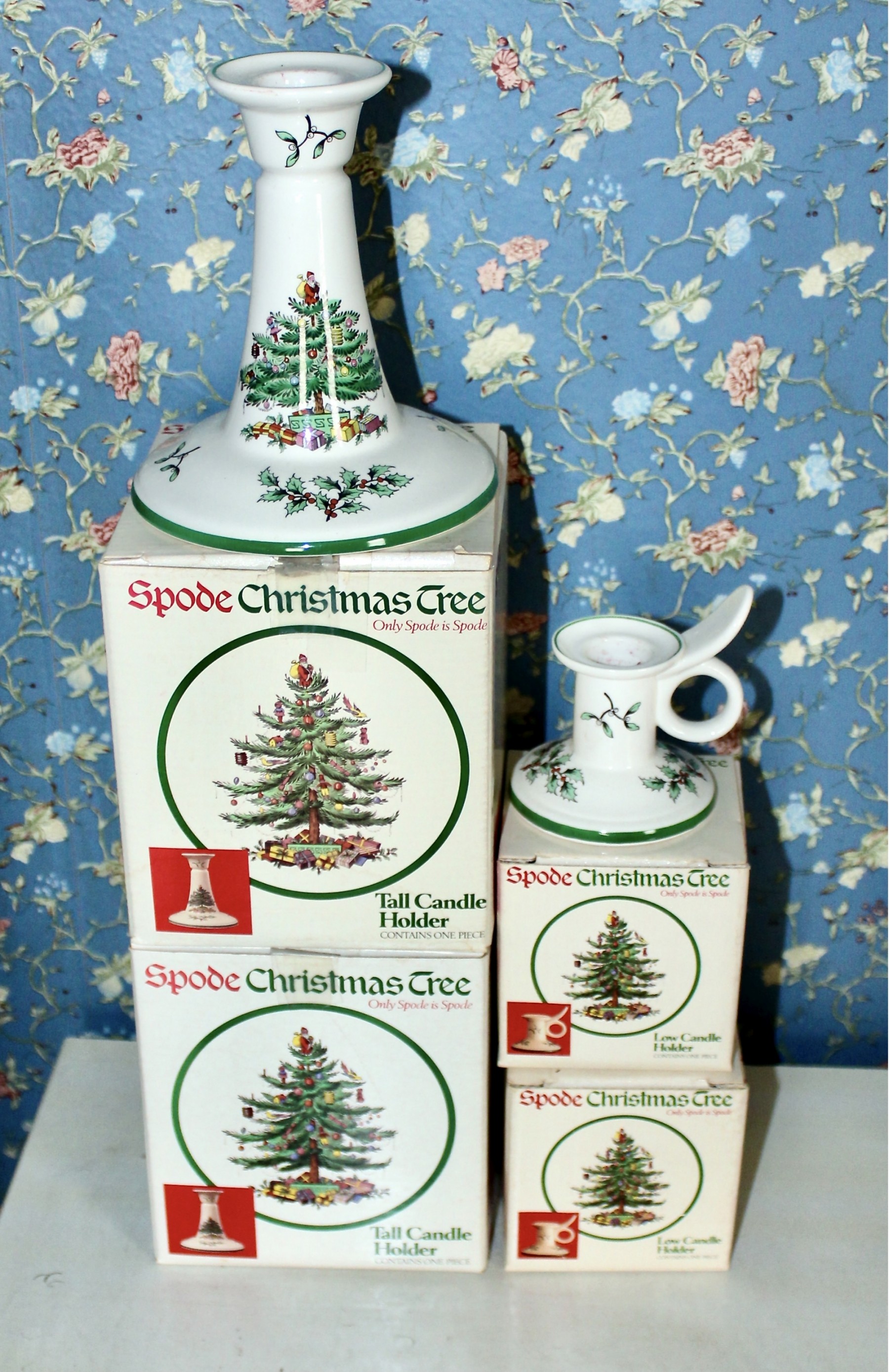 SPODE Christmas Tree Candle Holders - Lot Of 4!! Two large and two small. May have chips.