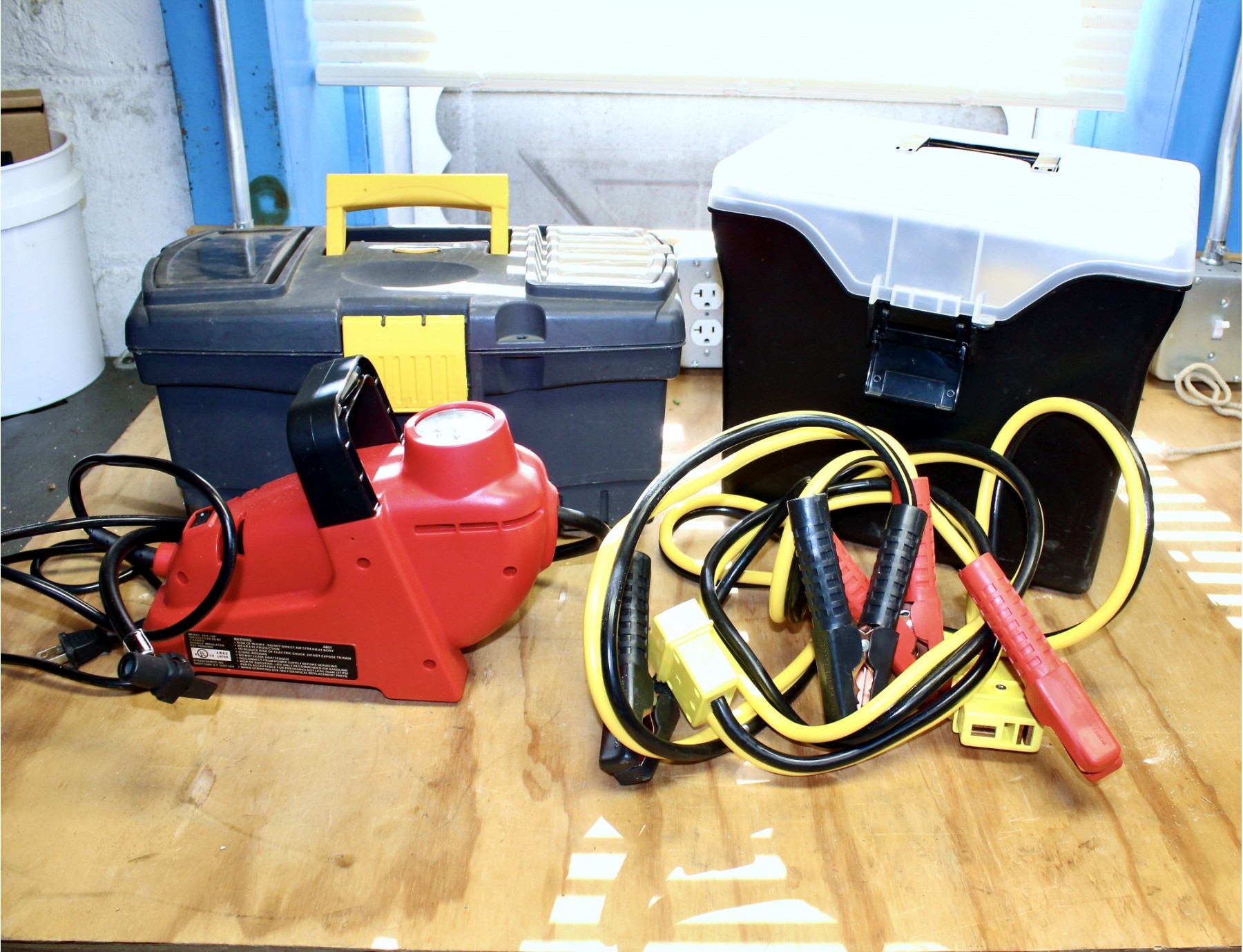 INTERDYNAMICS 120V Power Air Compressor, Jumper Cables & Two Tool Boxes!!