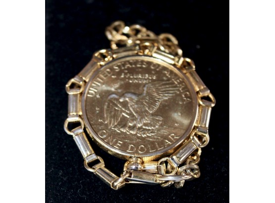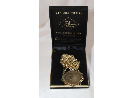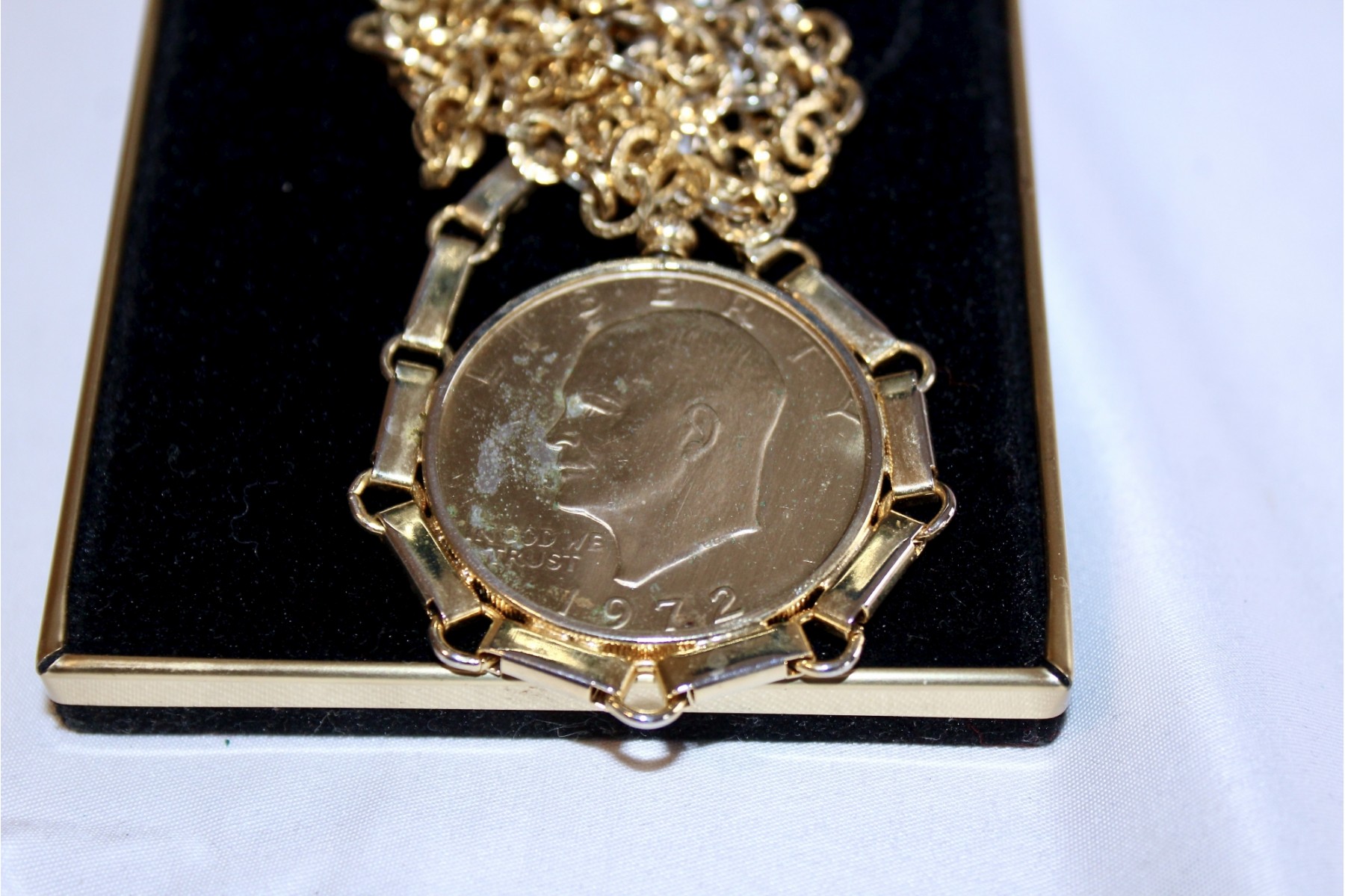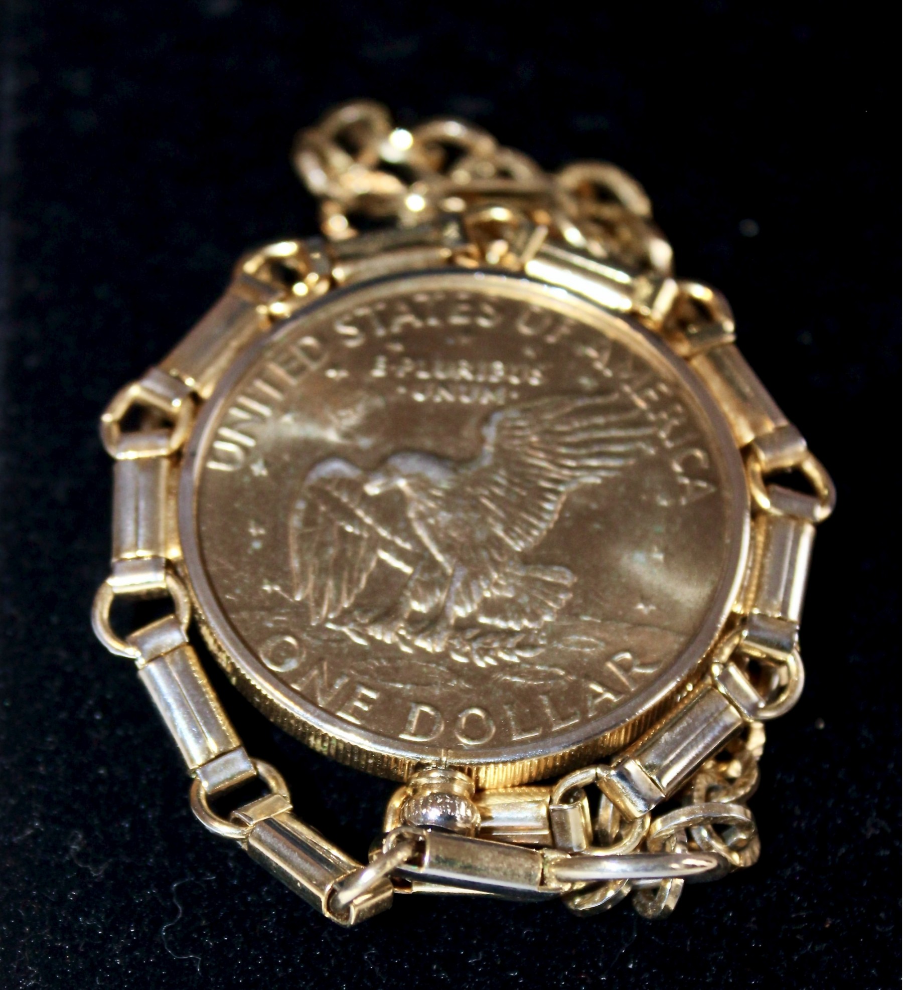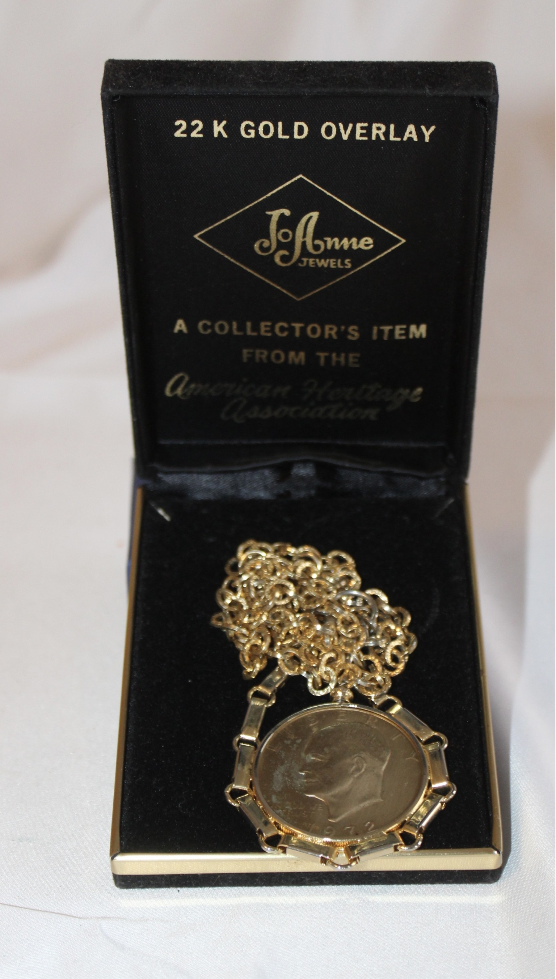 VINTAGE AMERICAN HERITAGE ASSOCIATION 1972 ROOSEVELT SILVER DOLLAR Chained - 22K Overlay!!