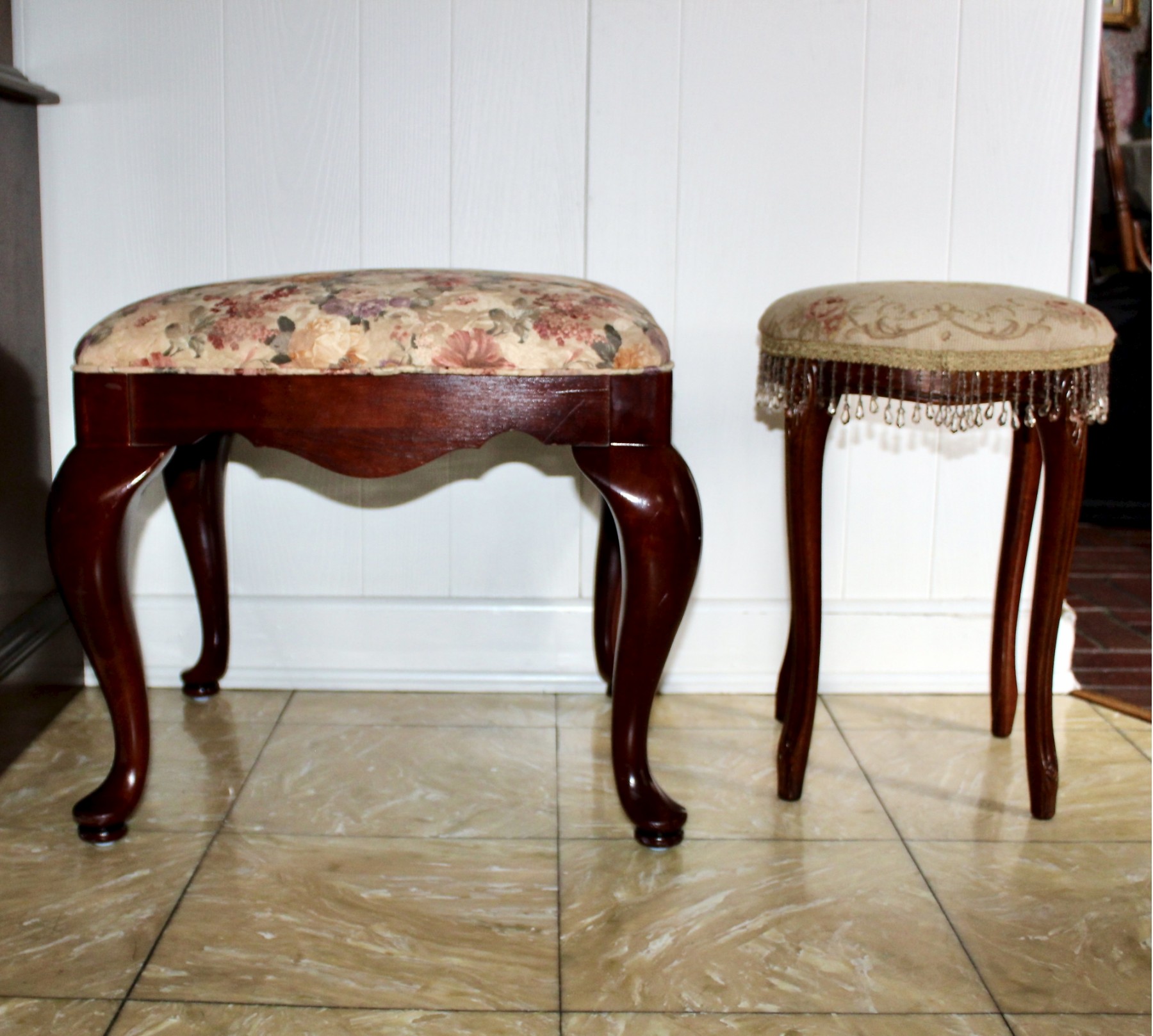 VINTAGE & ANTIQUE Stools - Lot Of 2 - Newly Reupholstered - GREAT FOR SMALL PLACES!!