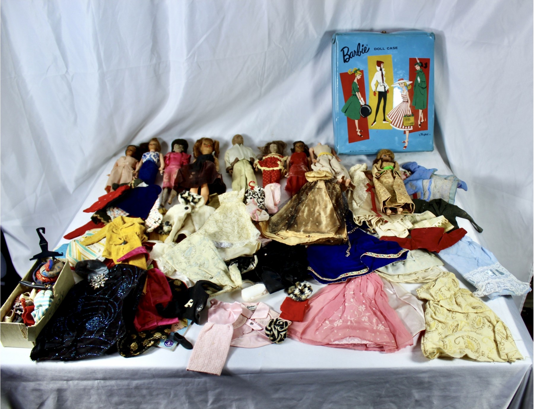 Amazing collection of everything Barbie. Many dresses, shoes, accessories, dolls and the Original Barbie Case. Clothing, Dolls and case smell very moldy. Needs deep cleaning.