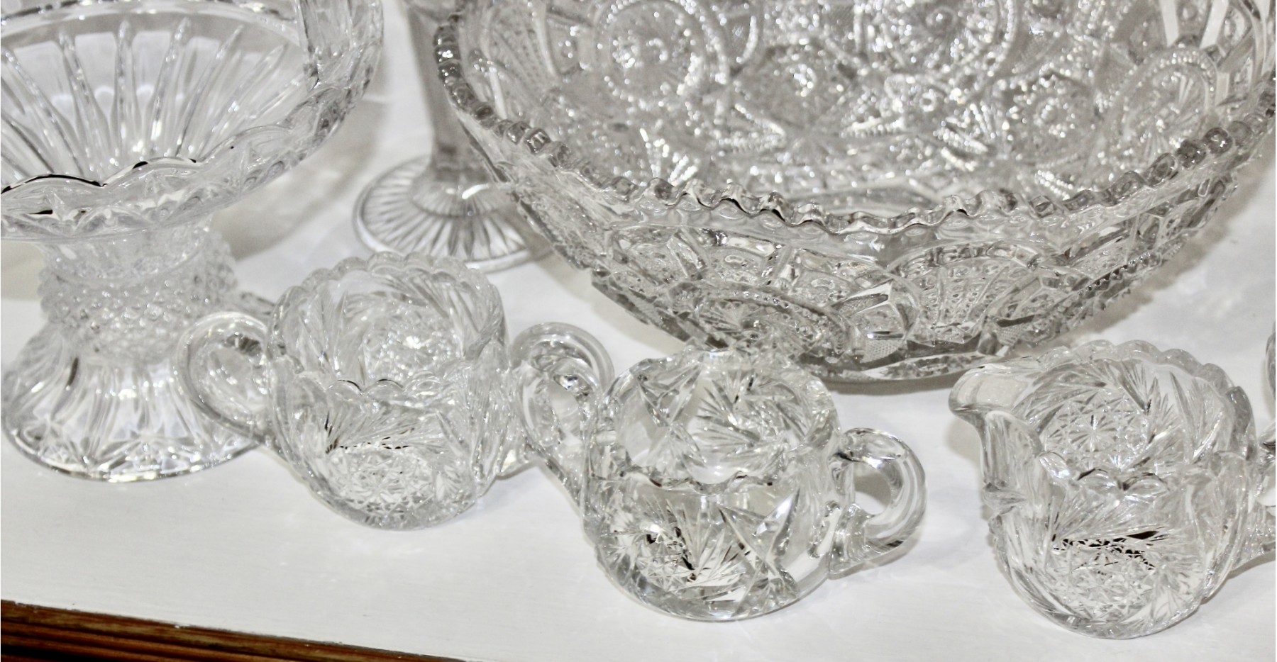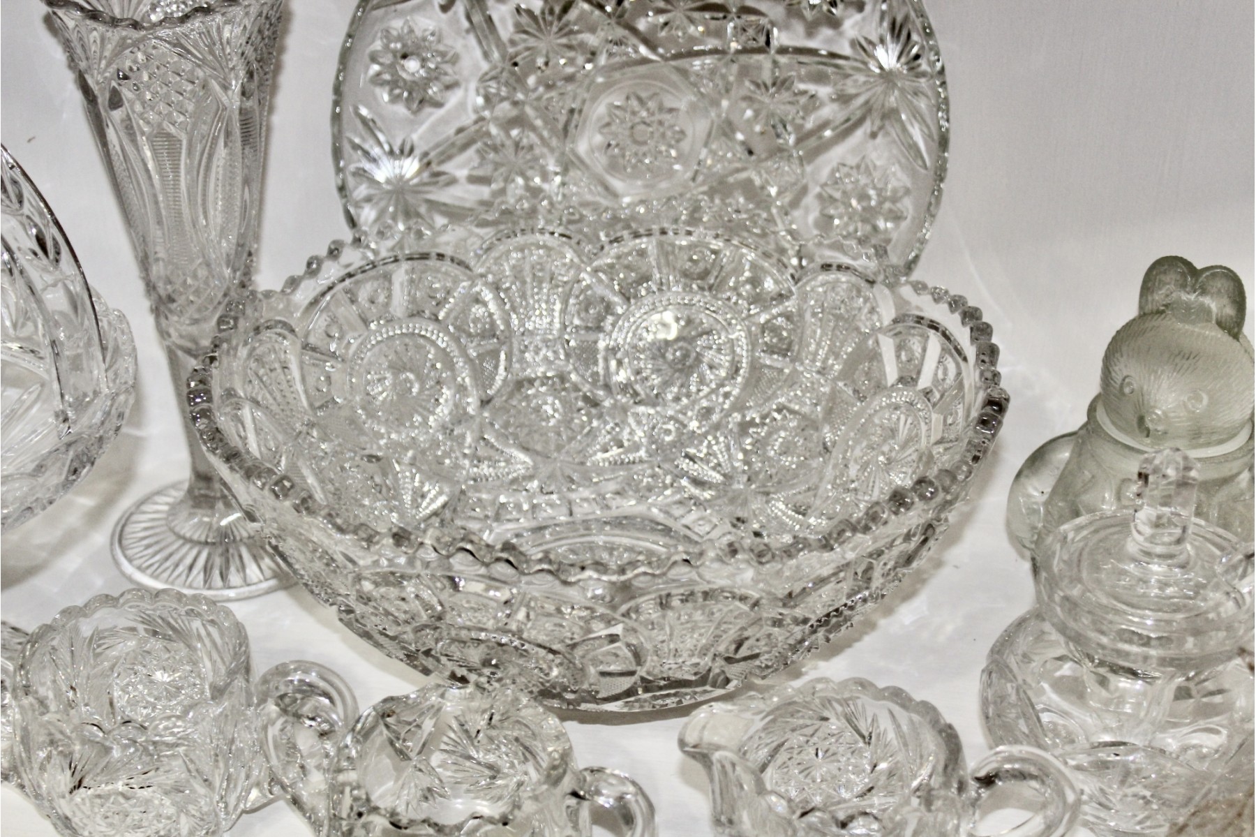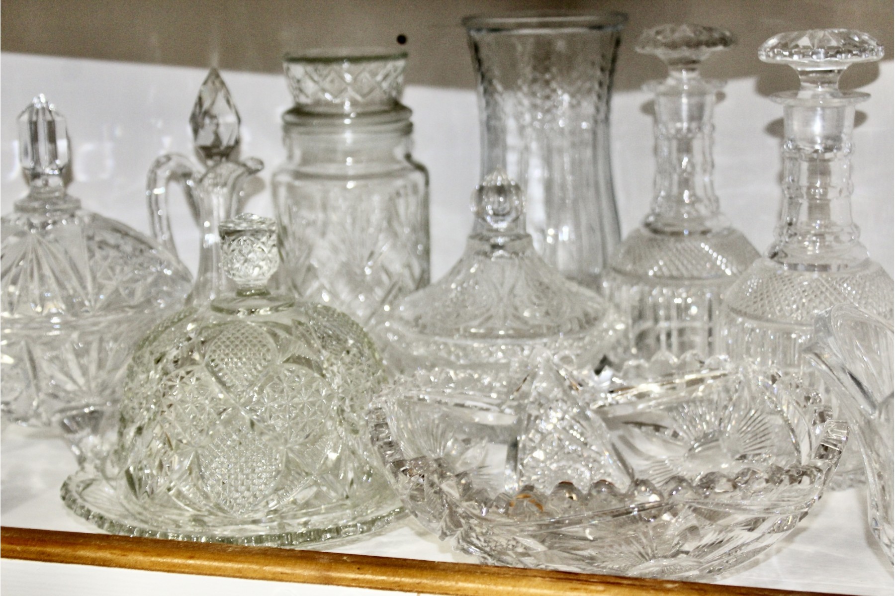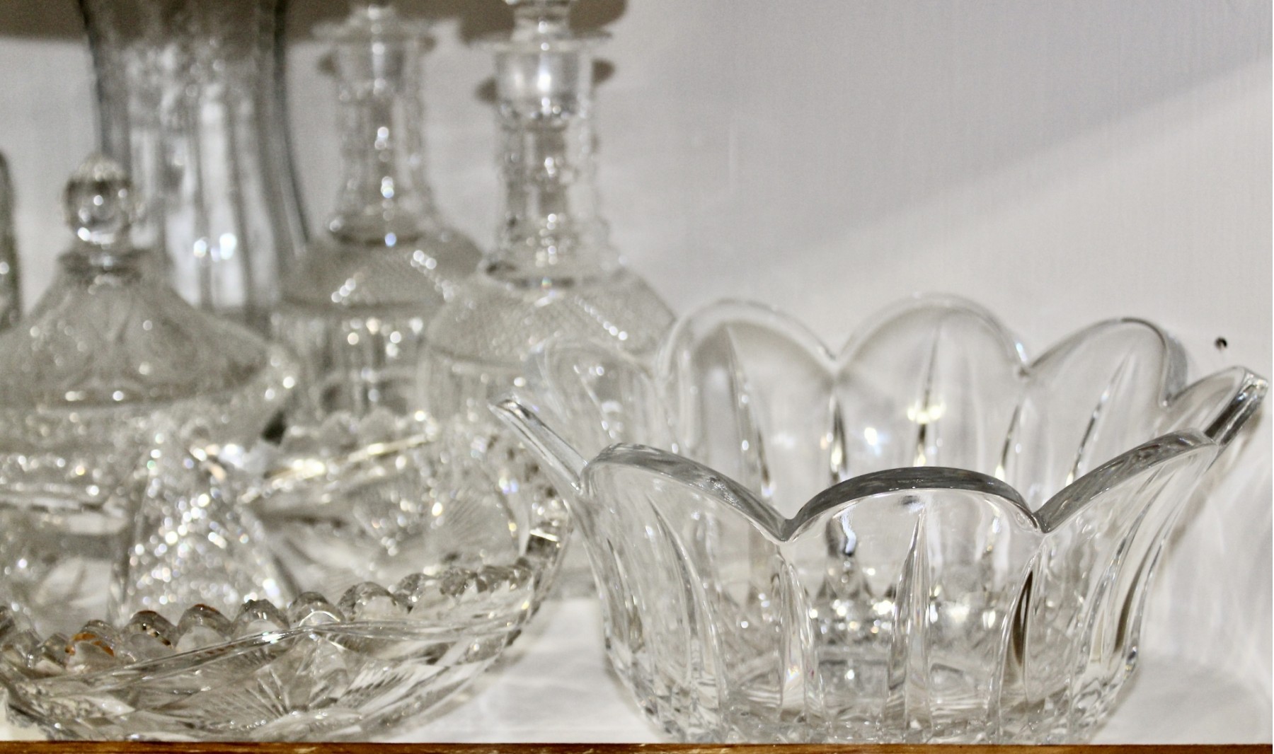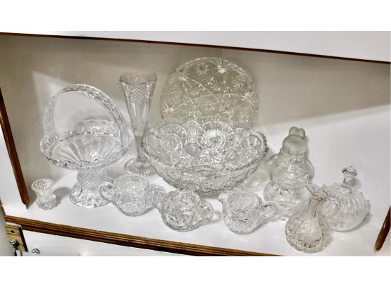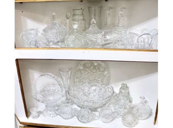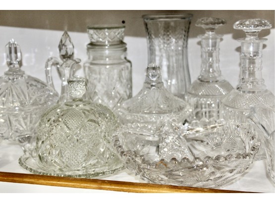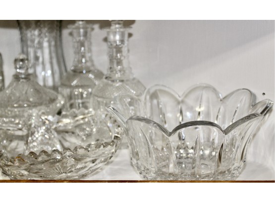 VINTAGE CRYSTAL & GLASS LOT - Bowls, Decanters, Vases, Serving Plates & MORE! Please note some items may be have scratches or chips due to age, please see pictures. Some of the crystal is hand cut and some are machine cut.