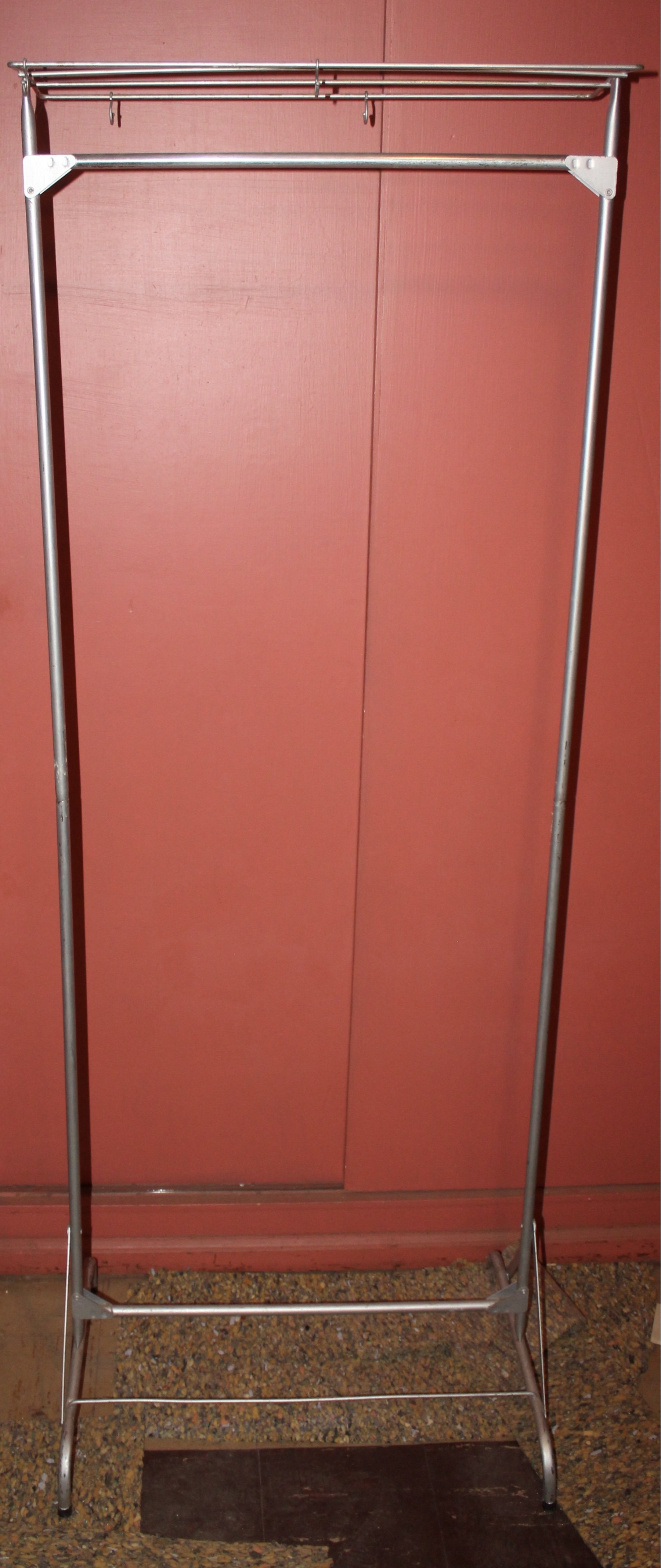 VINTAGE INDUSTRIAL STYLE CLOTHING RACK W/ TOP SHELF & HOOKS - BREAKS DOWN FOR EASY STORAGE!!
