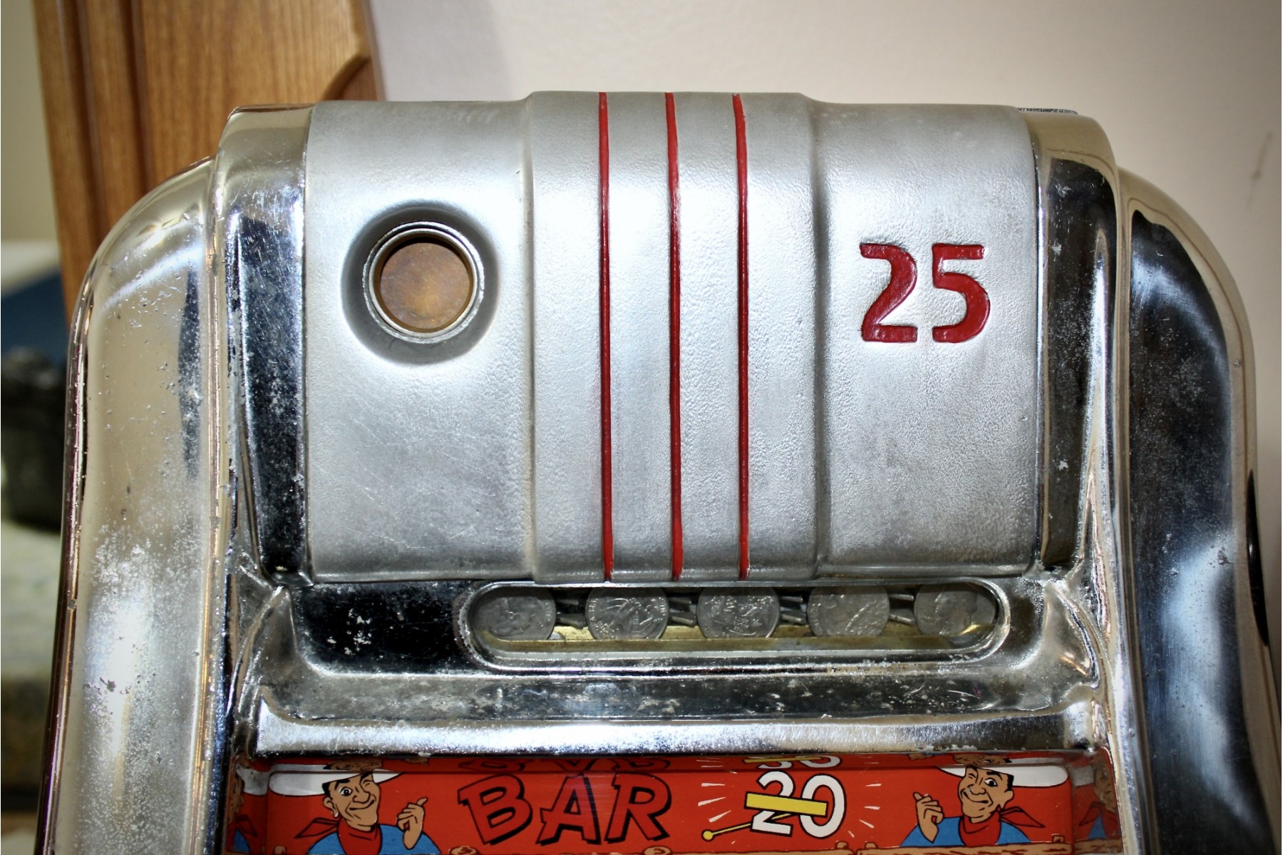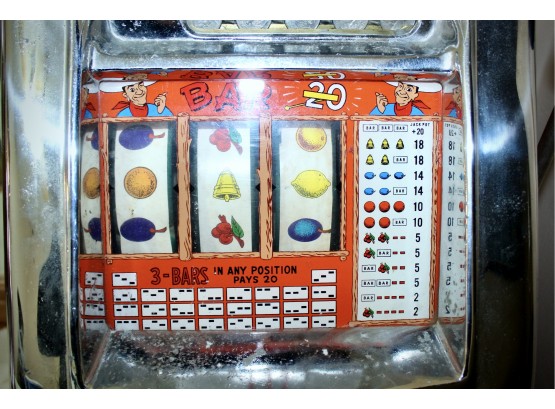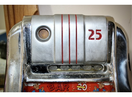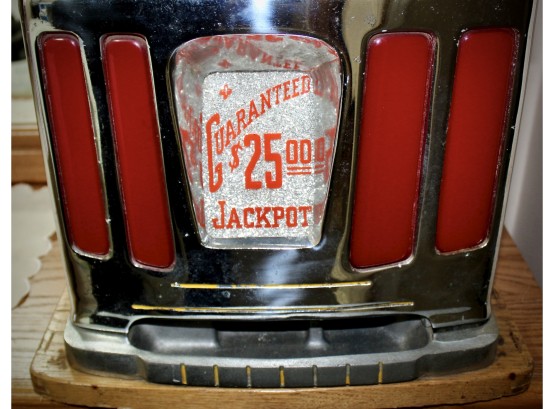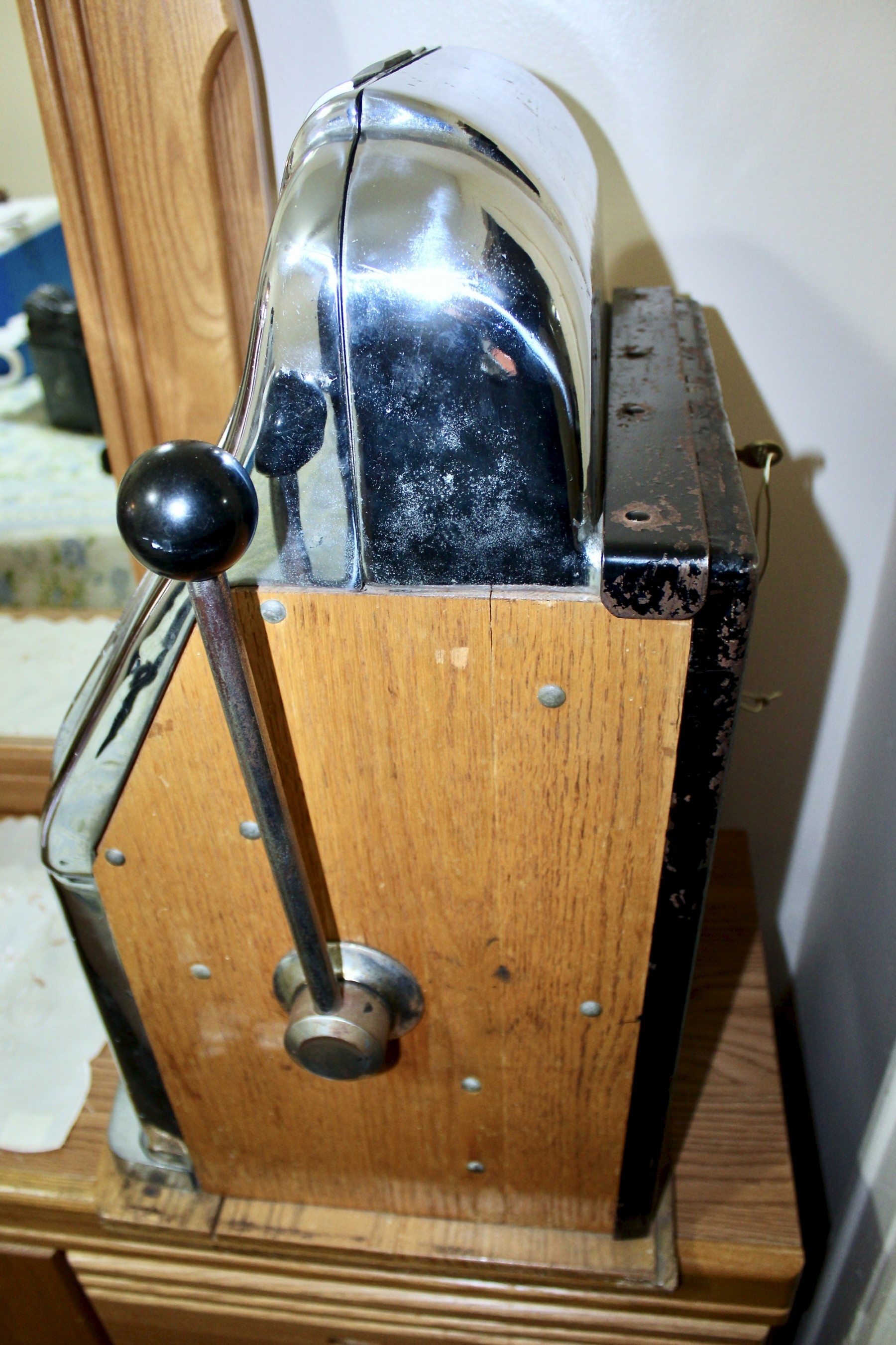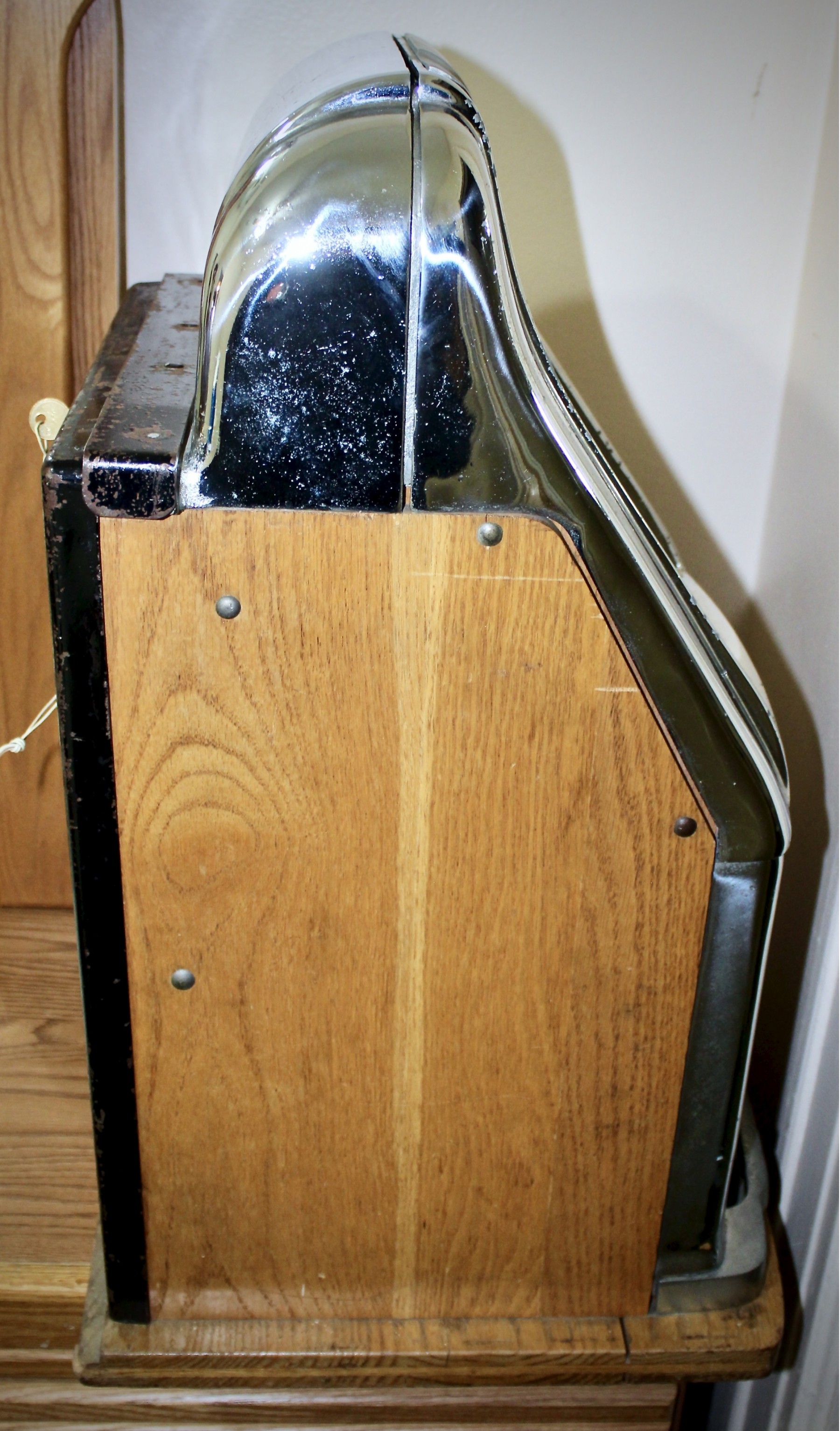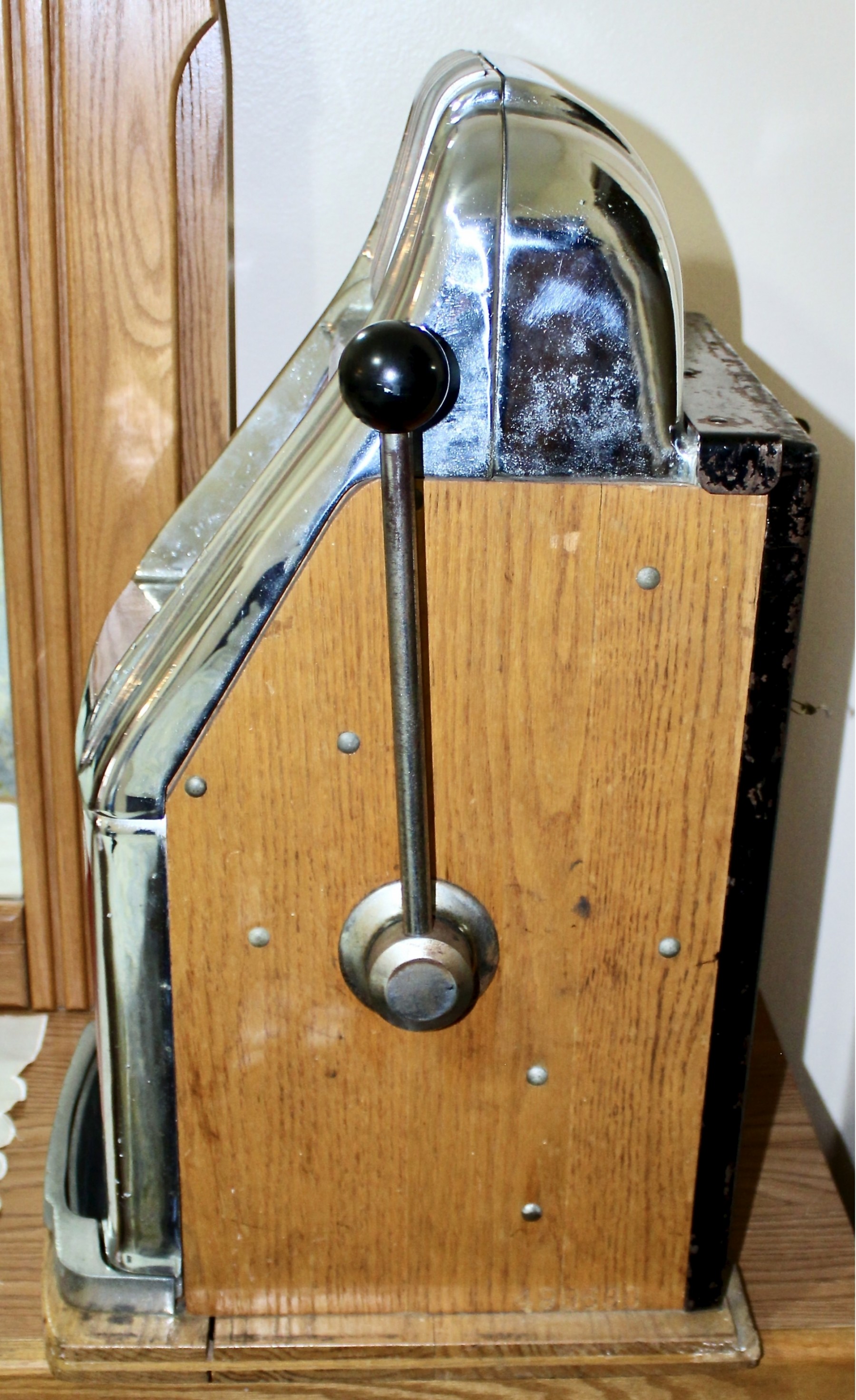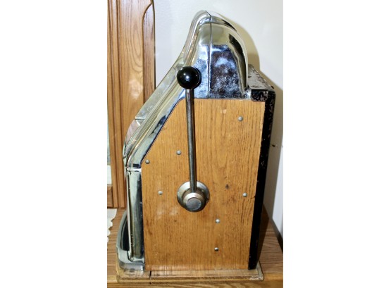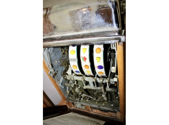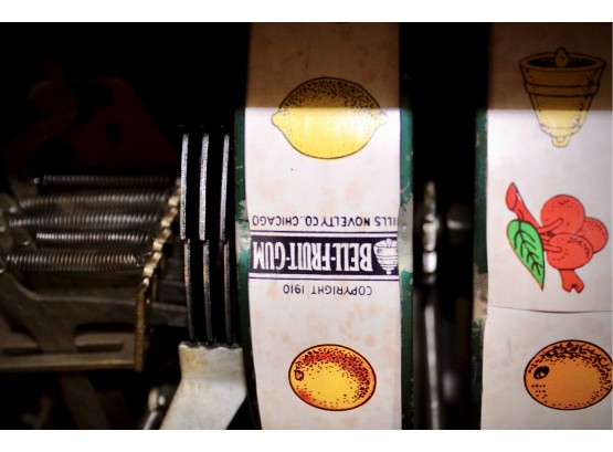 VINTAGE MILLS NOVELTY COMP. 1940s Belle-Fruit-Gum High Top Slot Machine - Chrome Accent - WORKS!! Please note this slot machine is VERY heavy & you must bring someone to help you take it out as staff CANNOT HELP YOU MOVE IT!
