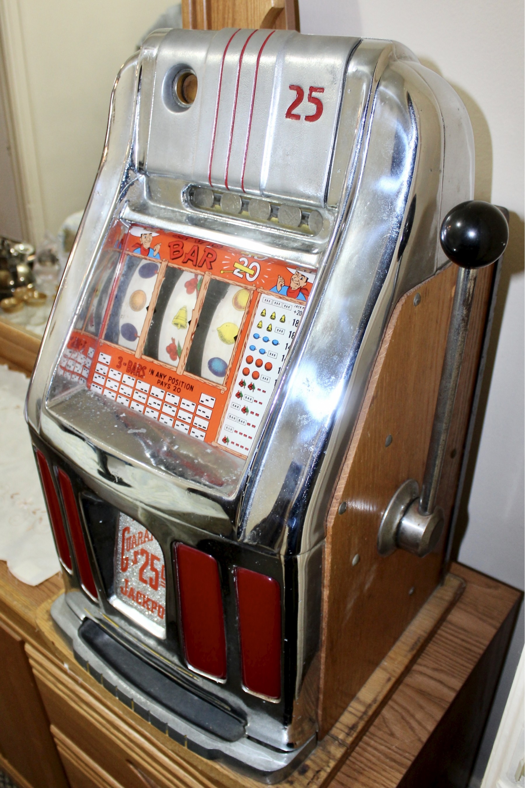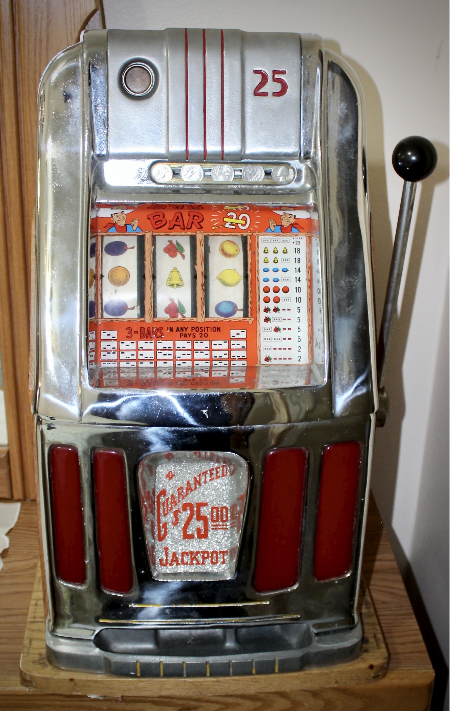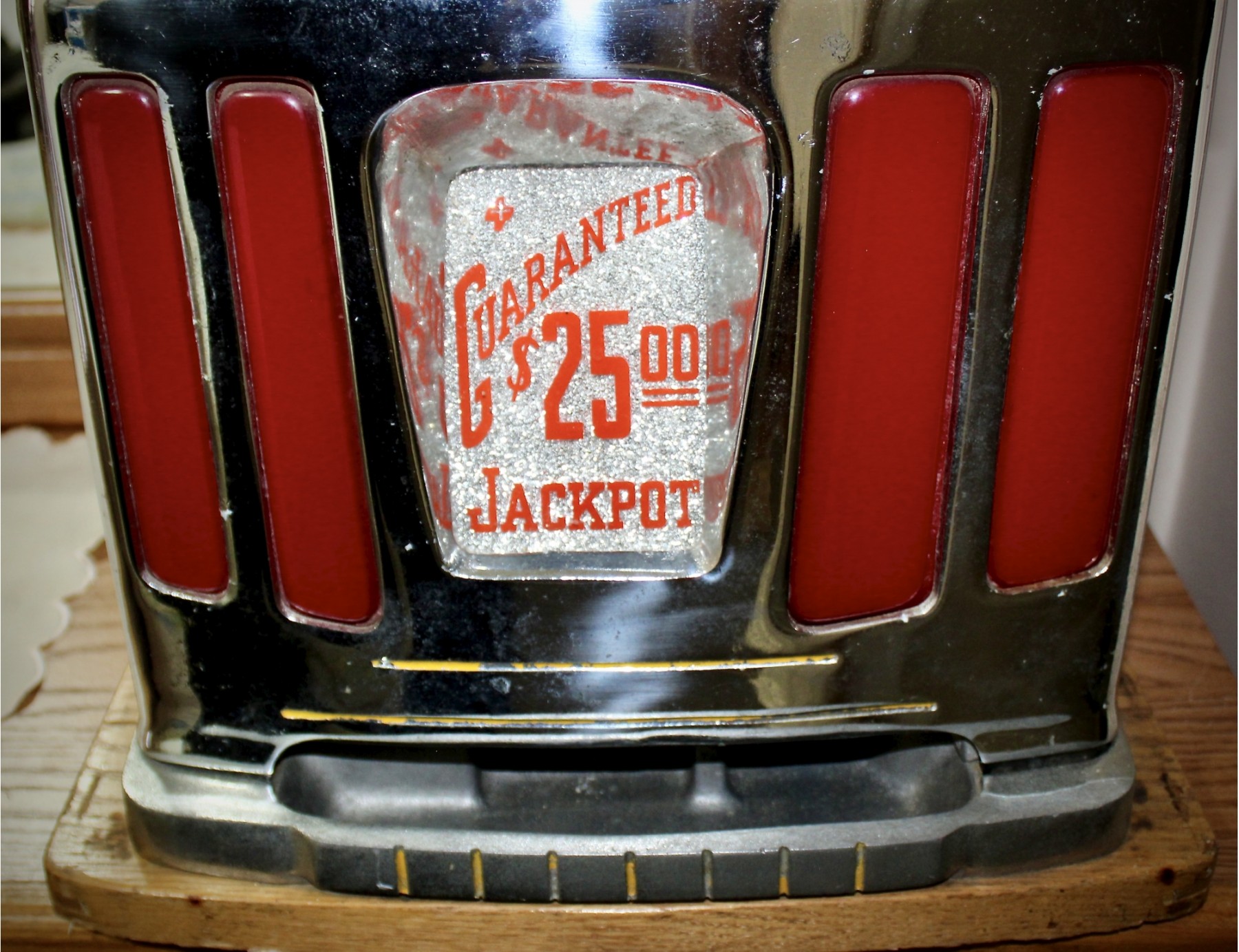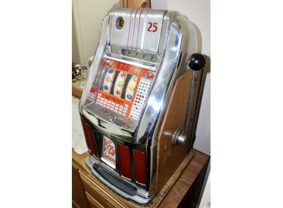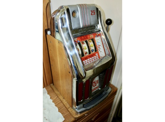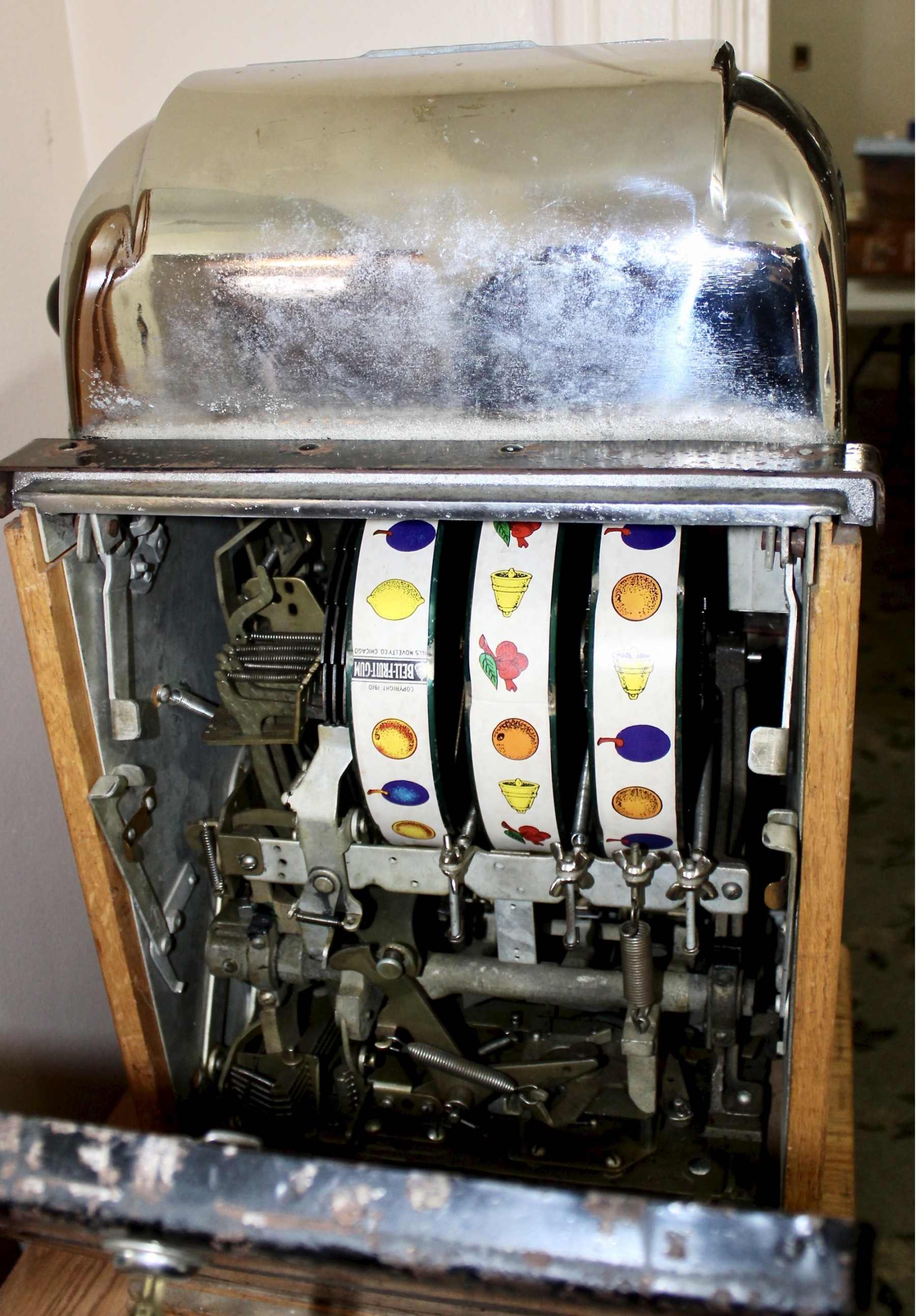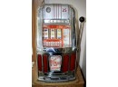 VINTAGE MILLS NOVELTY COMP. 1940s Belle-Fruit-Gum High Top Slot Machine - Chrome Accent - WORKS!! Please note this slot machine is VERY heavy & you must bring someone to help you take it out as staff CANNOT HELP YOU MOVE IT!