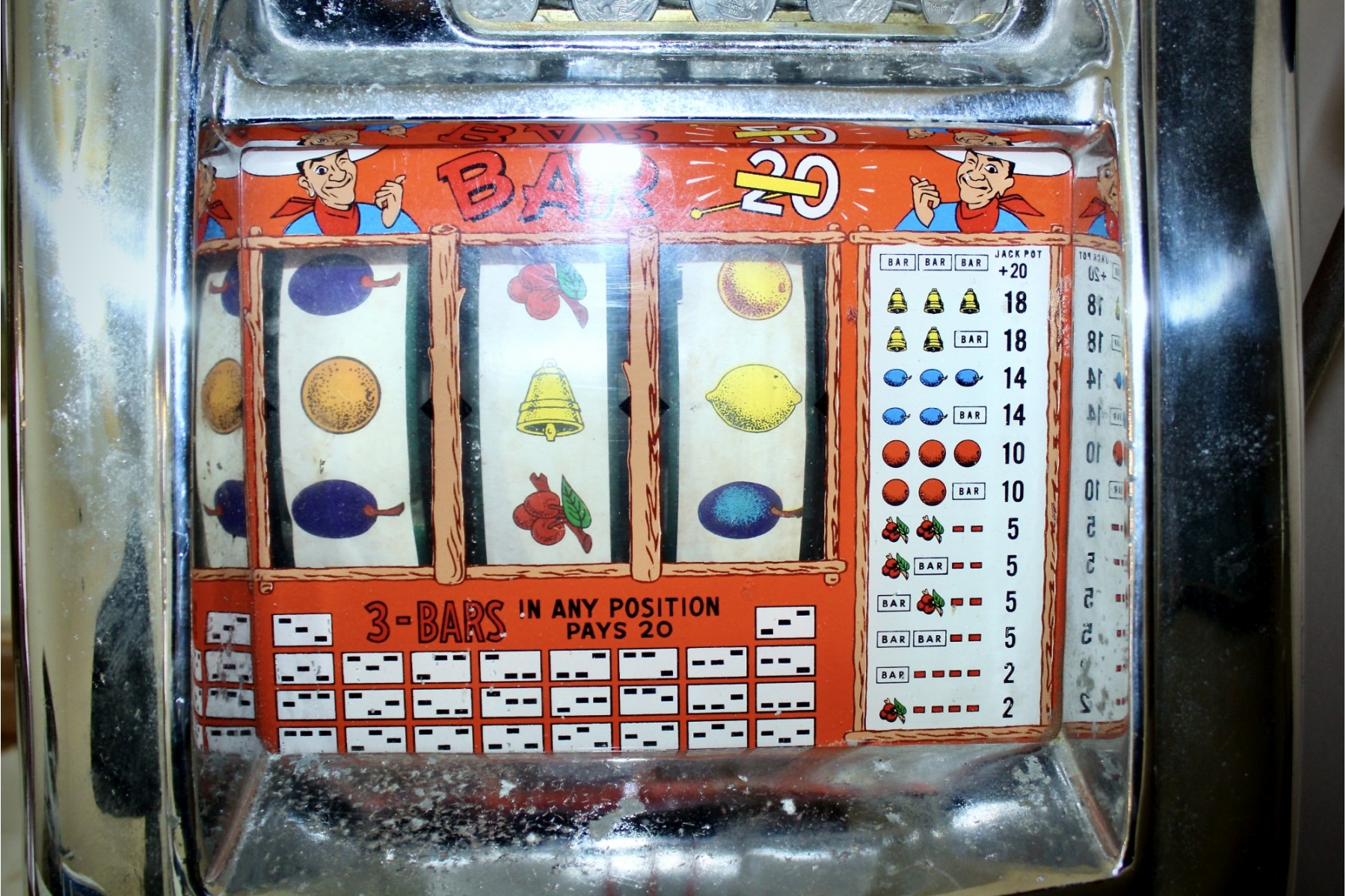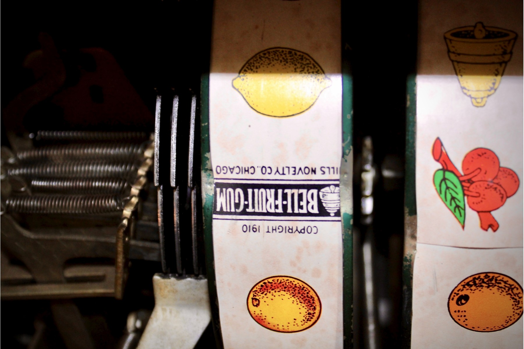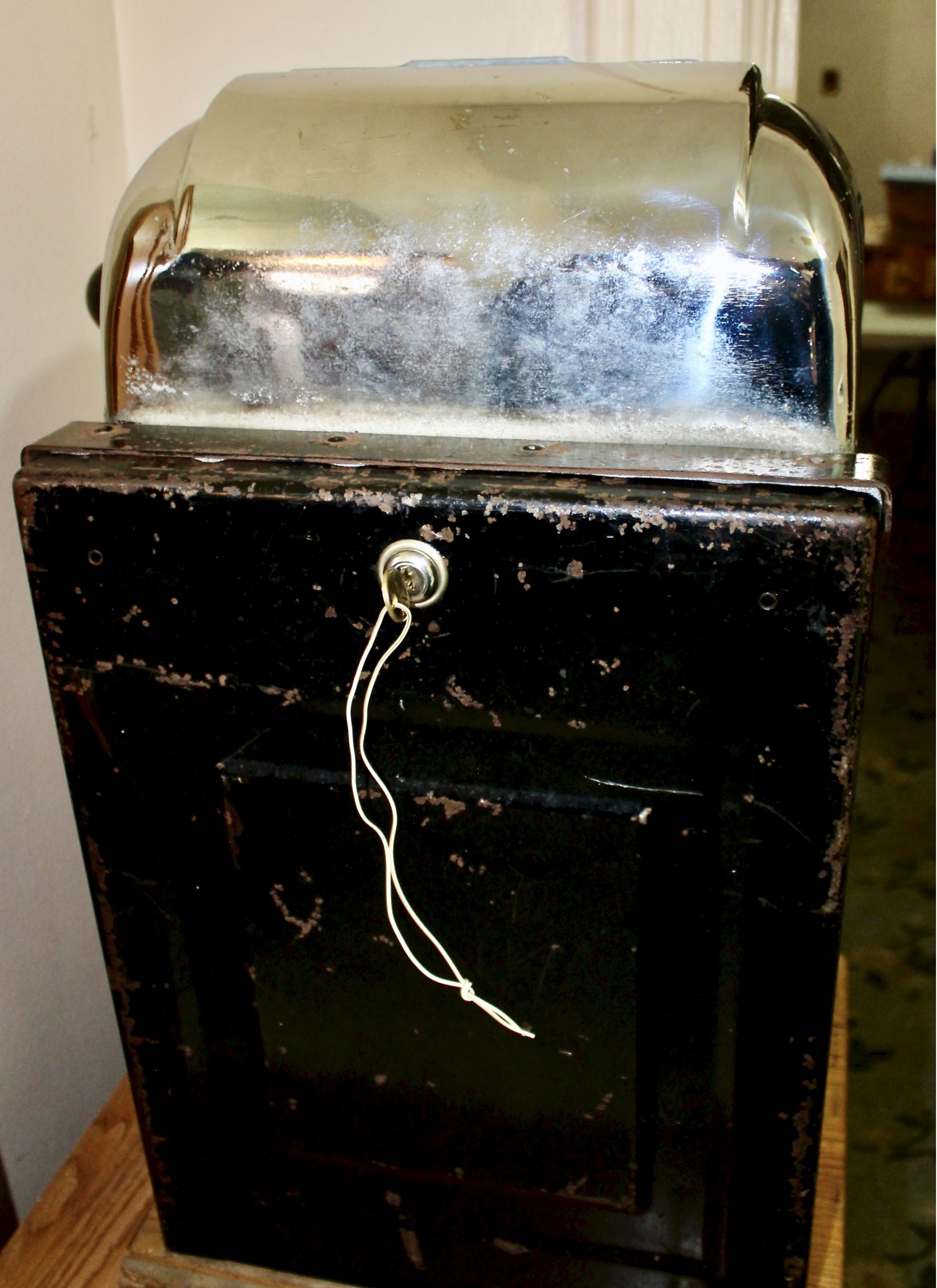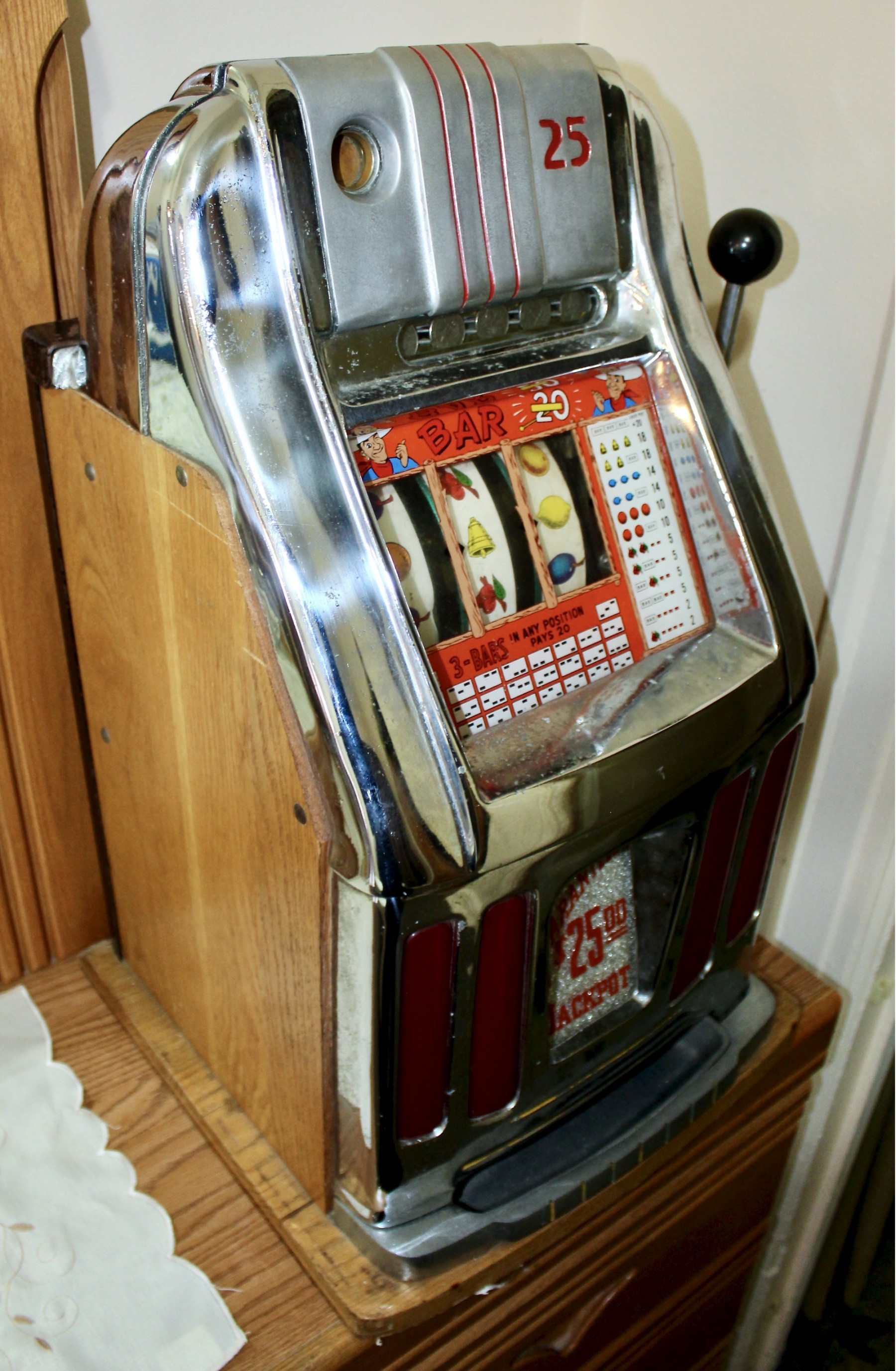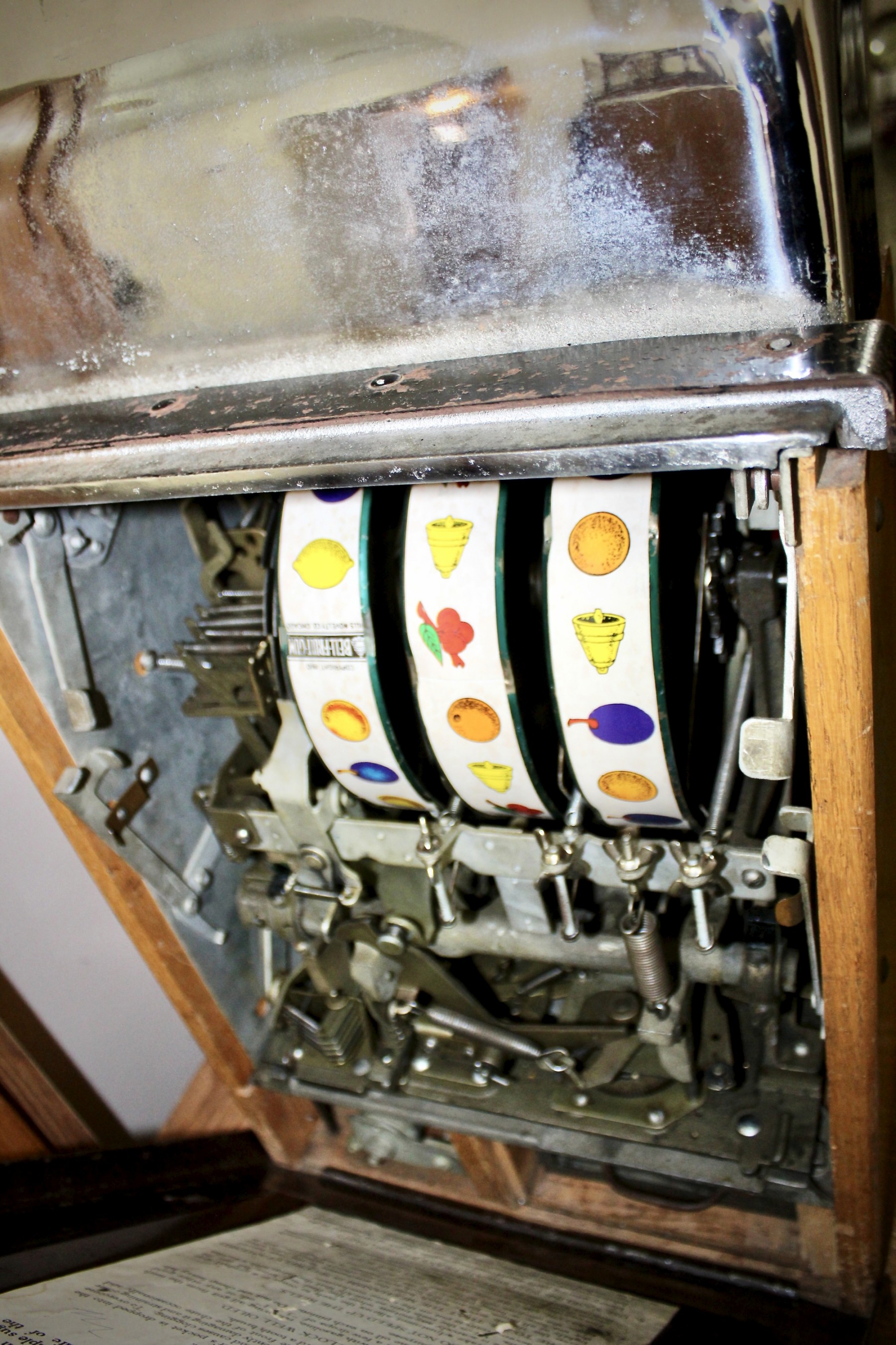 VINTAGE MILLS NOVELTY COMP. 1940s Belle-Fruit-Gum High Top Slot Machine - Chrome Accent - WORKS!! Please note this slot machine is VERY heavy & you must bring someone to help you take it out as staff CANNOT HELP YOU MOVE IT!