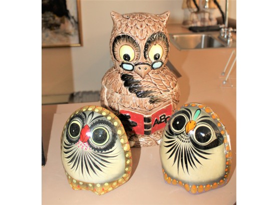 Condition: OK to Good Condition; Owl Cookie jar has some damage & cracks; Please see pictures