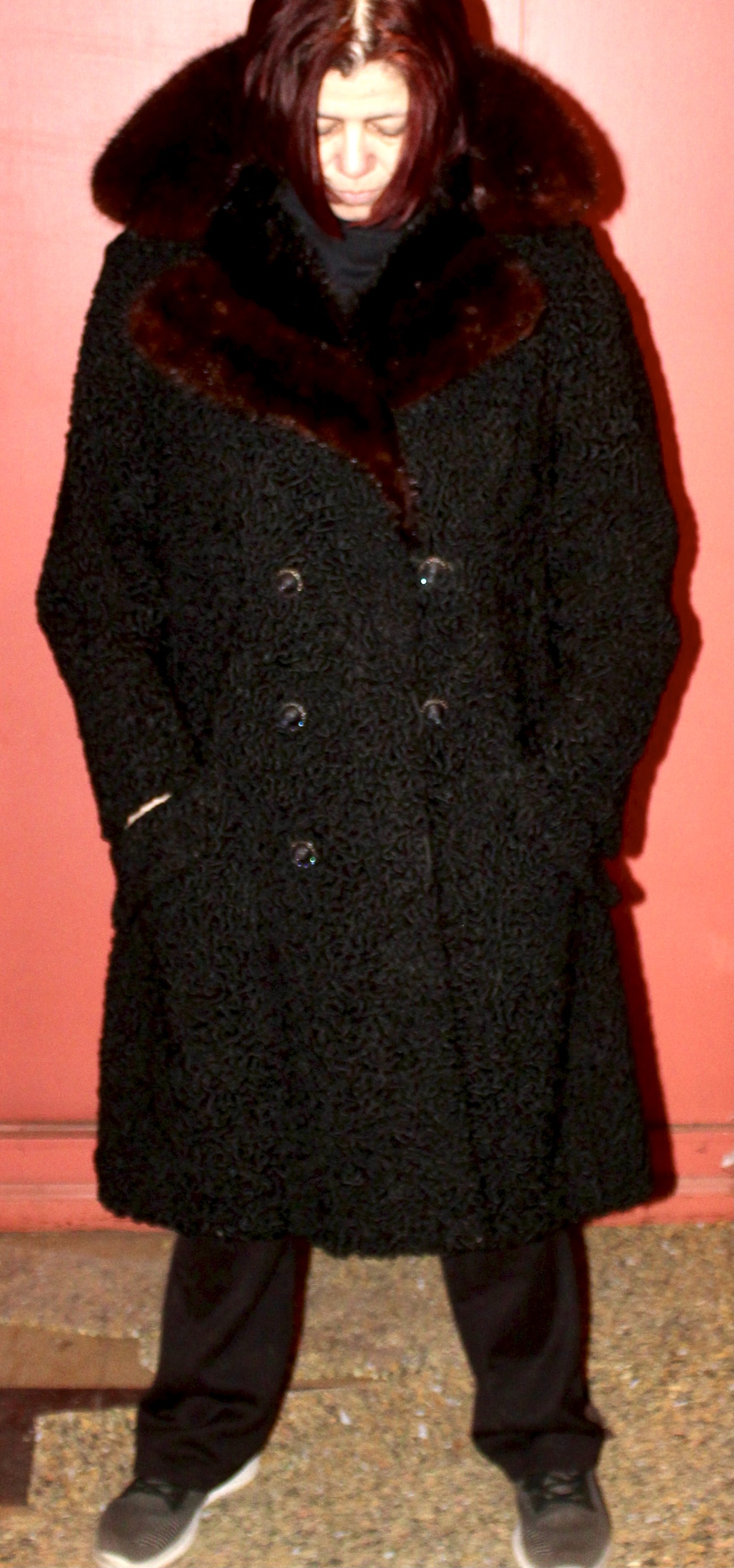 VINTAGE PERSIAN LAMB COAT - STORFER BROS. - MINK COLLAR - BLACK - MADE IN USA - UNIQUE LINING!! Gorgeous lamb coat with an amazing multicolor silky inside linding, a high mink collar and awesome texture. Made in Flushing, NY. Monogrammed "Arlene".