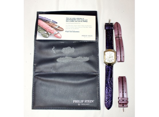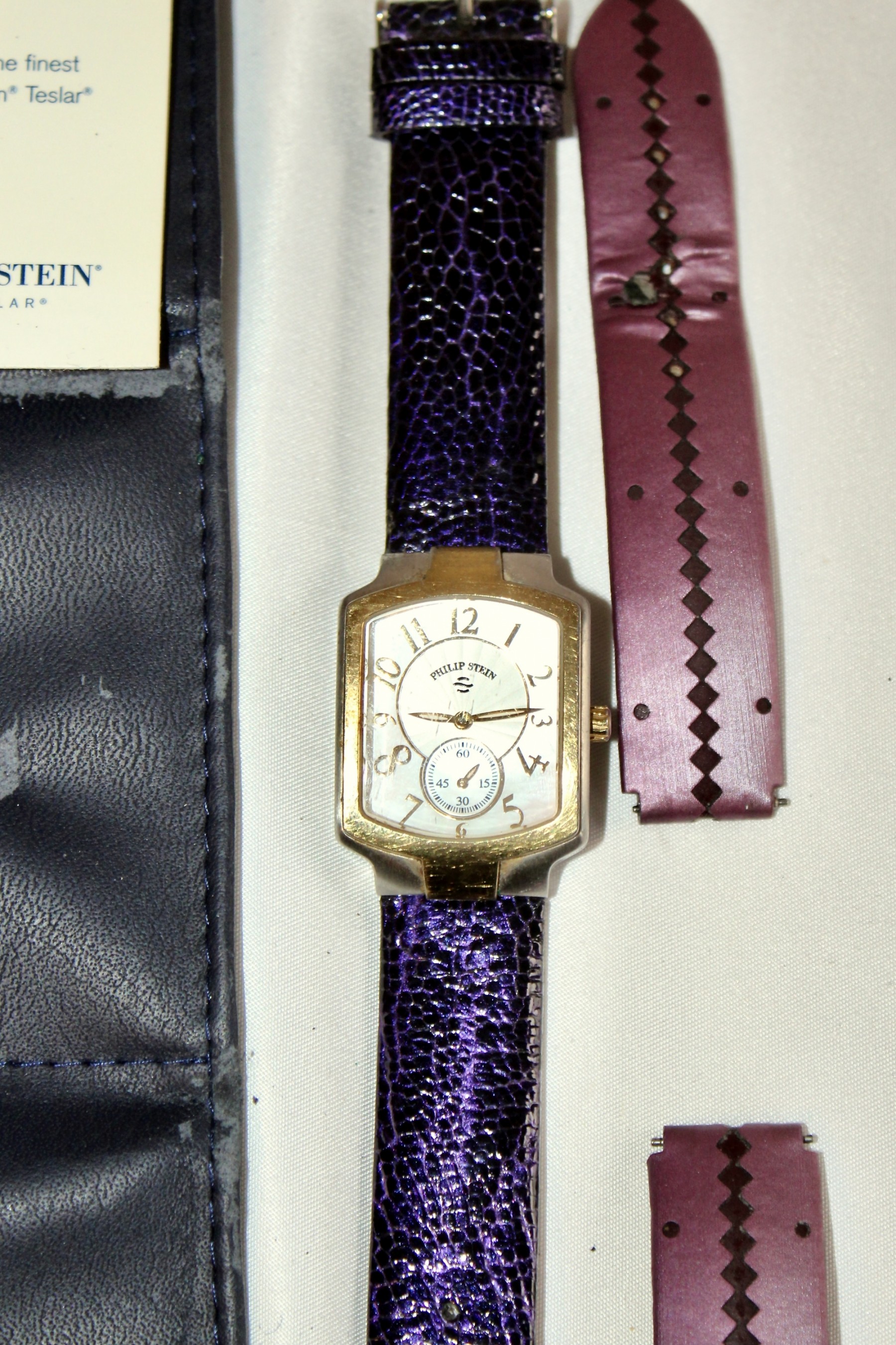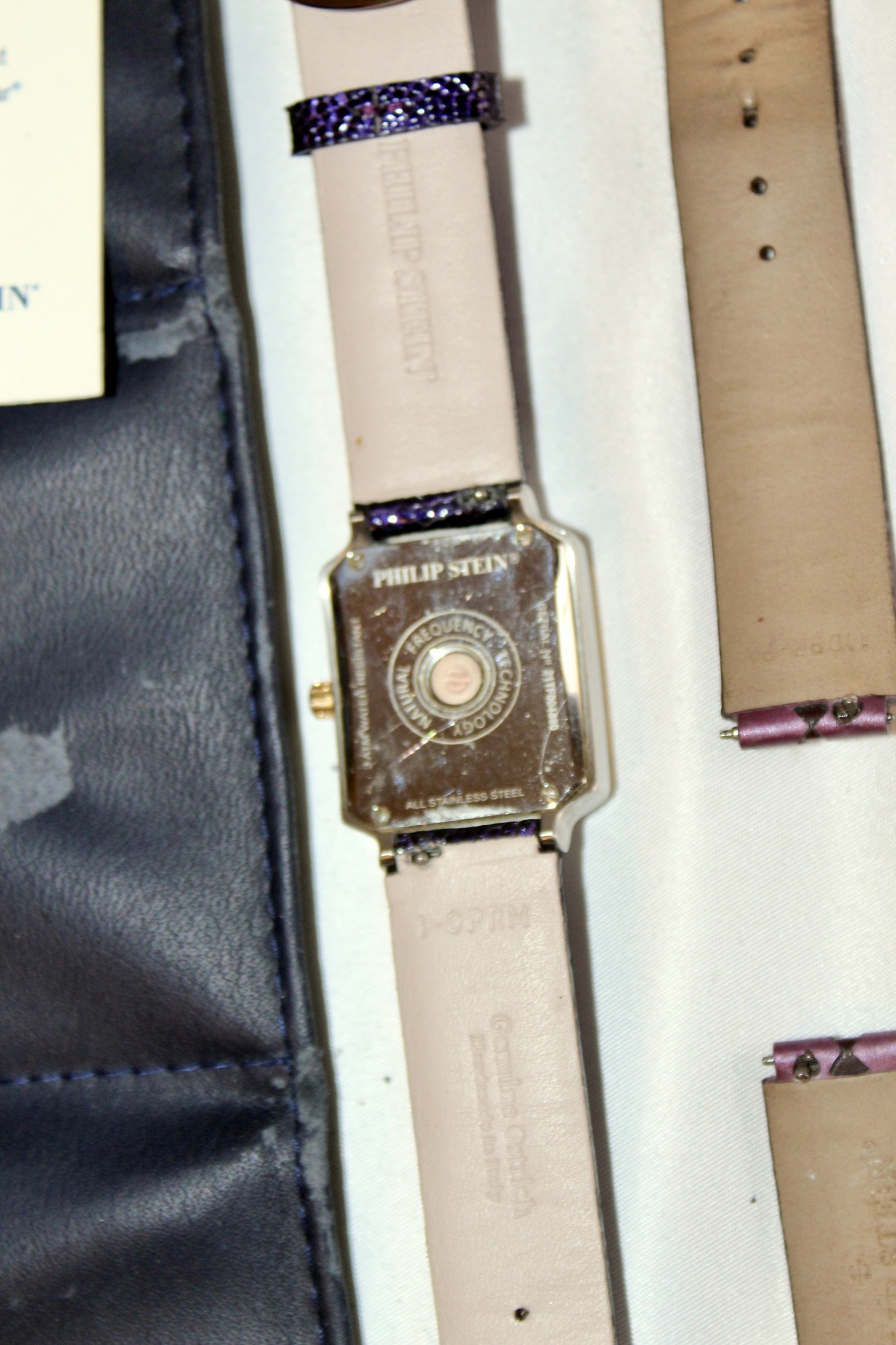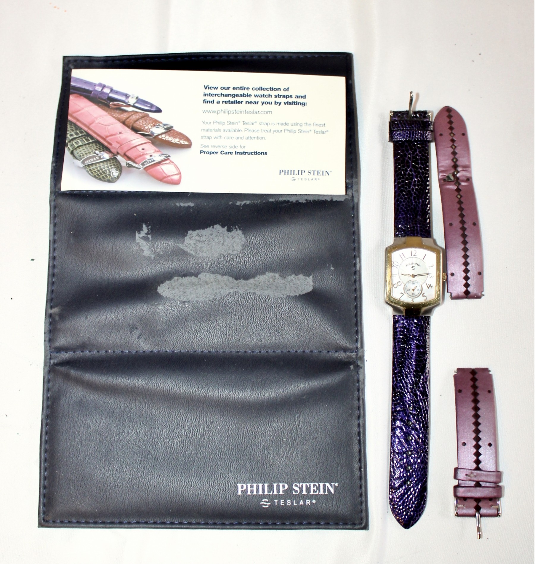 VINTAGE PHILIP STEIN TESLAR Ladies Watch - Case & Extra Band!Please note watch is untested & we are unsure if in working condition.