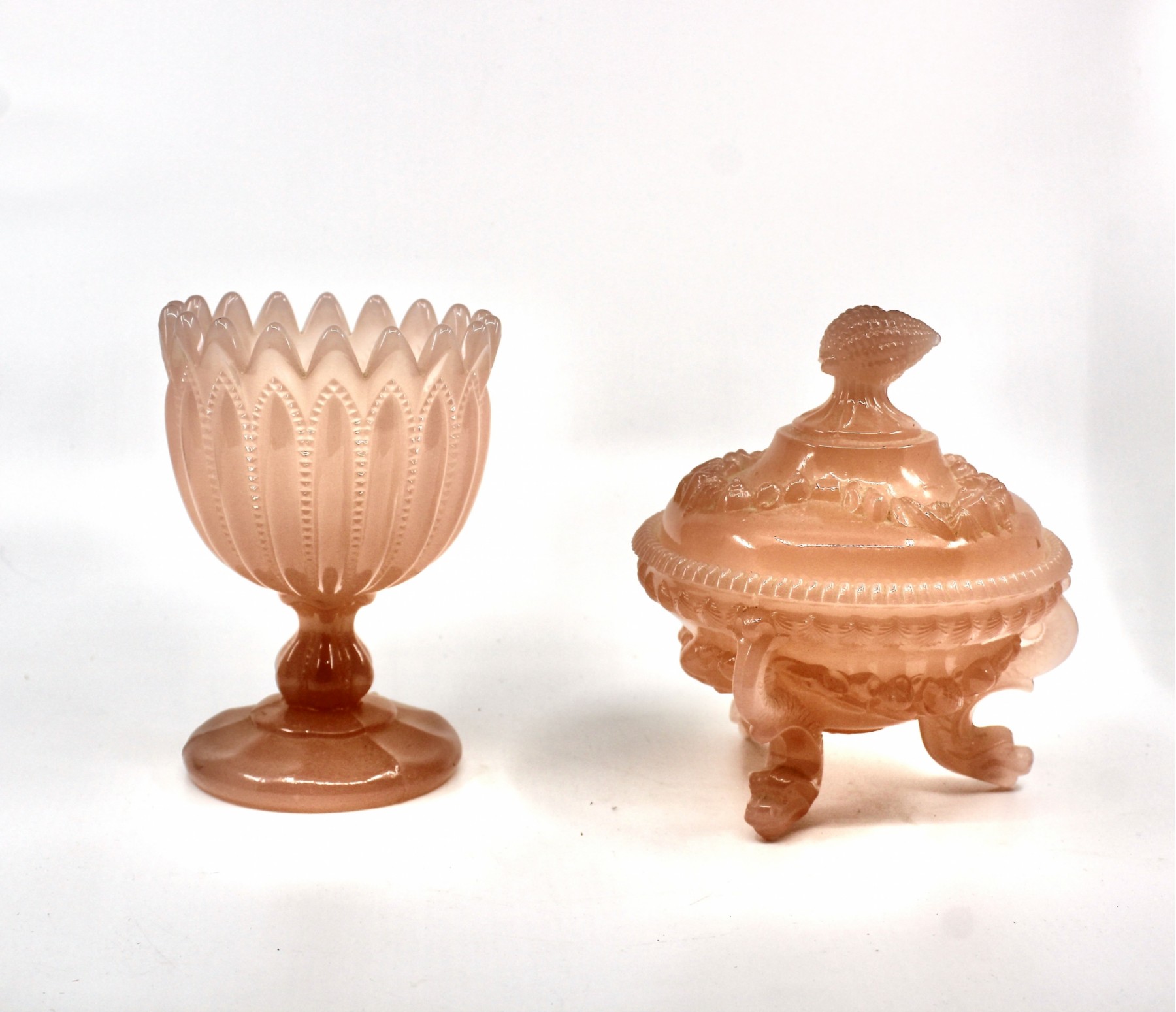 VINTAGE Pink Glass Cup & Candy Dish - Lot Of 2 - AMAZING RARE DESIGN!!