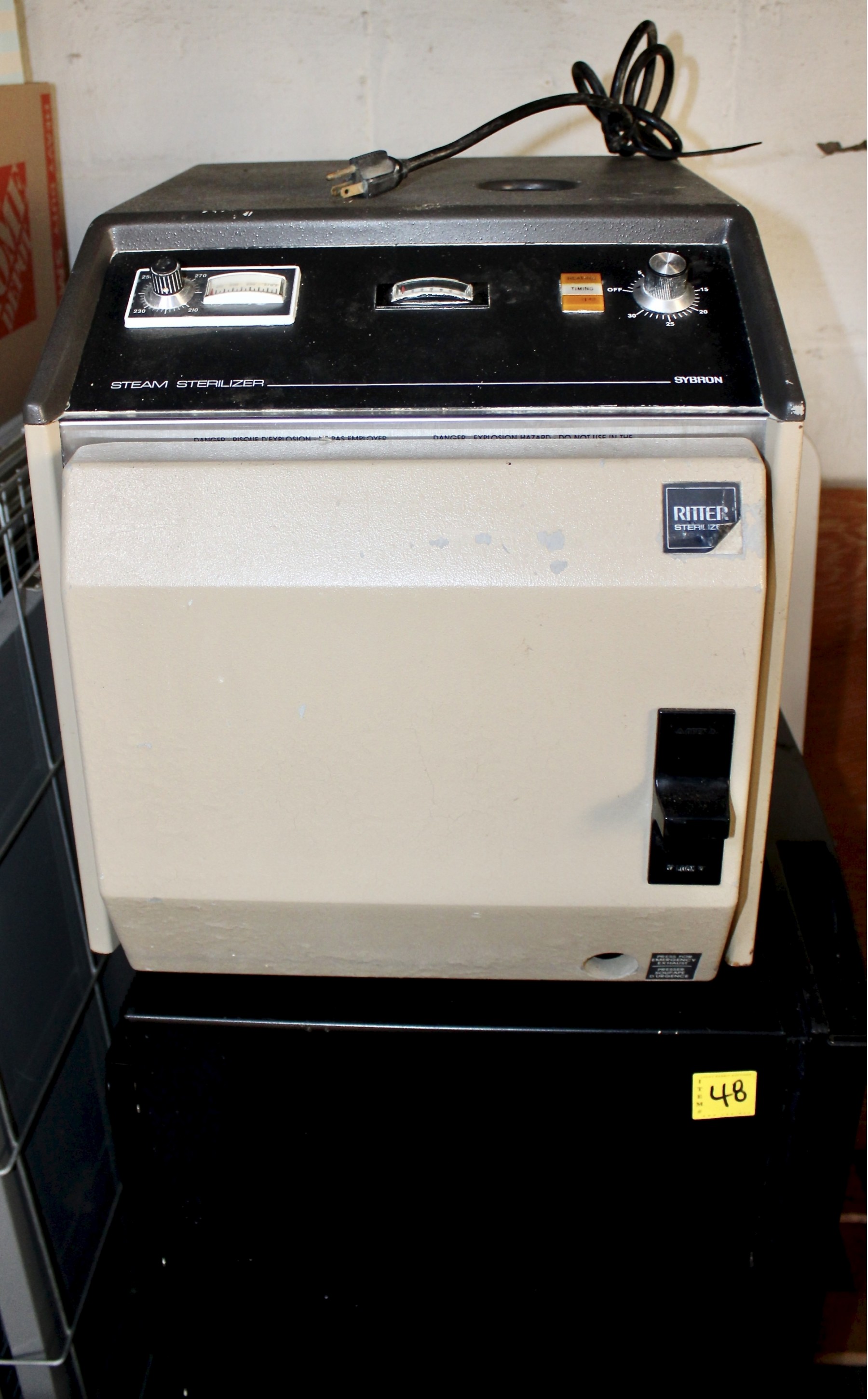 Vintage RITTER SYBRON 1000 Steam Sterilizer - Original Manual Included - POWERS ON!! Serial # 630588-6. Please note the sterilizer powers on but unsure if it actually works. Also sterilzer is very heavy.