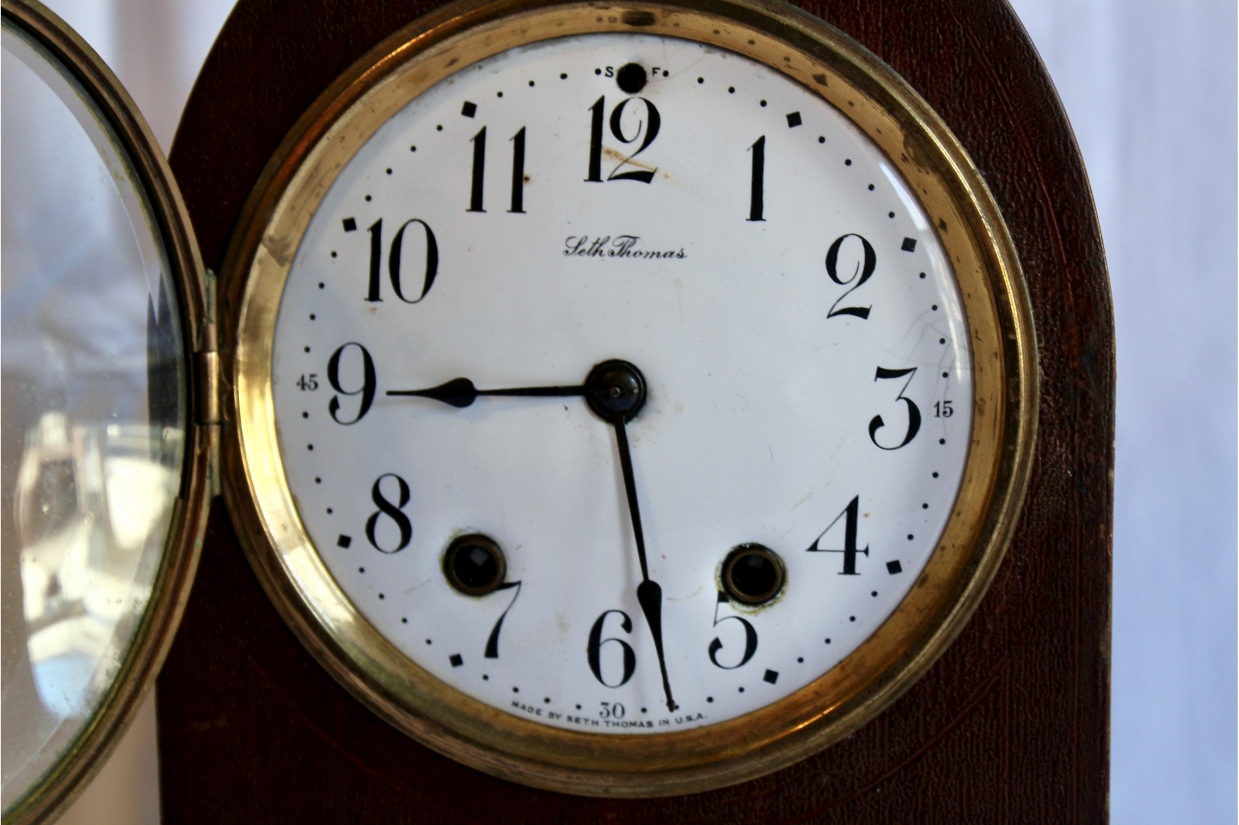 VINTAGE SETH THOMAS WOOD MANTLE CLOCK - Model #21556A! Please note the clock needs to be repaired and the key is not included. Please see pictures.
