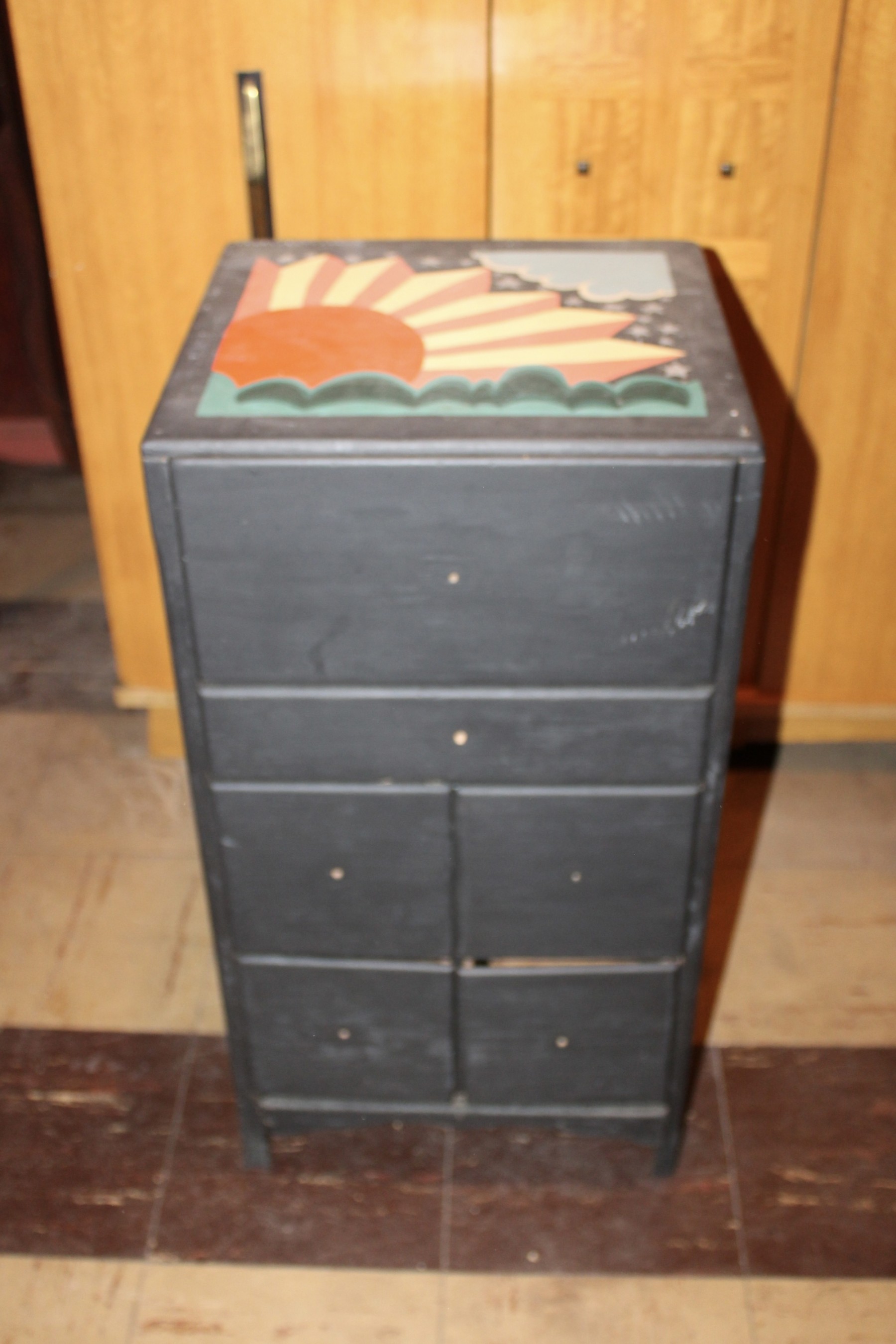 VINTAGE SMALL DRESSER - 6 DRAWERS - UNIQUE HAND PAINTED SUN PAINTING!!