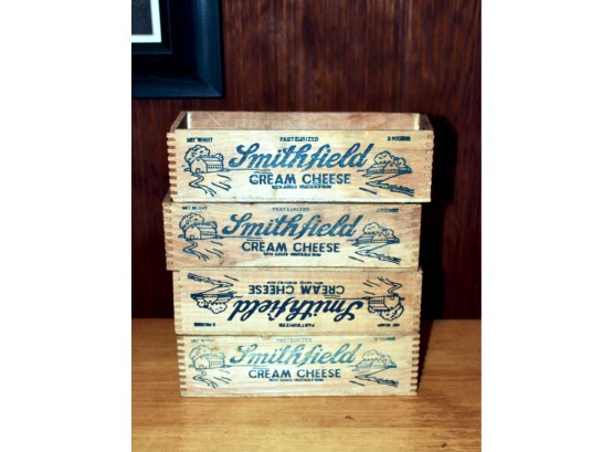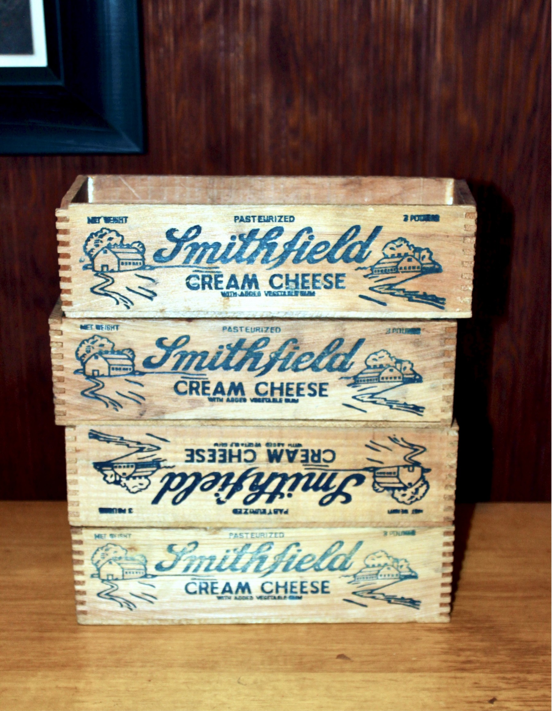 VINTAGE SMITHFIELD CREAM CHEESE BOX CRATES - LOT OF 4!!