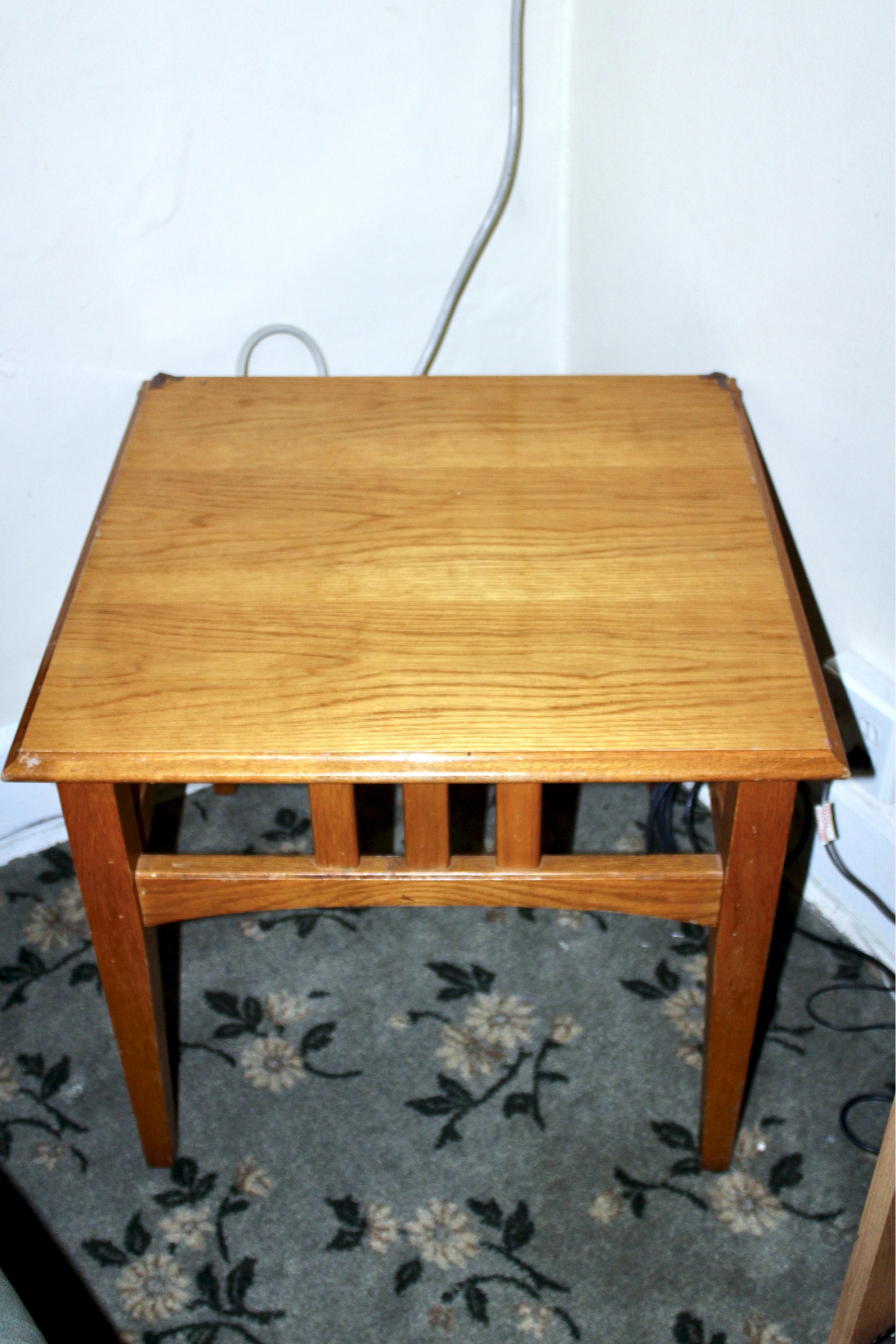 VINTAGE Wood End Table - GREAT SPACE SAVER! Please note there is some damage on the corner of the table, please see pictures. There are natural scratches on table due to years of use.