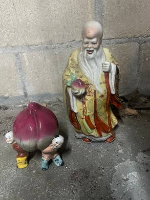 Vintage Chinese Shou God Of Longevity Porcelain Ceramic Statue