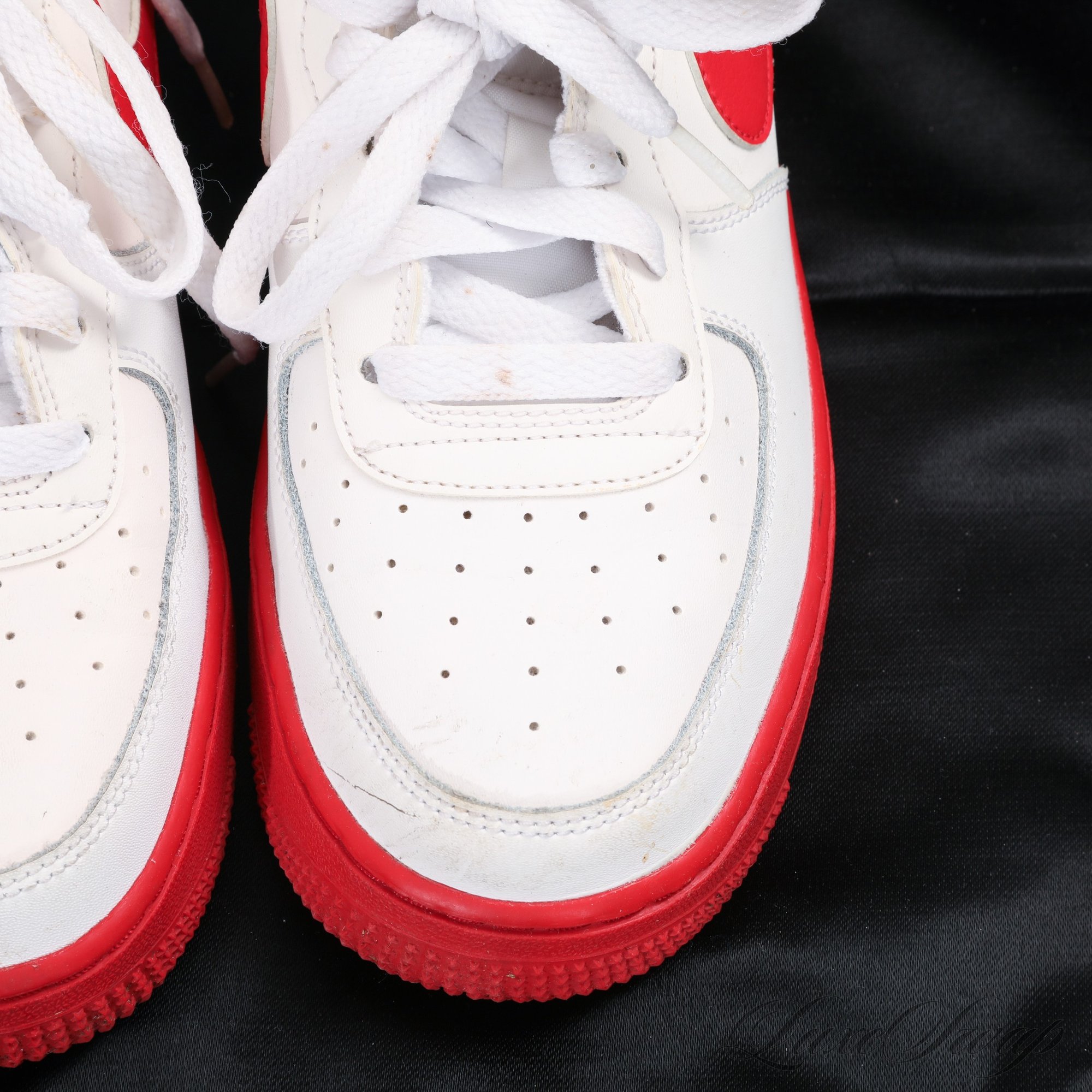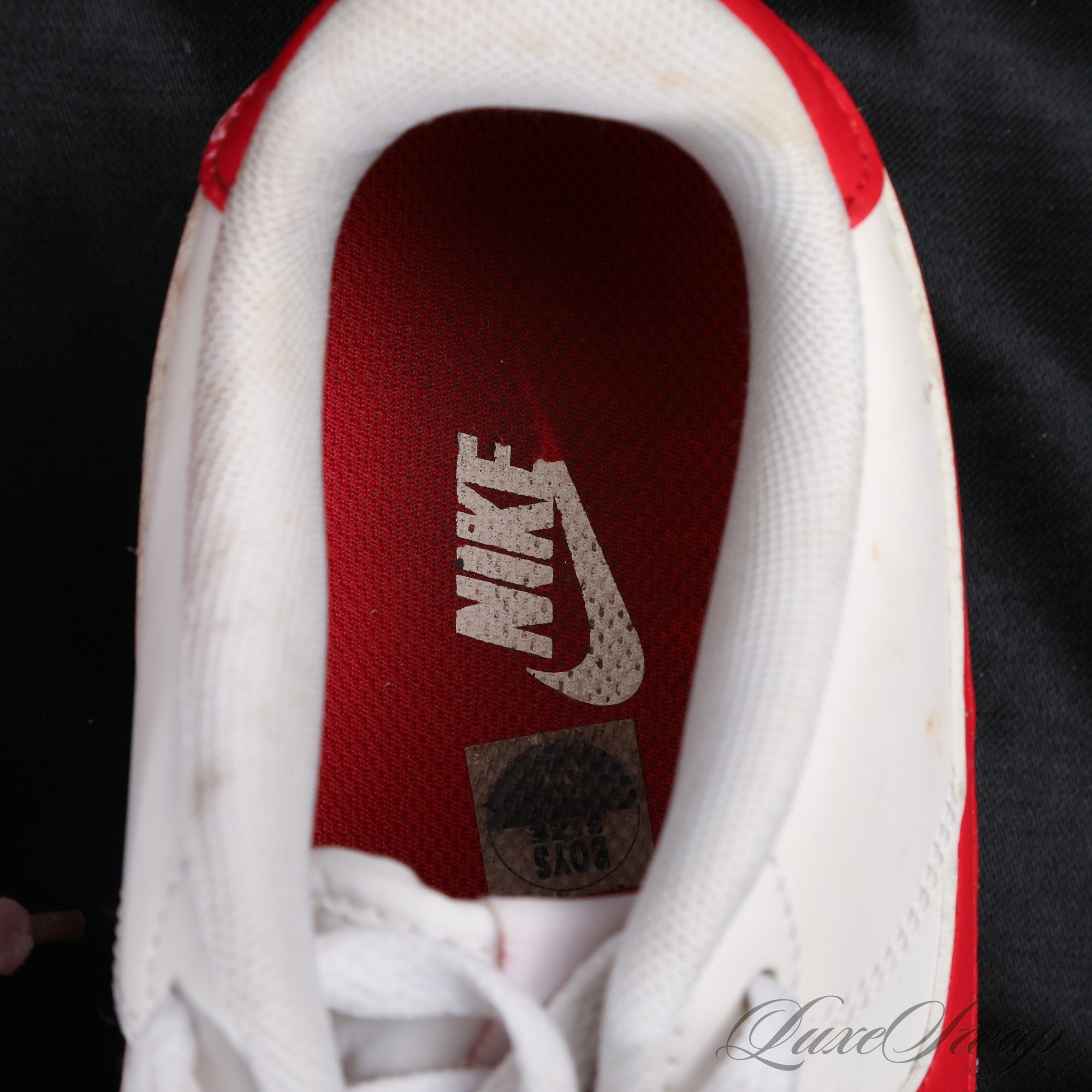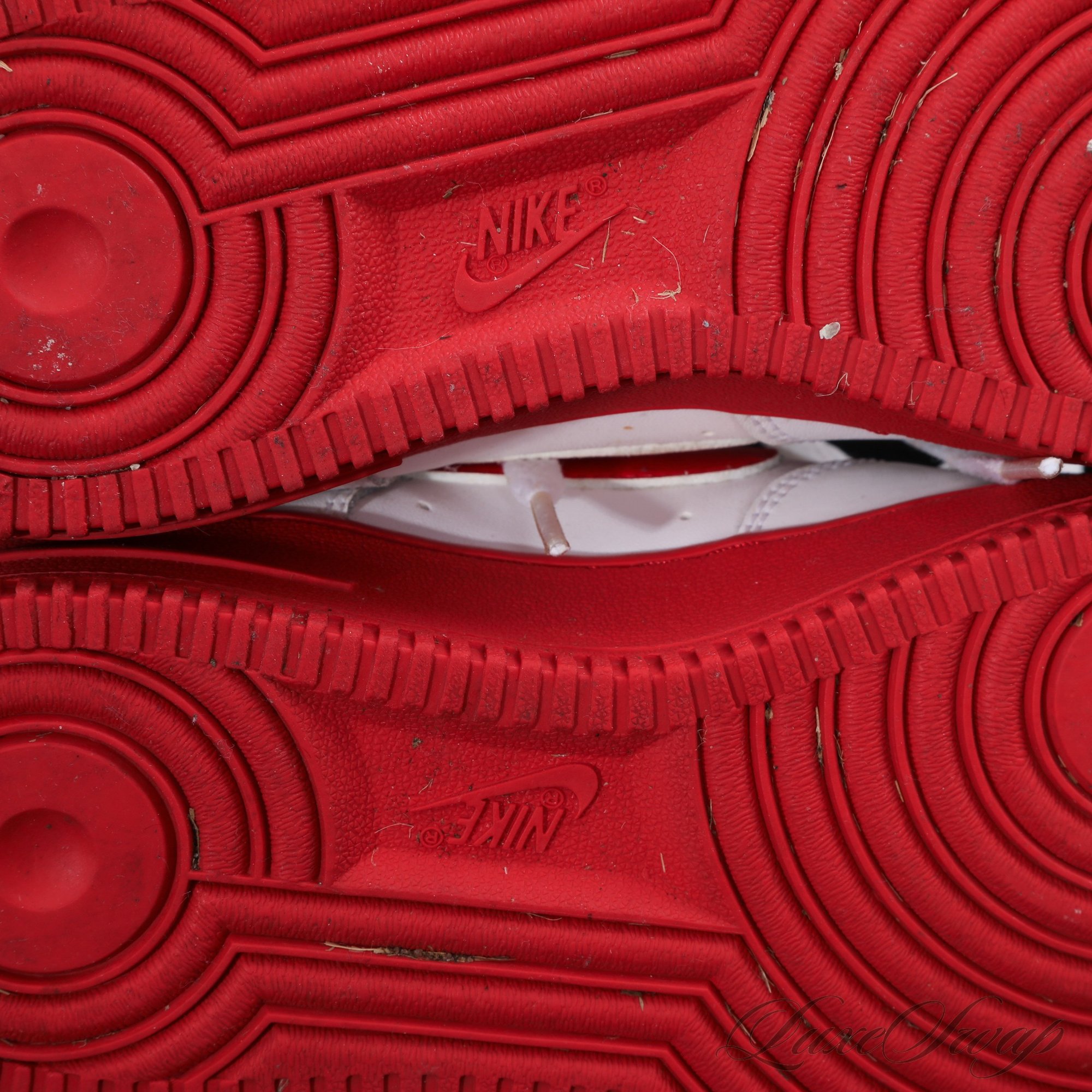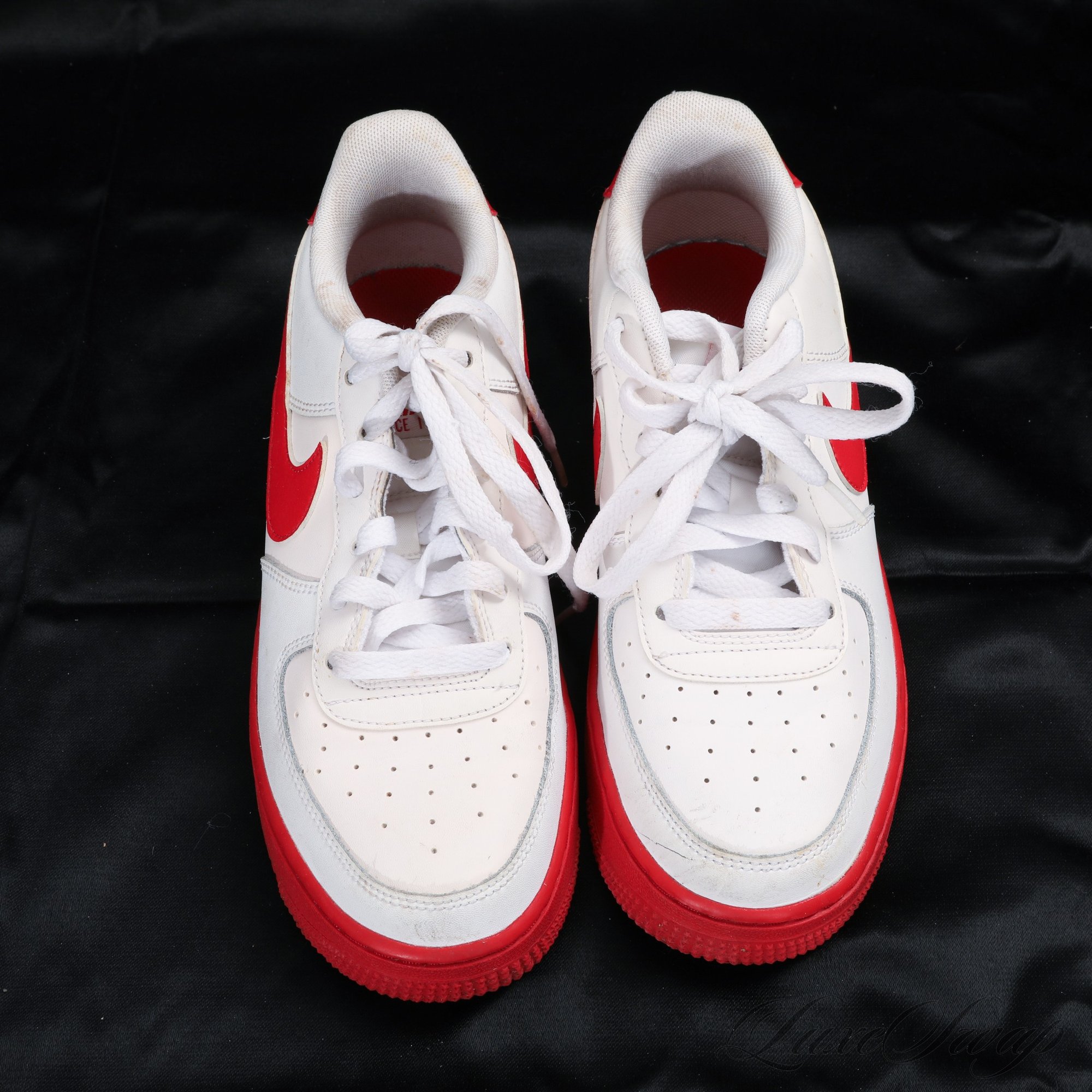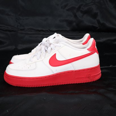#24 NICE VARIANT! FANTASTIC CONDITION NIKE AIR FORCE ONE LOW WHITE AND RED SNEAKERS 6Y