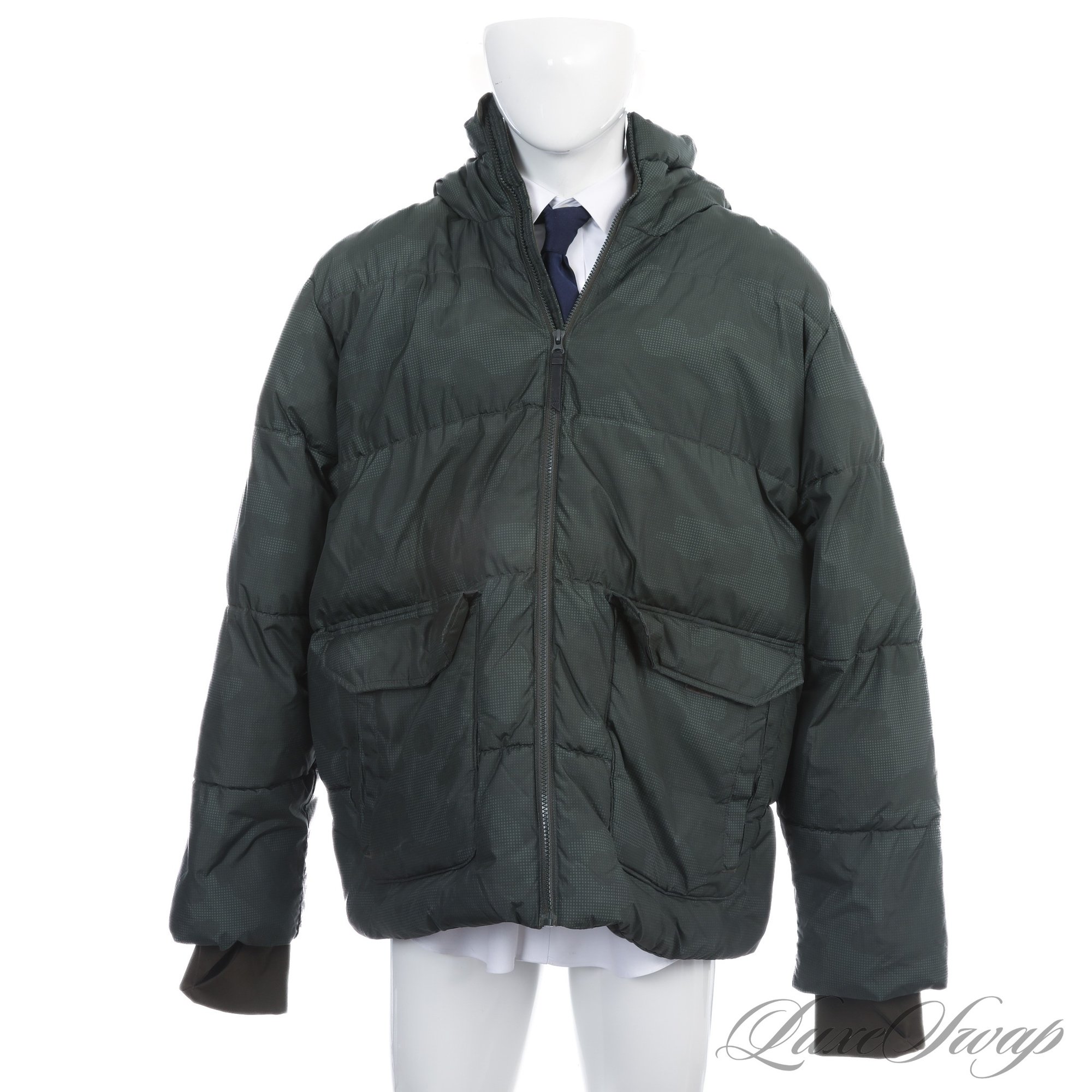 NEAR MINT AND SUPER WARM RECENT ALL IN MOTION JUNGLE GREEN MICRO SPOTTED QUILTED PUFFER PARKA COAT MENS XXL