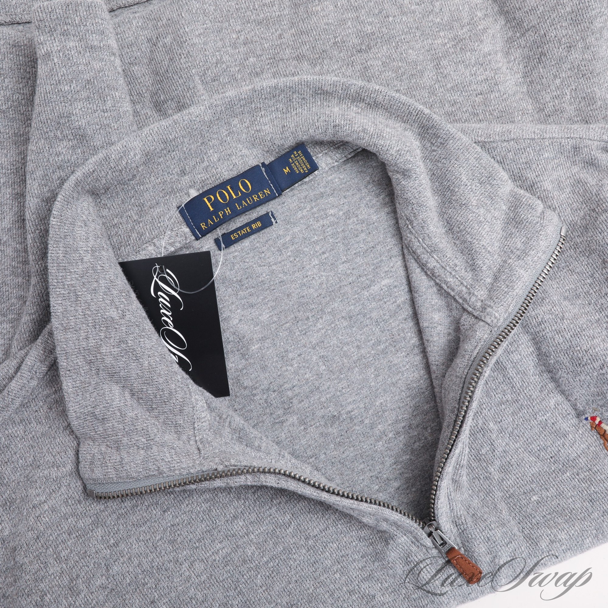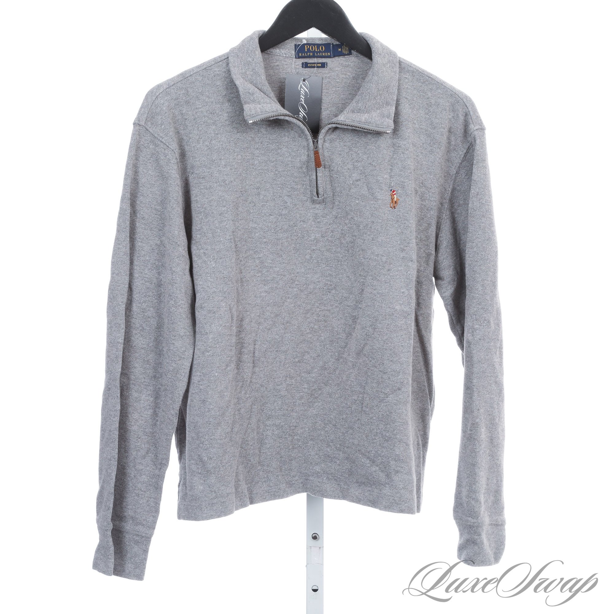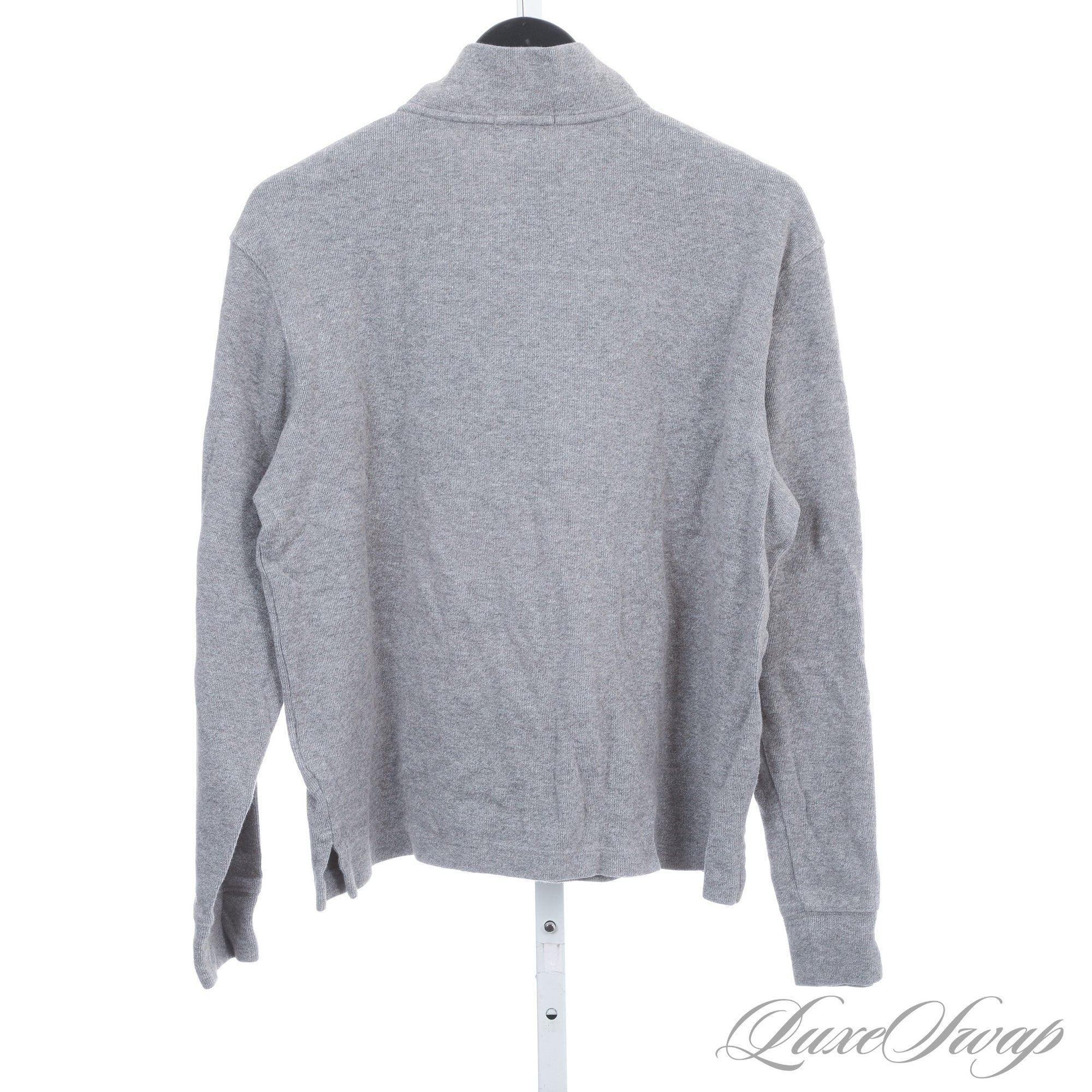 SPRING ESSENTIAL! MENS POLO RALPH LAUREN HEATHER GREY SOFT BRUSHED RIBBED QUARTERZIP PULLOVER M