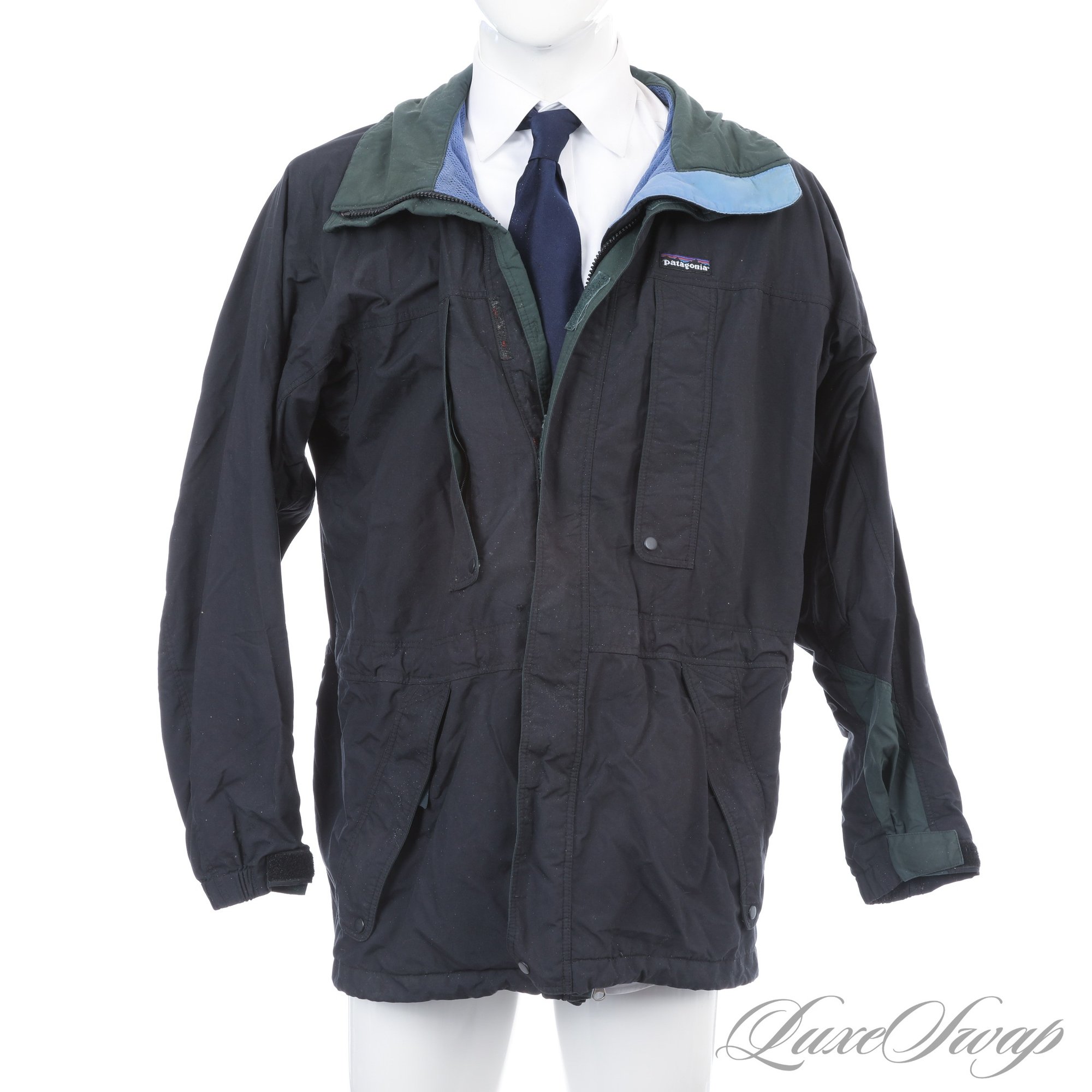 SPRING SHOWERS READY! MENS PATAGONIA NAVY BLUE MESH LINED MID-SEASON ZIP JACKET COAT L
