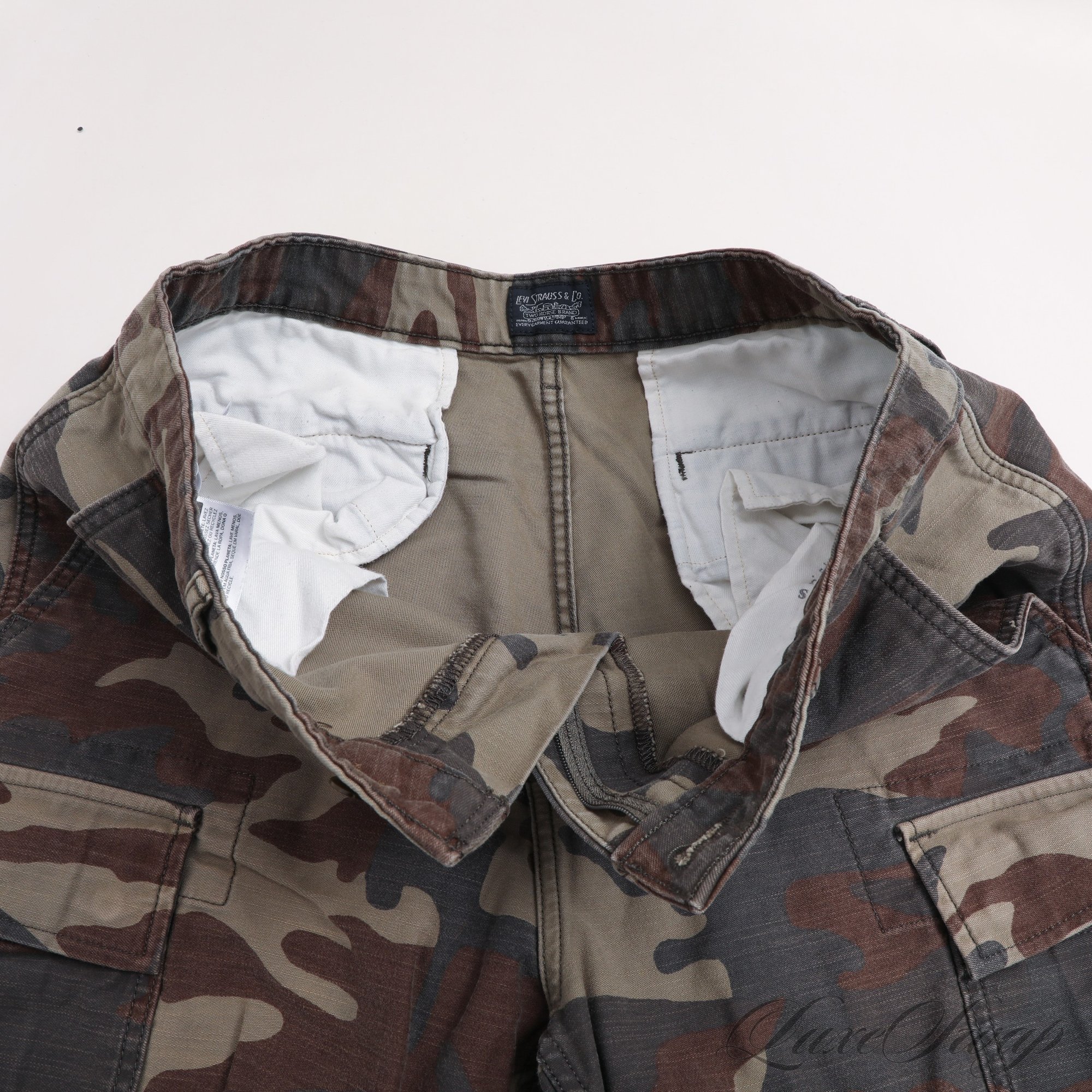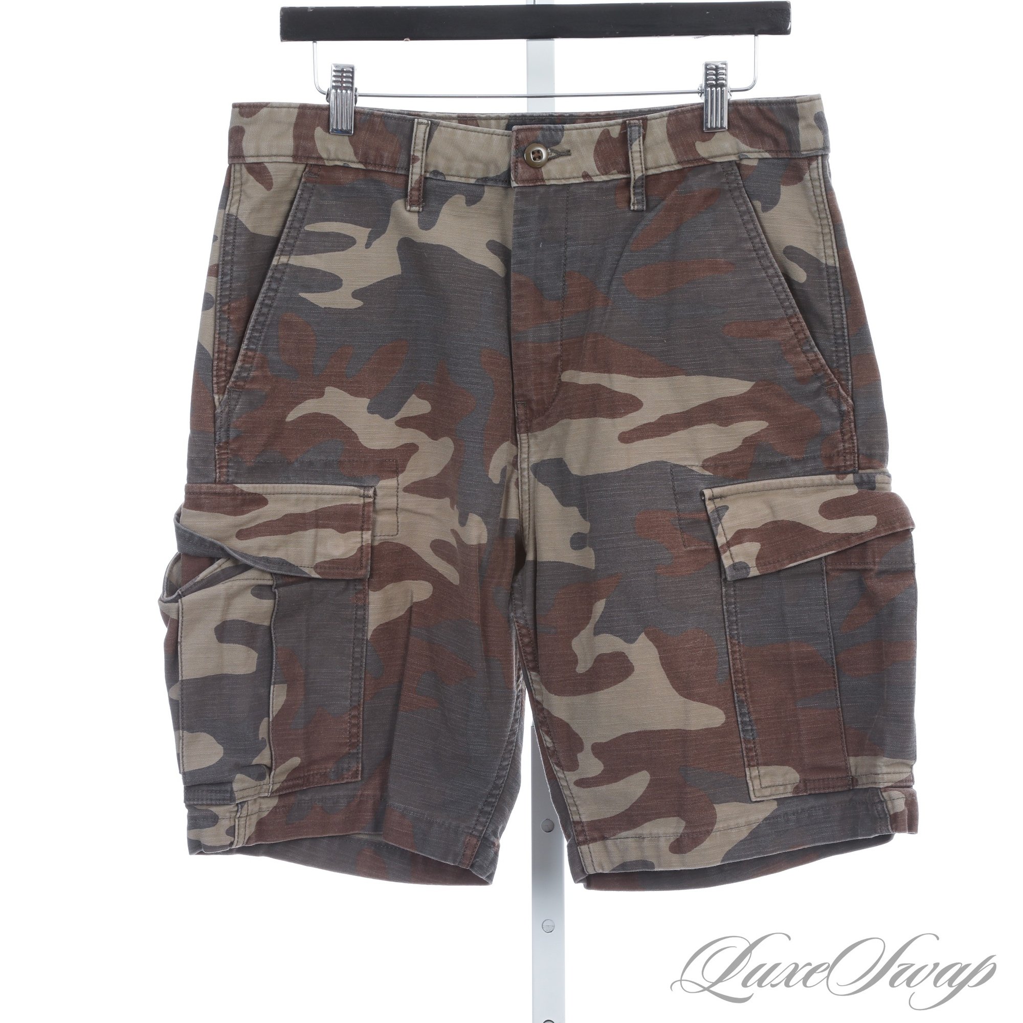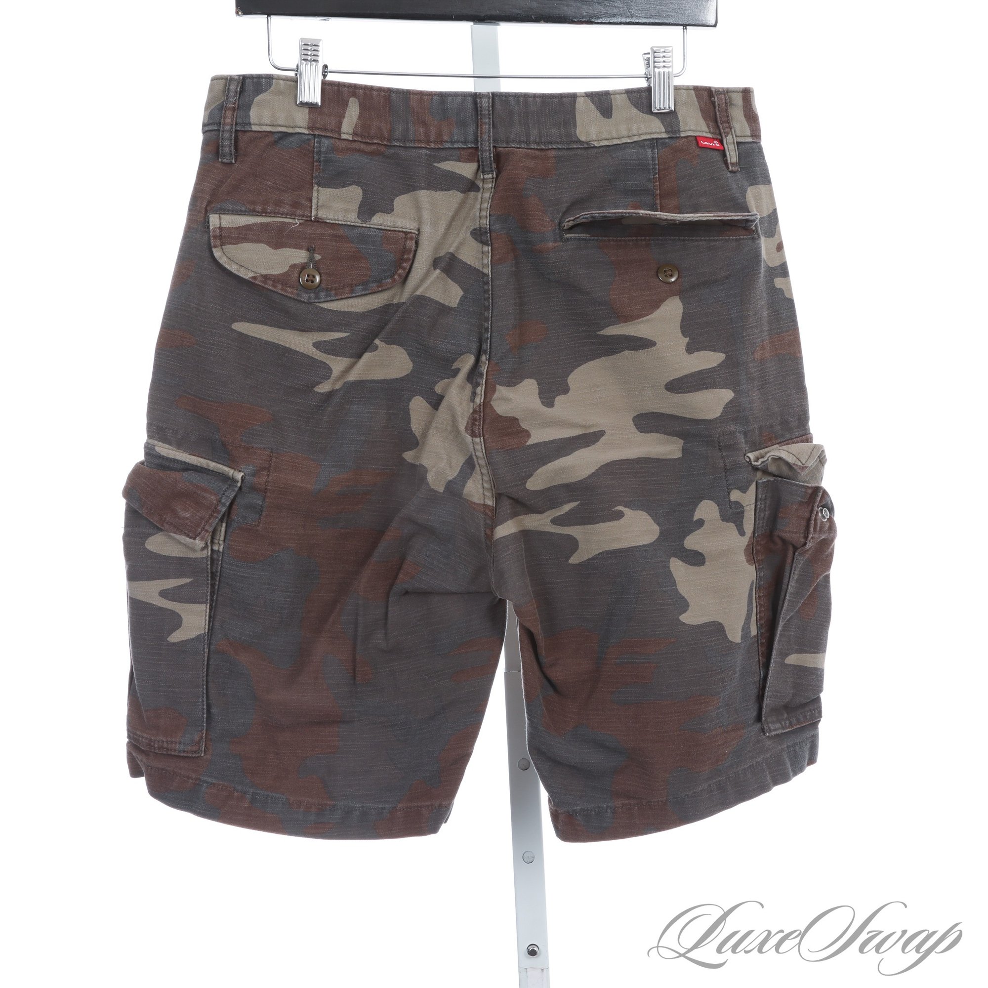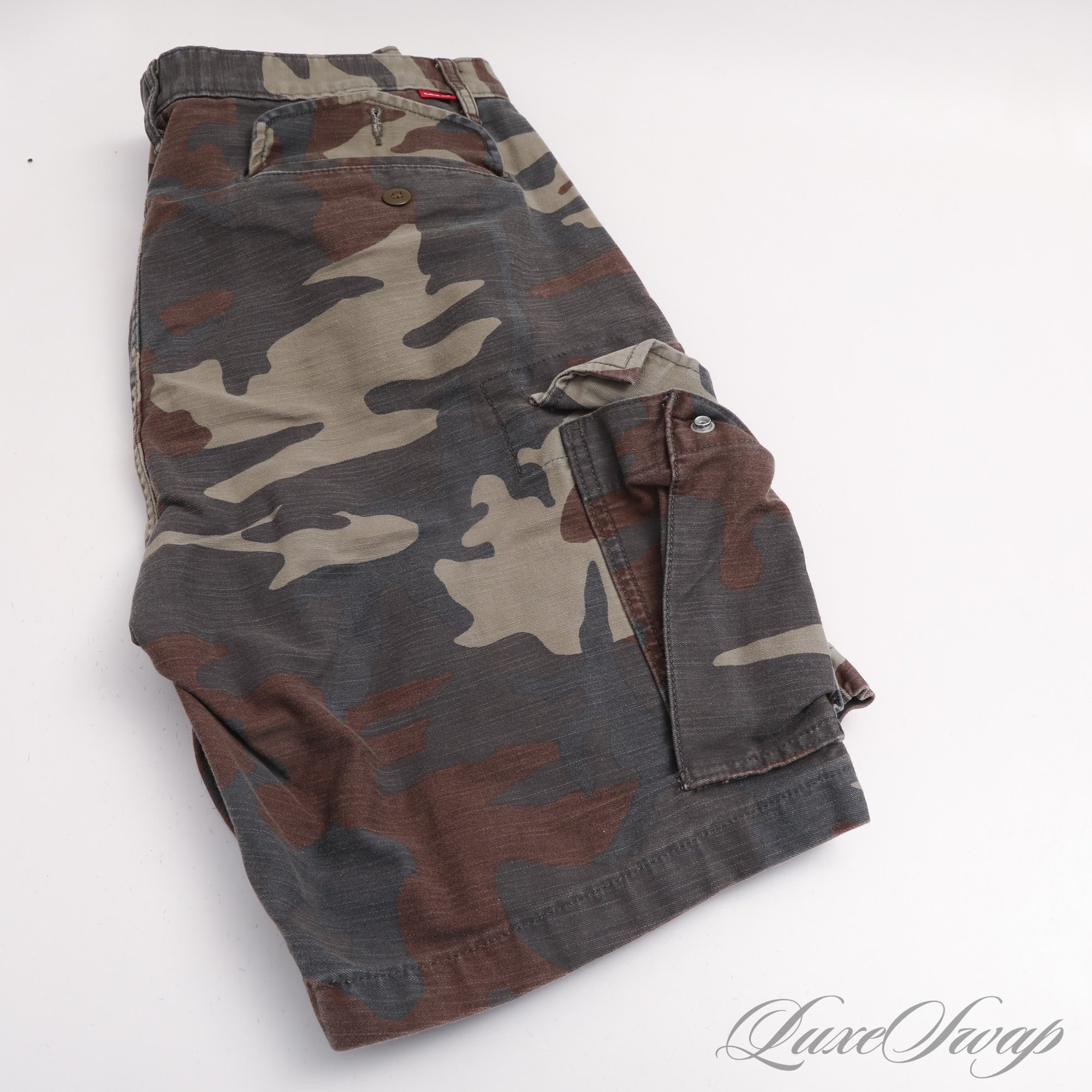 SUMMERS A COMIN! ICONIC AND ESSENTIAL MENS LEVIS LEVI STRAUSS GREEN ALLOVER CAMOUFLAGE CARGO SHORTS 31