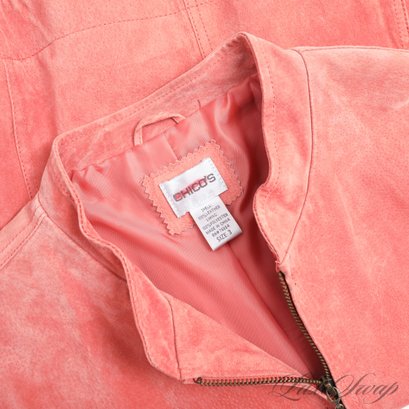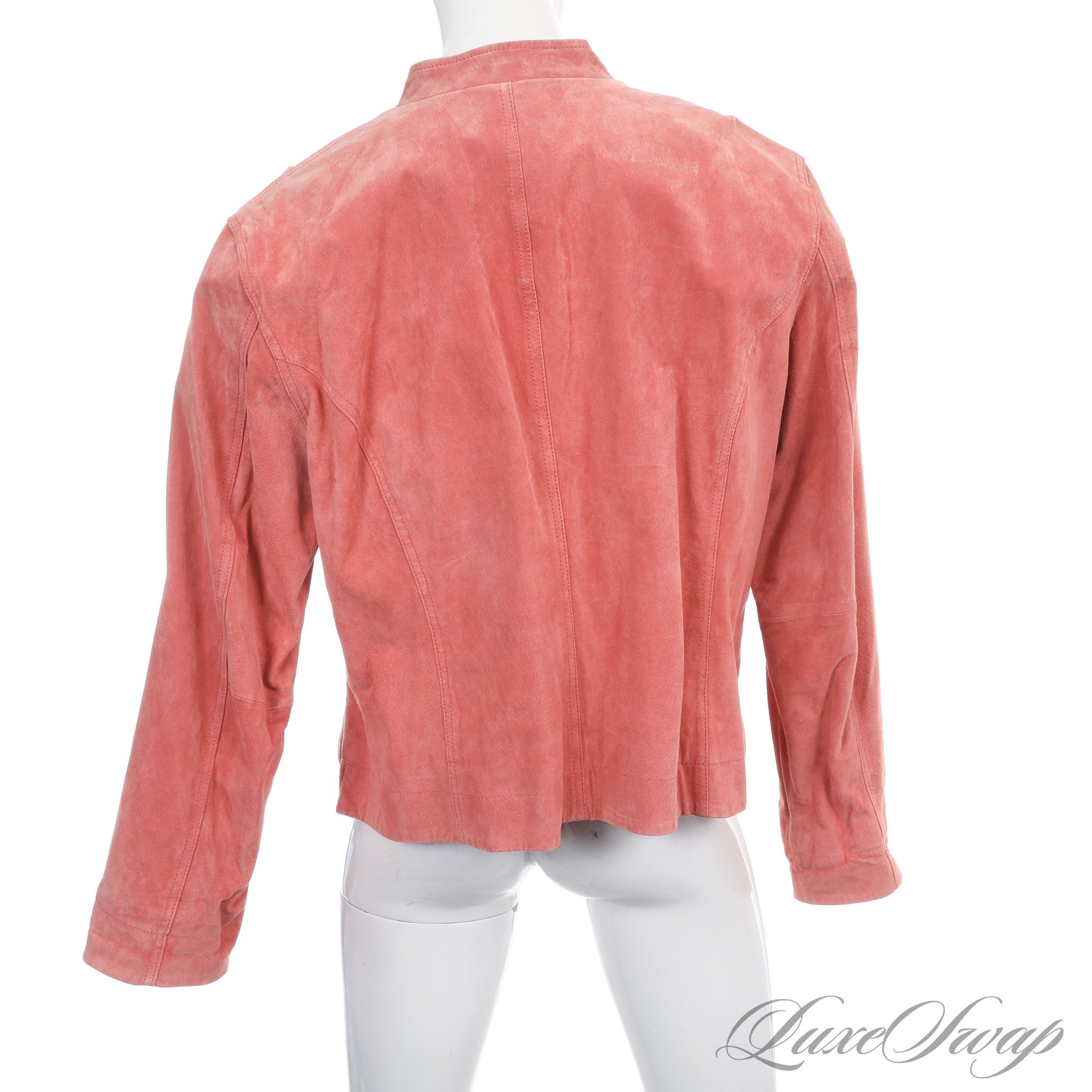 IN THE PINK! SPRING PERFECT CHICOS Y2K 2000S CHINGALLE SUEDE BABY ROSE PINK MOTORCYCLE BIKER JACKET 3