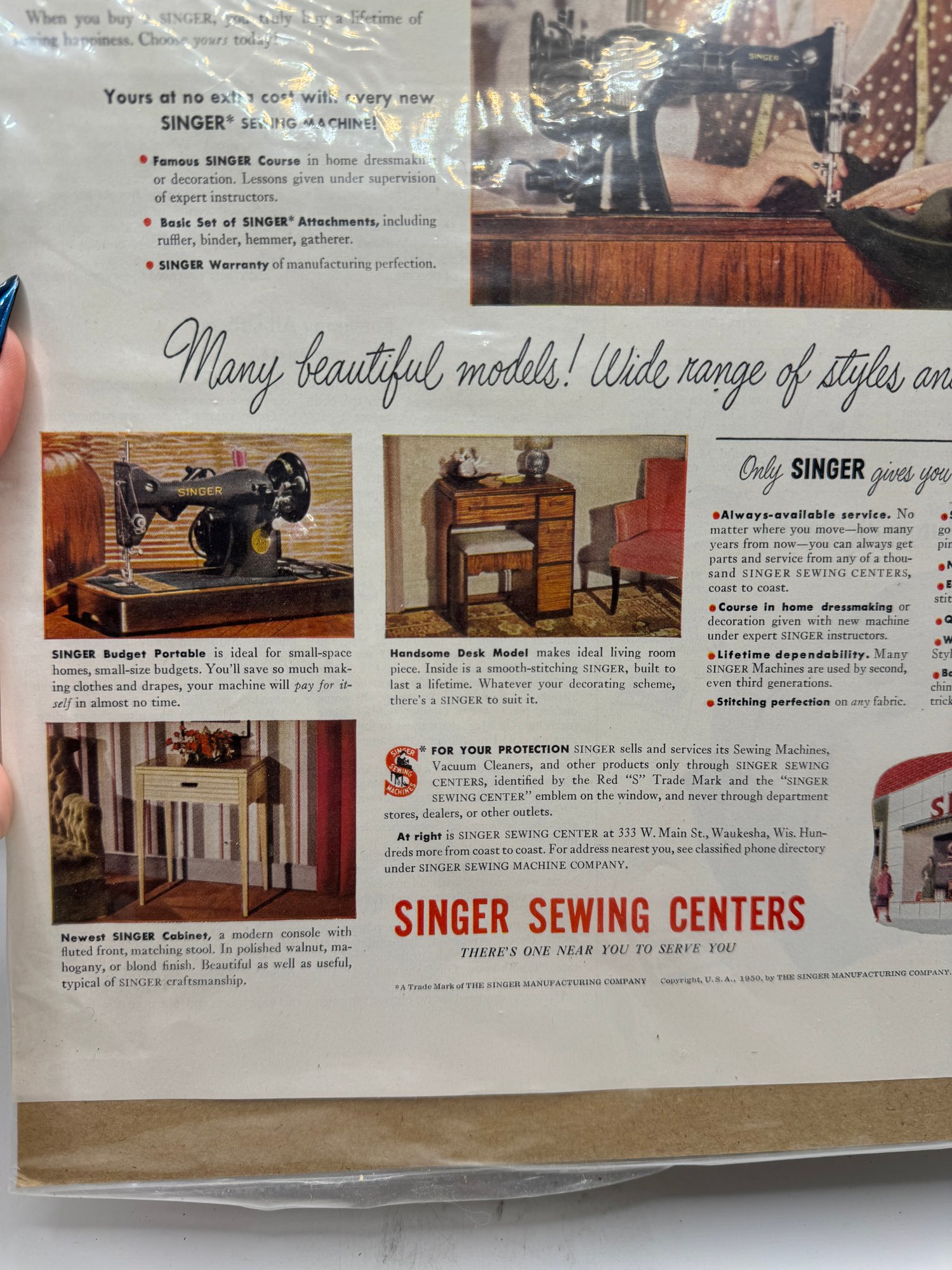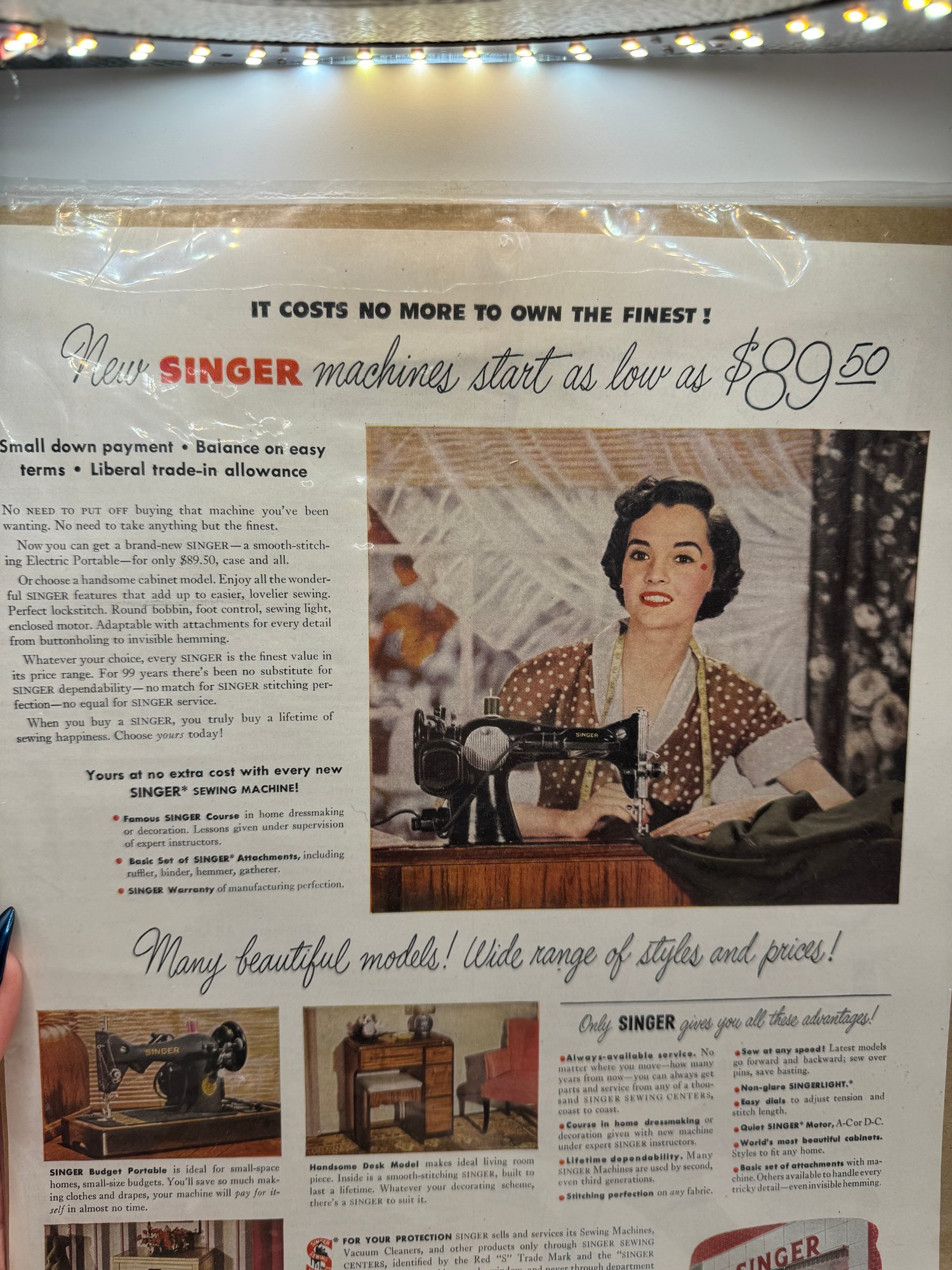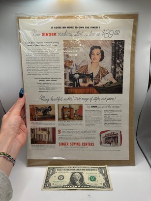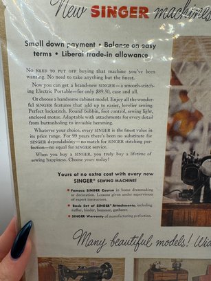 1950 Vintage Singer Sewing Machine Ad Page