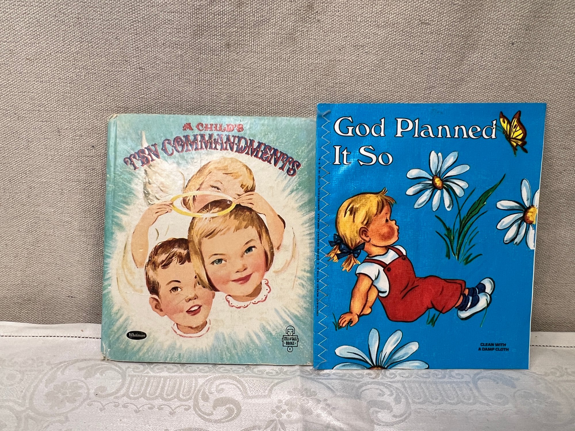 2 Vintage Kids Christian Books "God Planned It So" & "A Child's Ten Commandments"